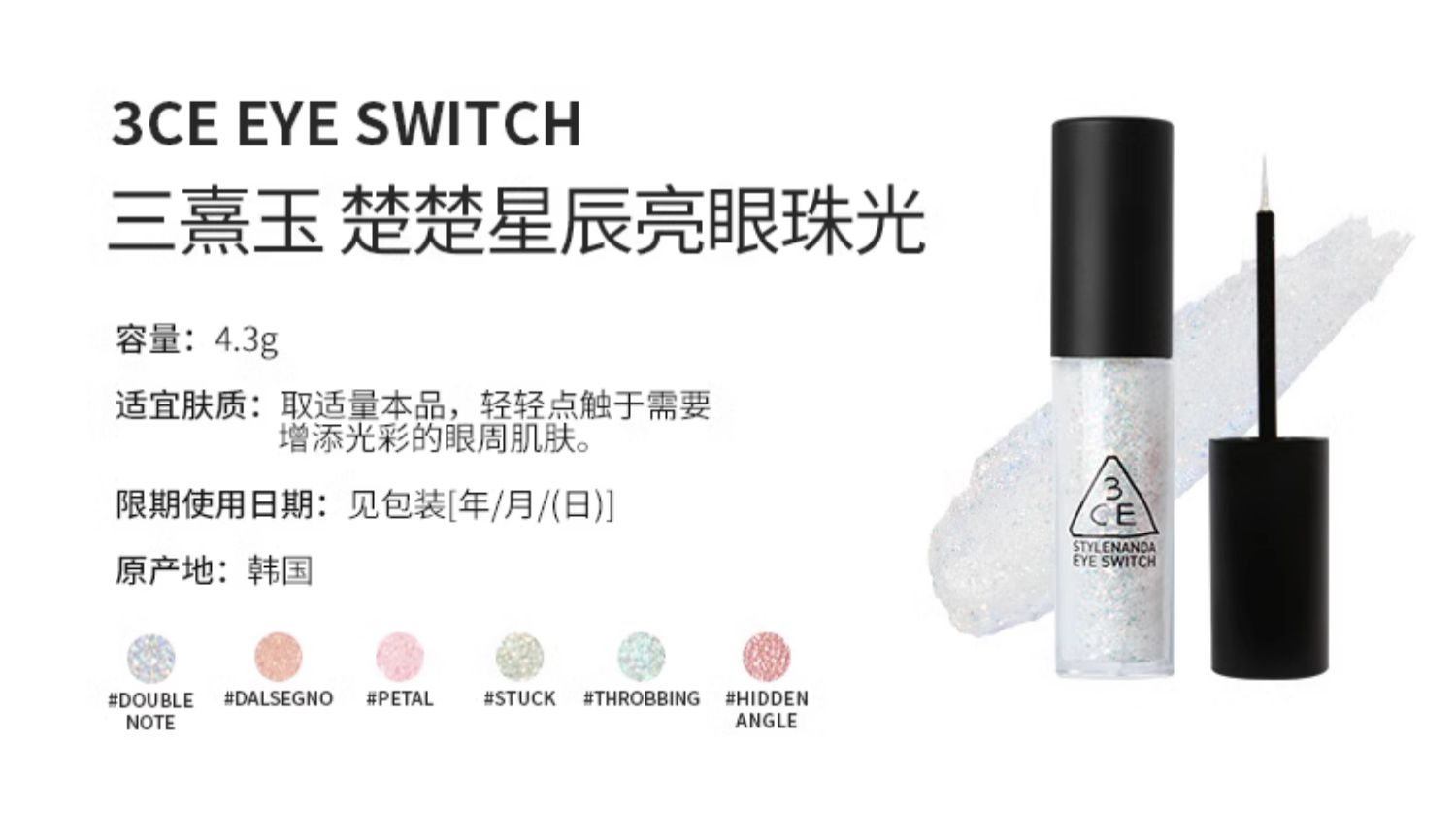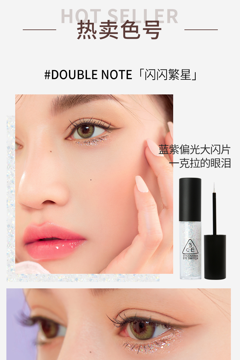 【保税仓】3CE三熹玉 楚楚星辰亮眼珠光 DOUBLE NOTE五彩珠光亮片4.5g