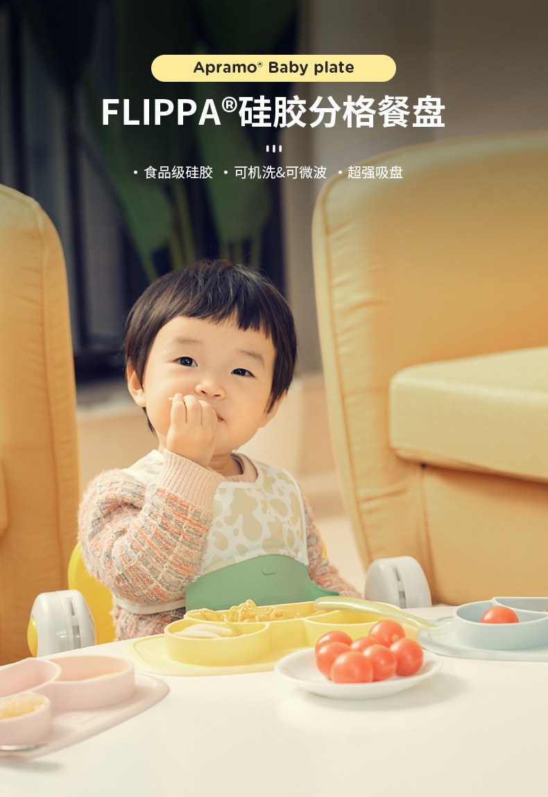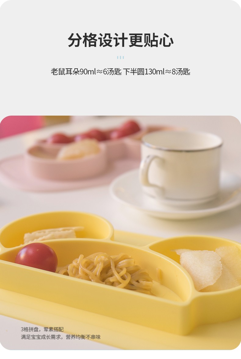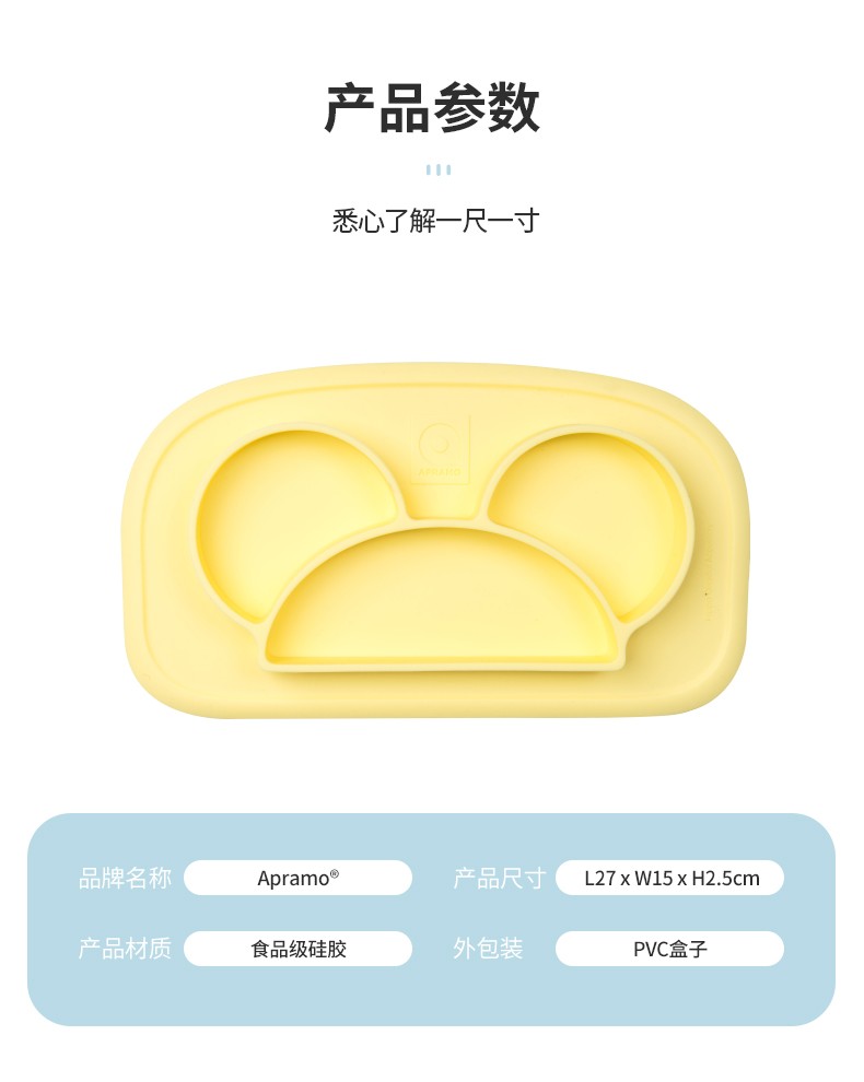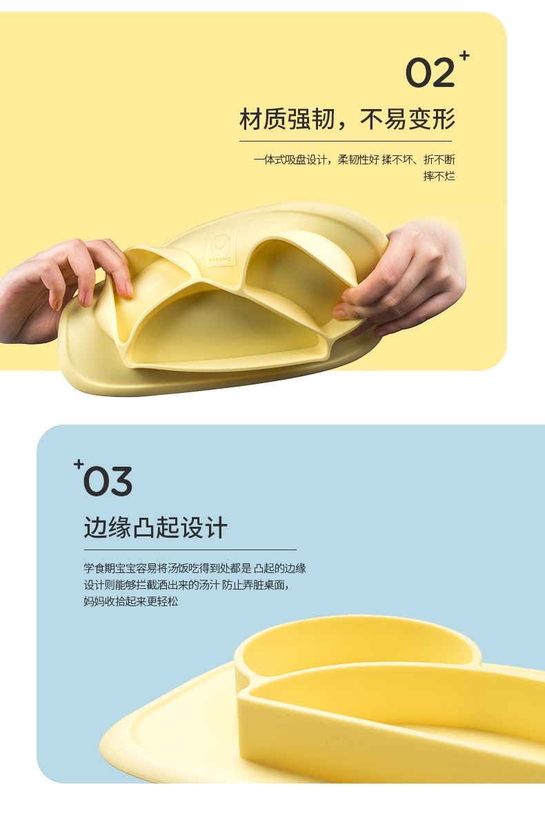 apramo儿童硅胶餐盘婴儿吸盘碗防摔辅食碗卡通可爱宝宝分格餐具 蜜桃奶昔【apramo】