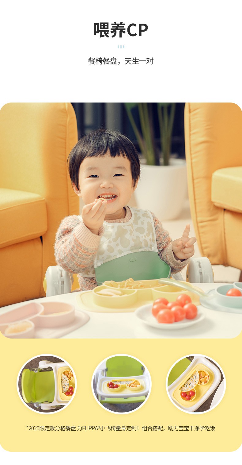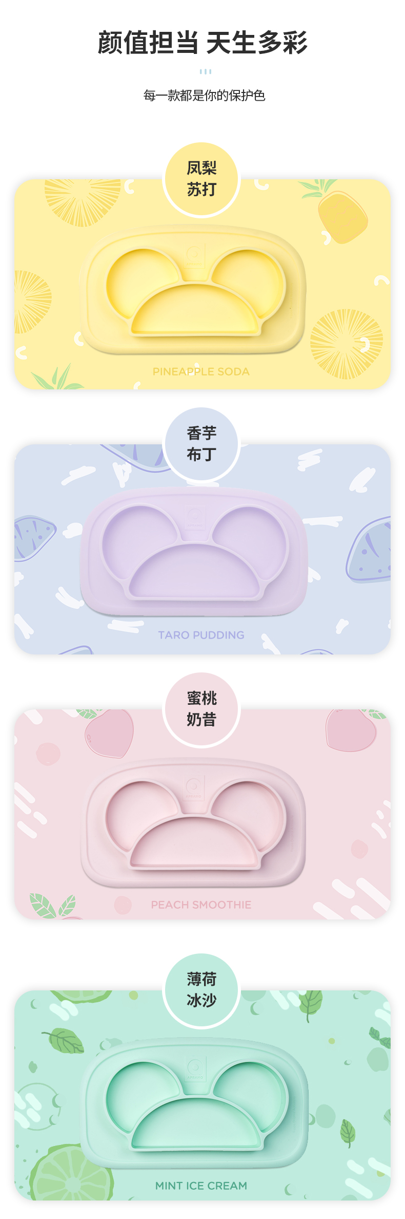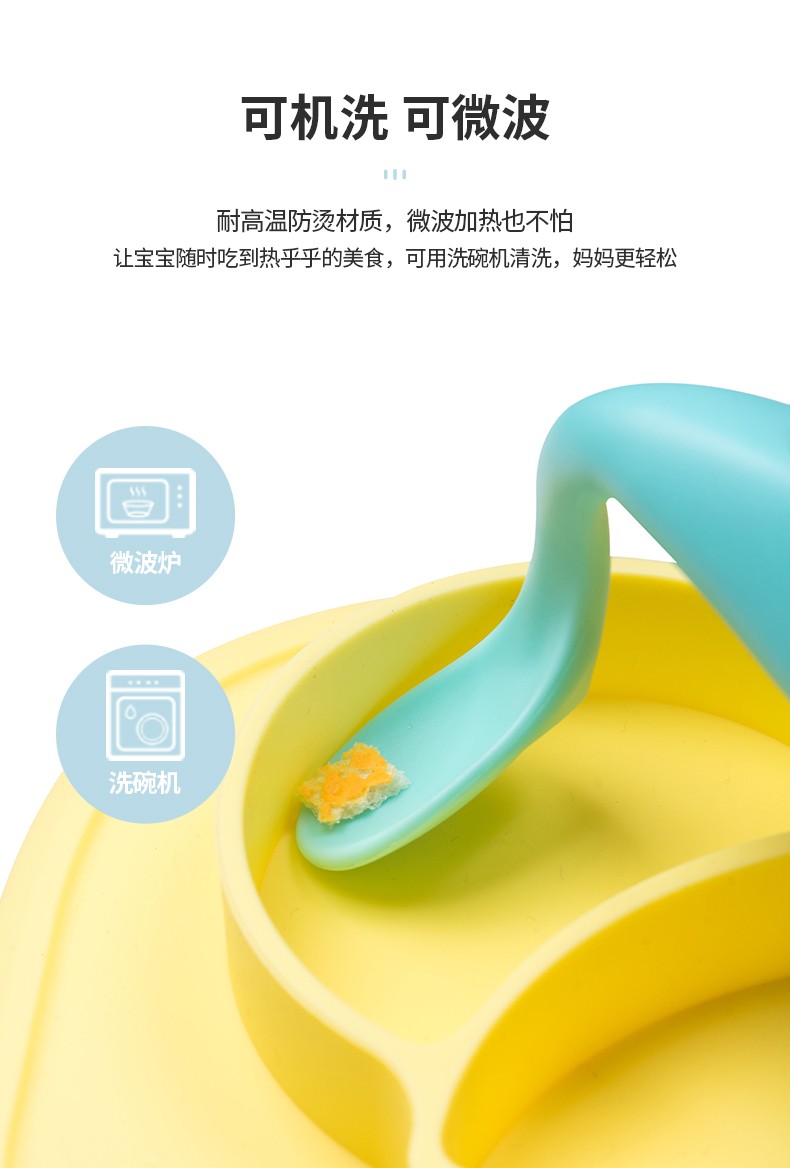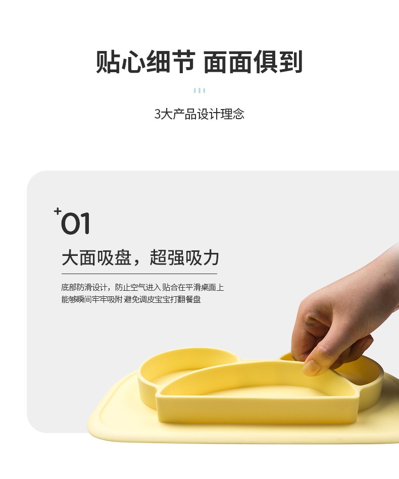 apramo儿童硅胶餐盘婴儿吸盘碗防摔辅食碗卡通可爱宝宝分格餐具 蜜桃奶昔【apramo】
