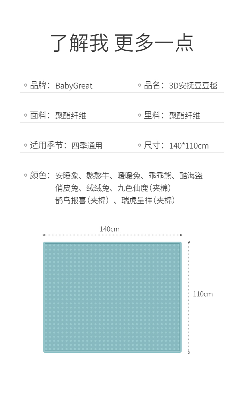 babygreat婴儿安抚豆豆毯 儿童秋冬恒温盖毯【薇娅推荐】