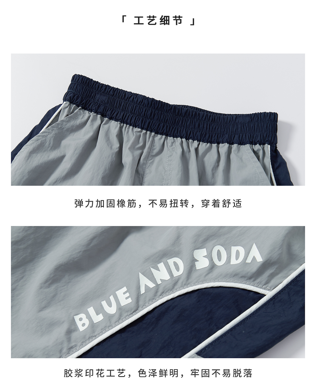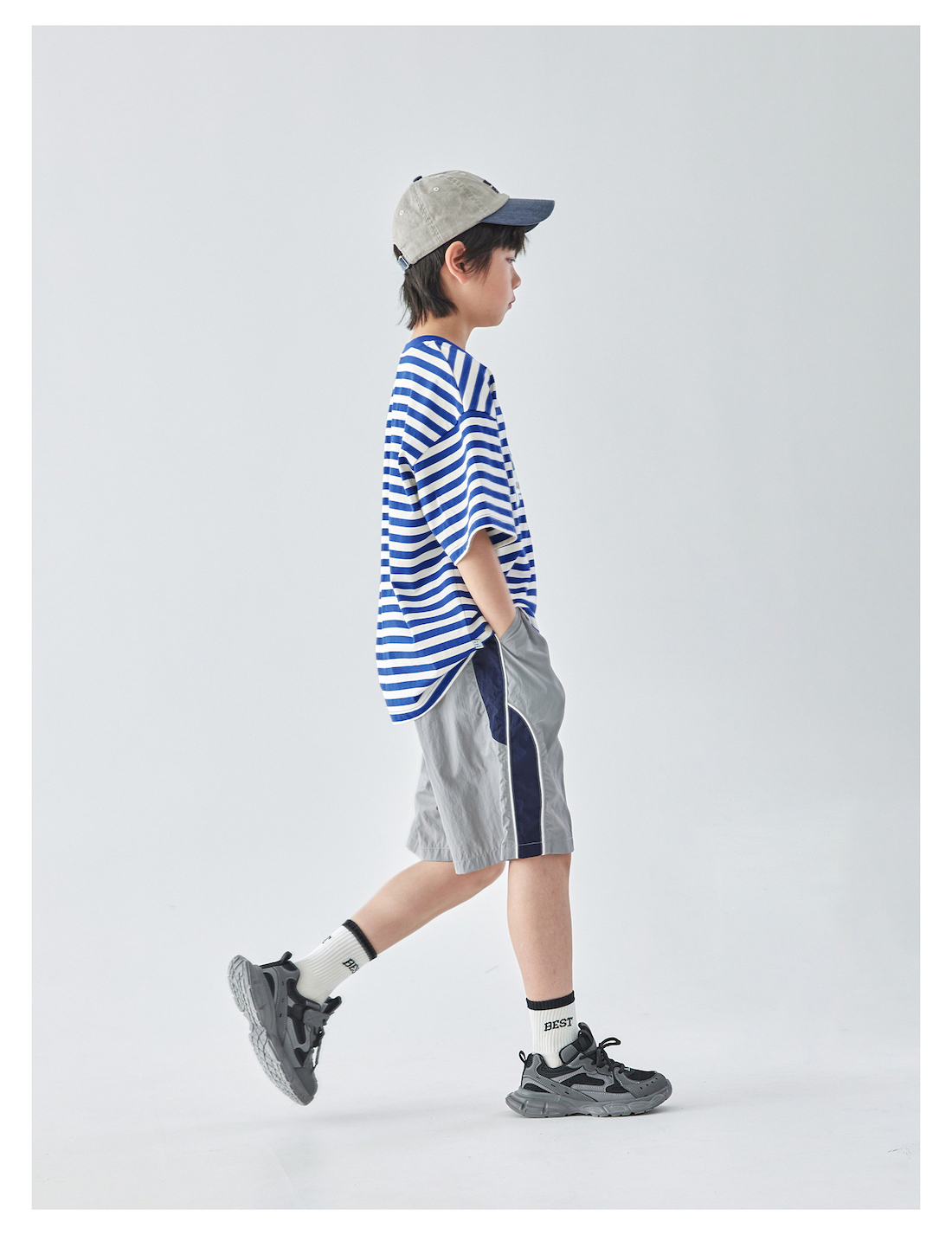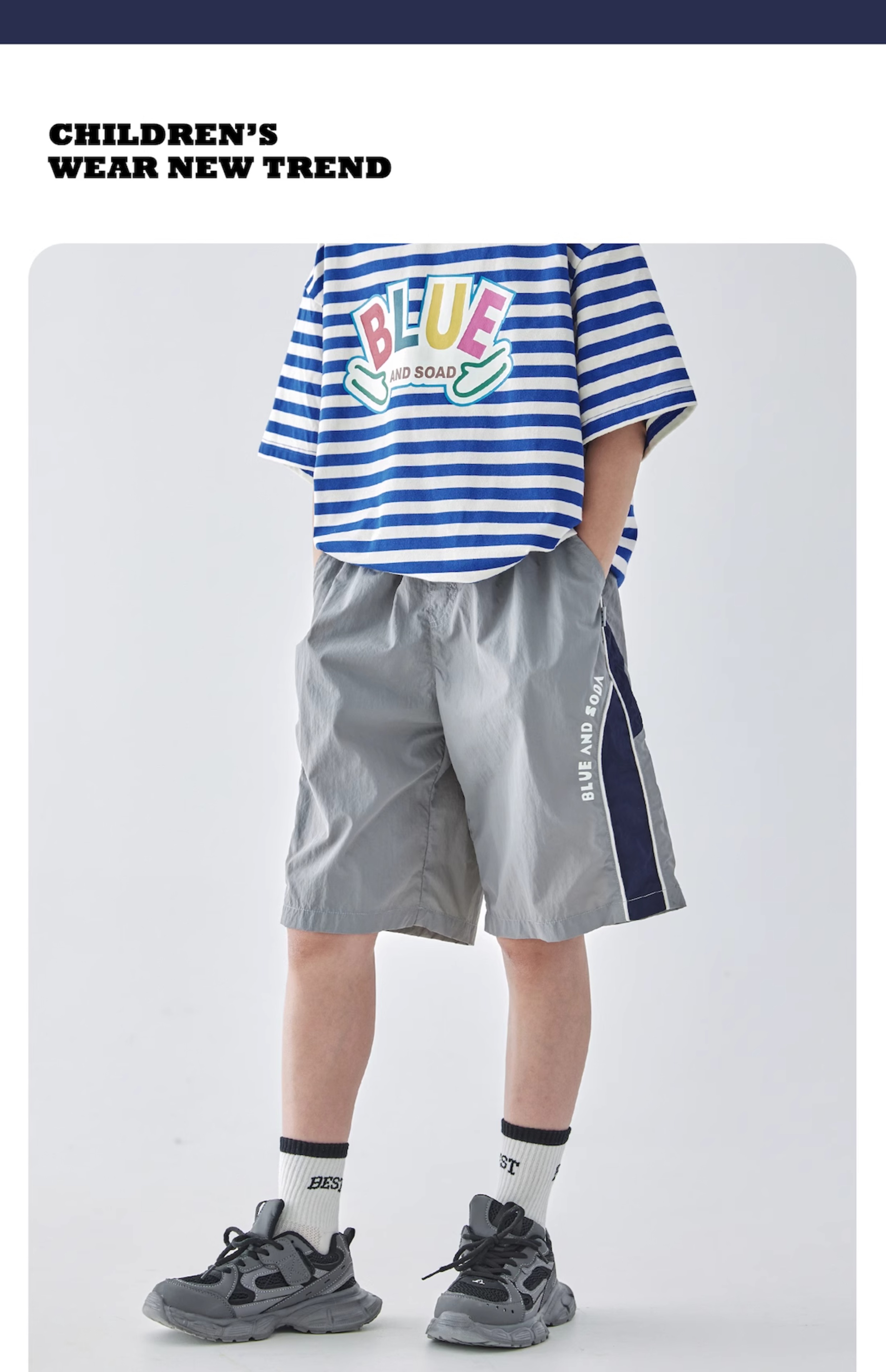 【代发】男童出芽拼接五分裤 蓝汽水夏季休闲短裤轻量化宽松运动灰色