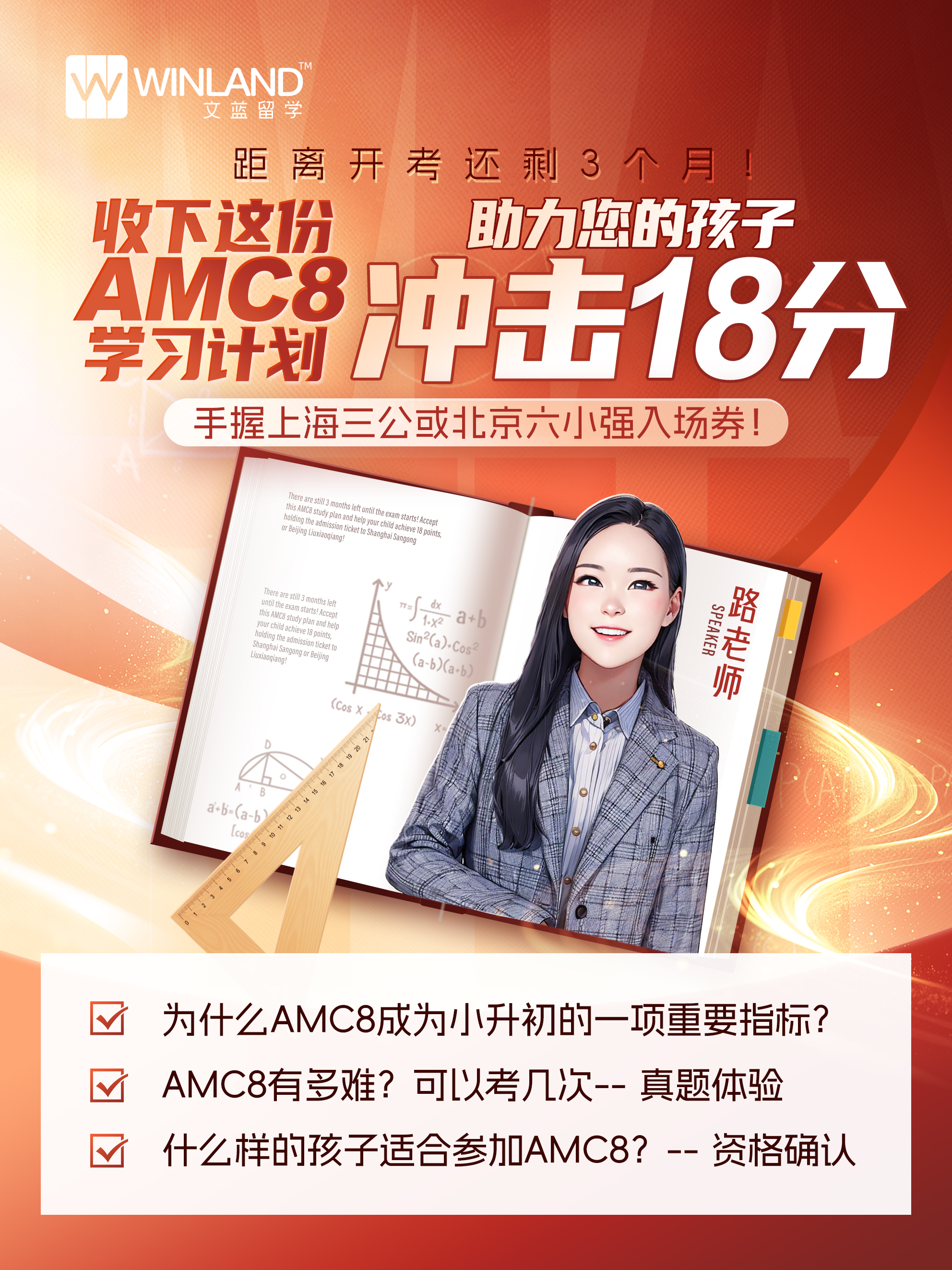 距离开考还剩3个月!收下这份AMC8学习计划,助力您的孩子冲击18分,手握上海三公或北京六小强入场券!