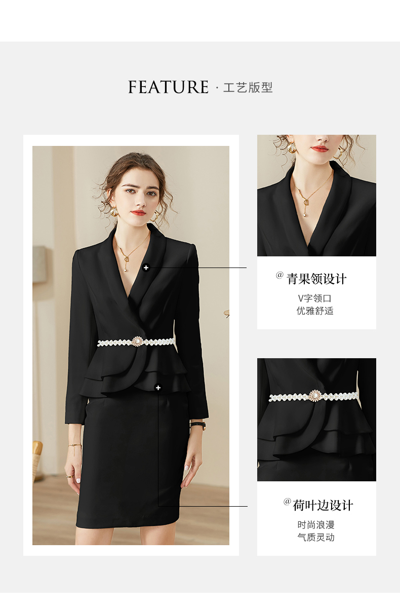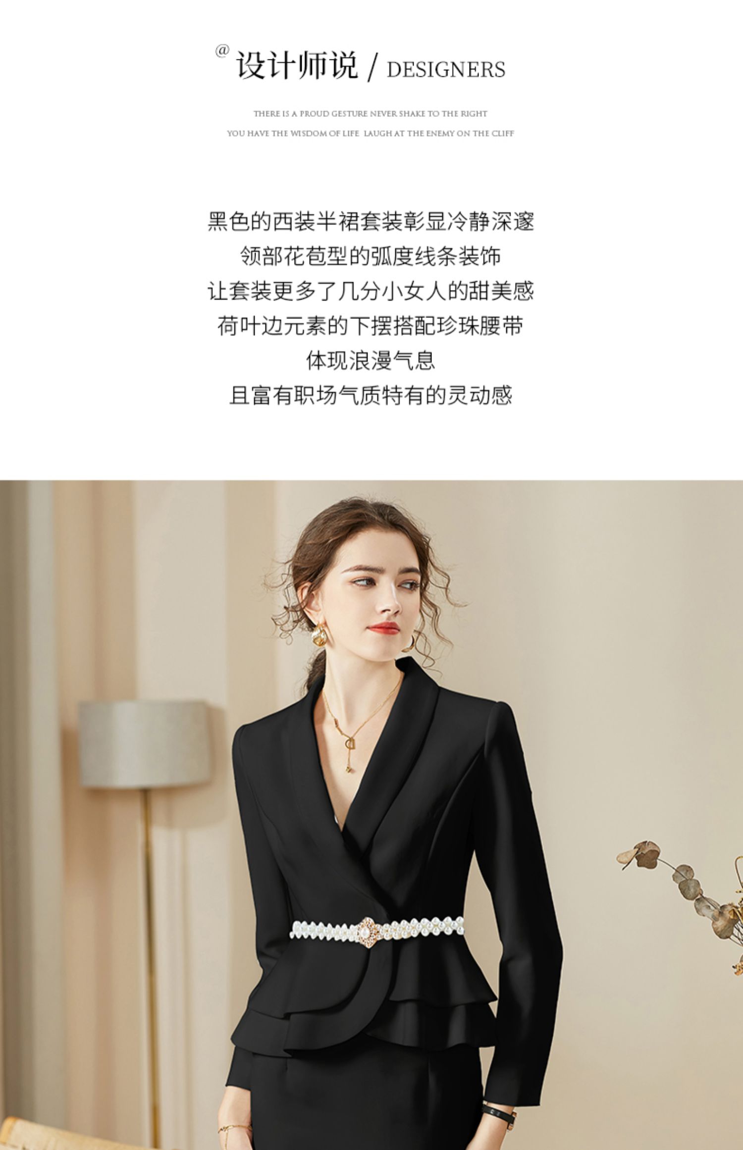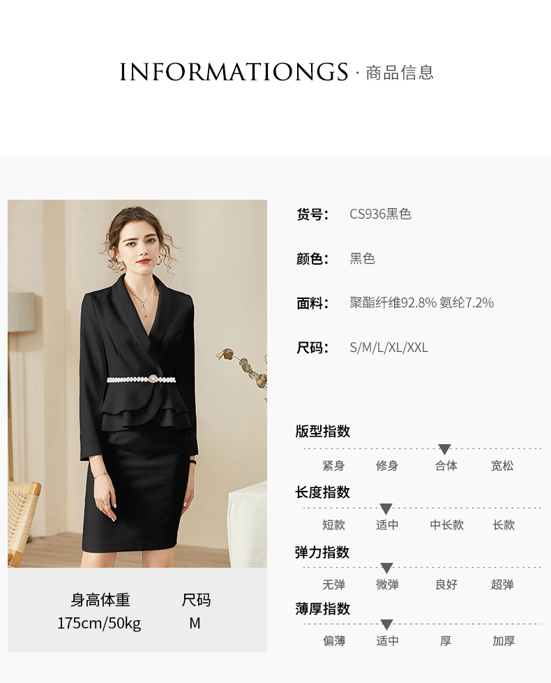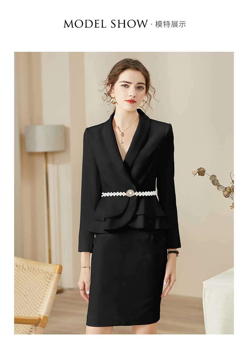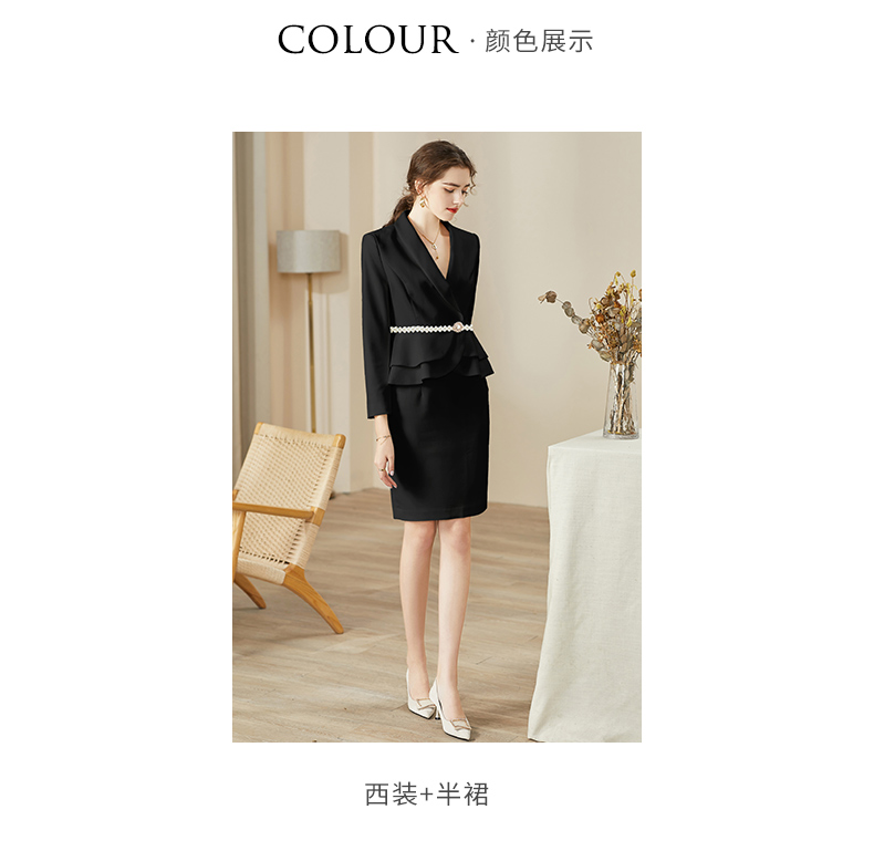 IWY/时尚黑色西装半裙女名媛气质小香风售楼部工作服秋季长袖商务正装CS936黑色