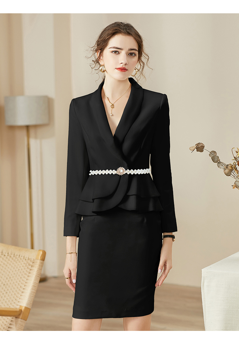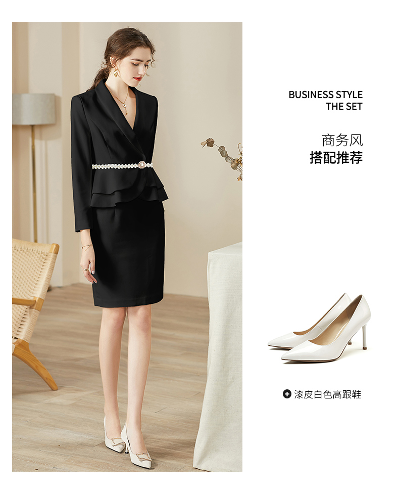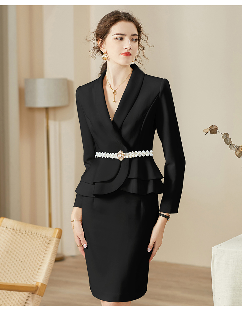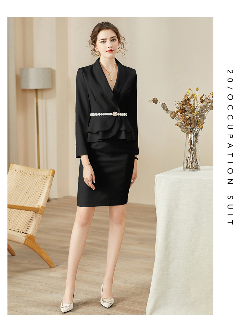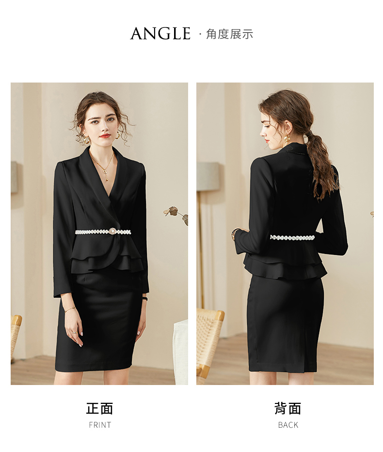 IWY/时尚黑色西装半裙女名媛气质小香风售楼部工作服秋季长袖商务正装CS936黑色