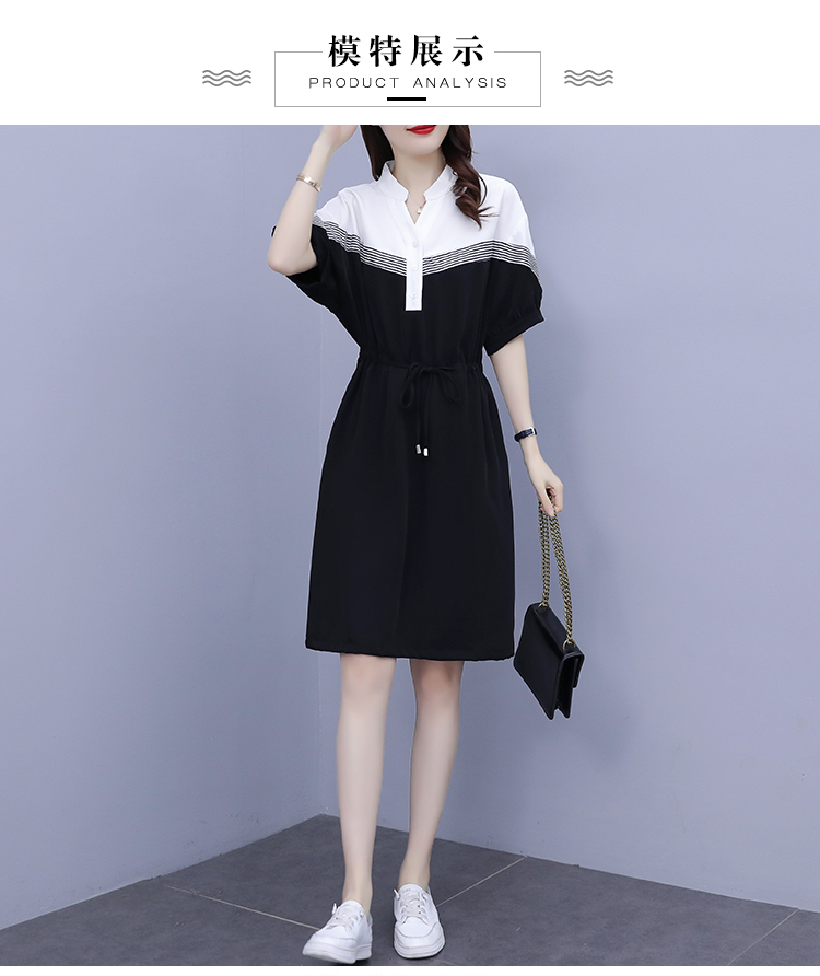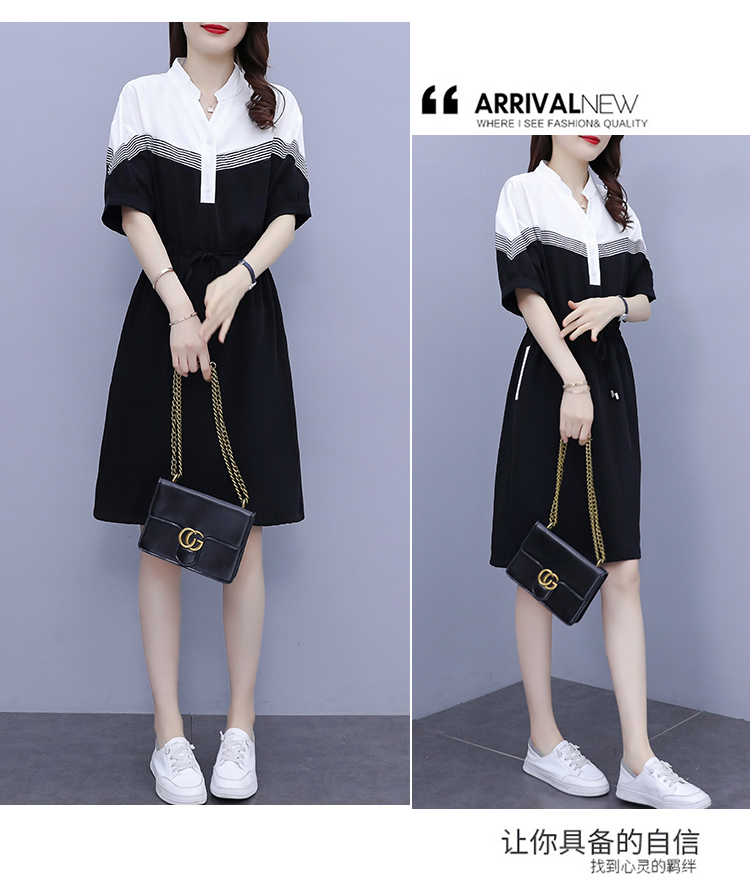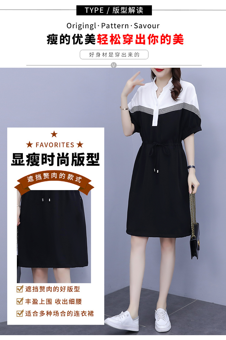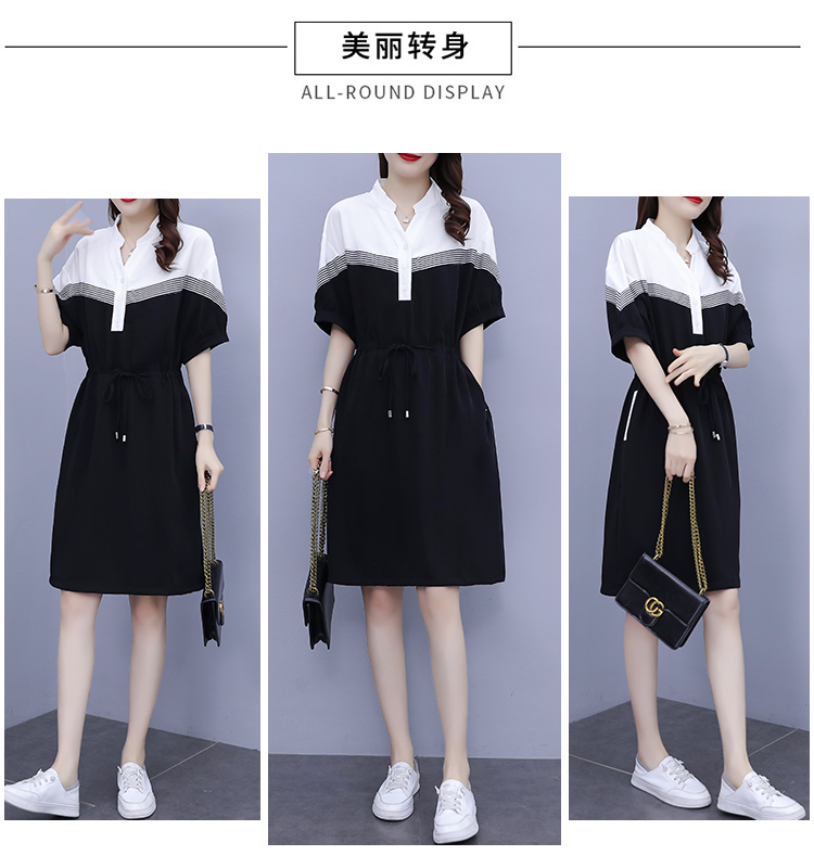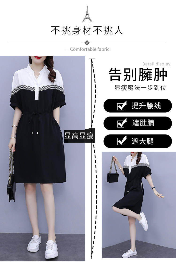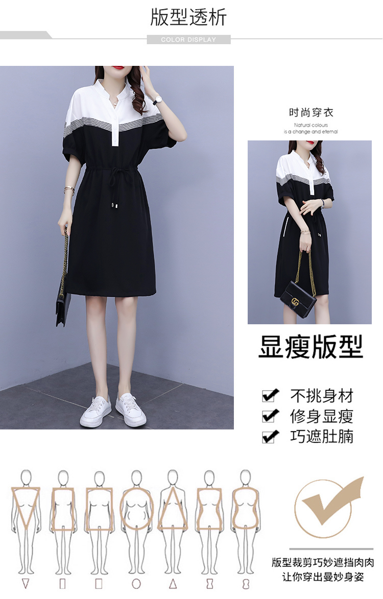 夏季新款显瘦休闲连衣裙,时尚宽松女收腰拼接撞色A字中长卫衣连衣裙 HT-YXF1266