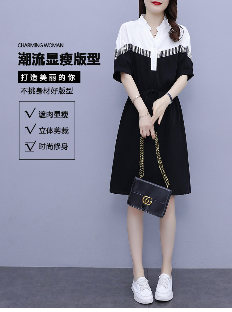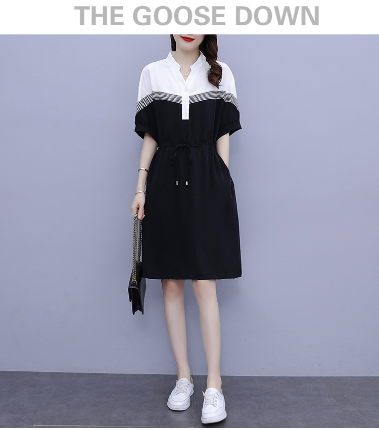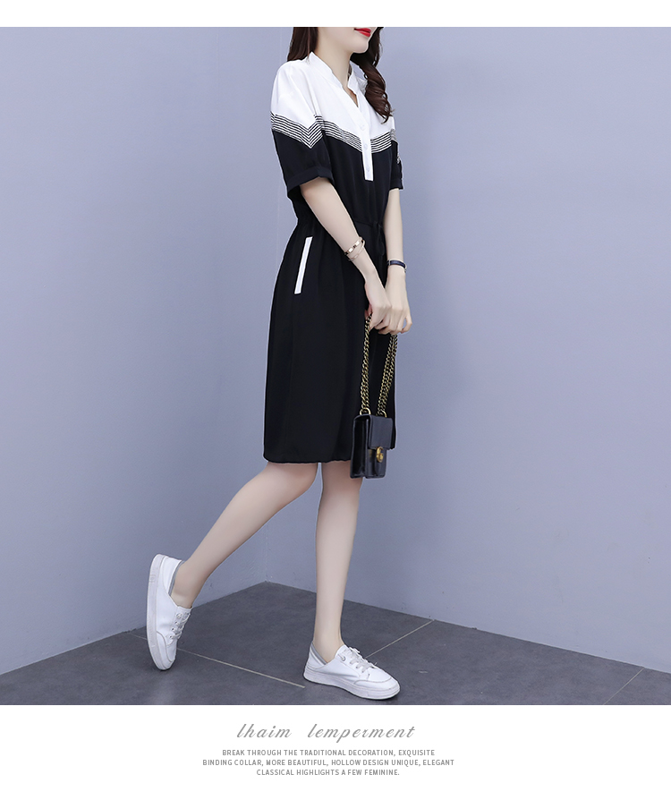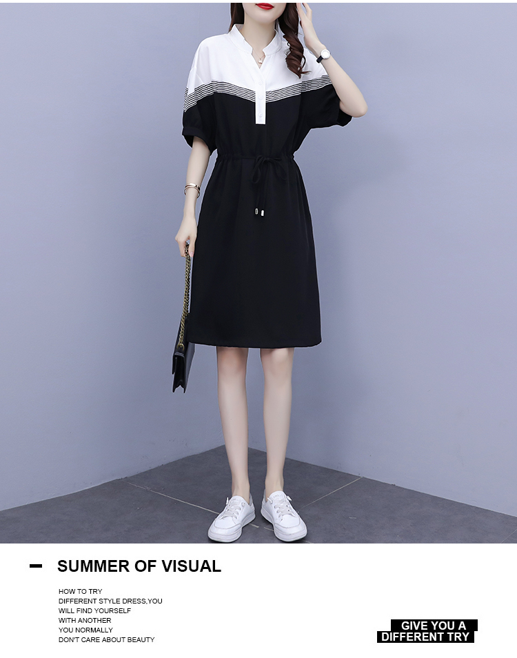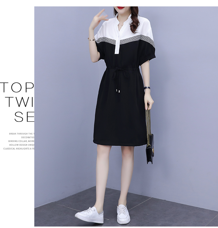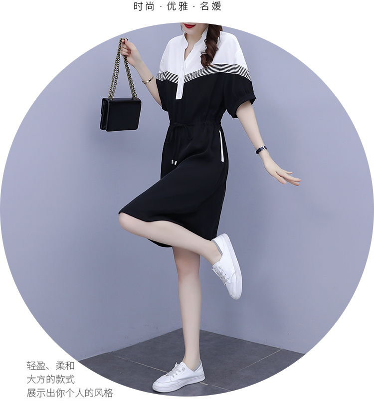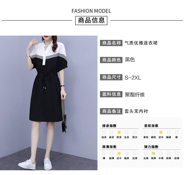 夏季新款显瘦休闲连衣裙,时尚宽松女收腰拼接撞色A字中长卫衣连衣裙 HT-YXF1266