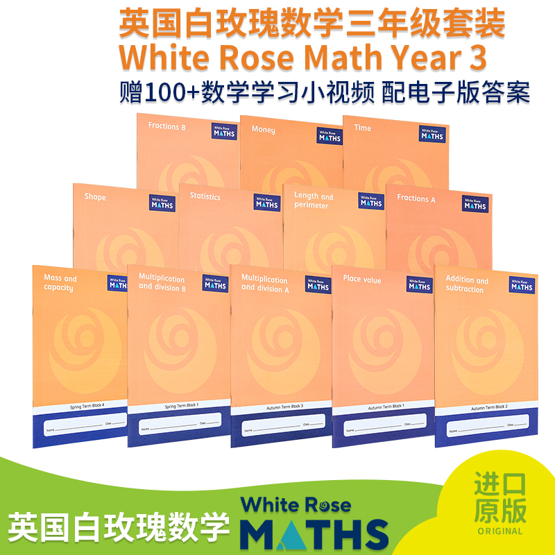 【中商原版】White Rose Math Year 3 英国白玫瑰数学教材练习册 小学三年级学年套装12册 秋3册+春4册+夏5册 加减乘除法运算