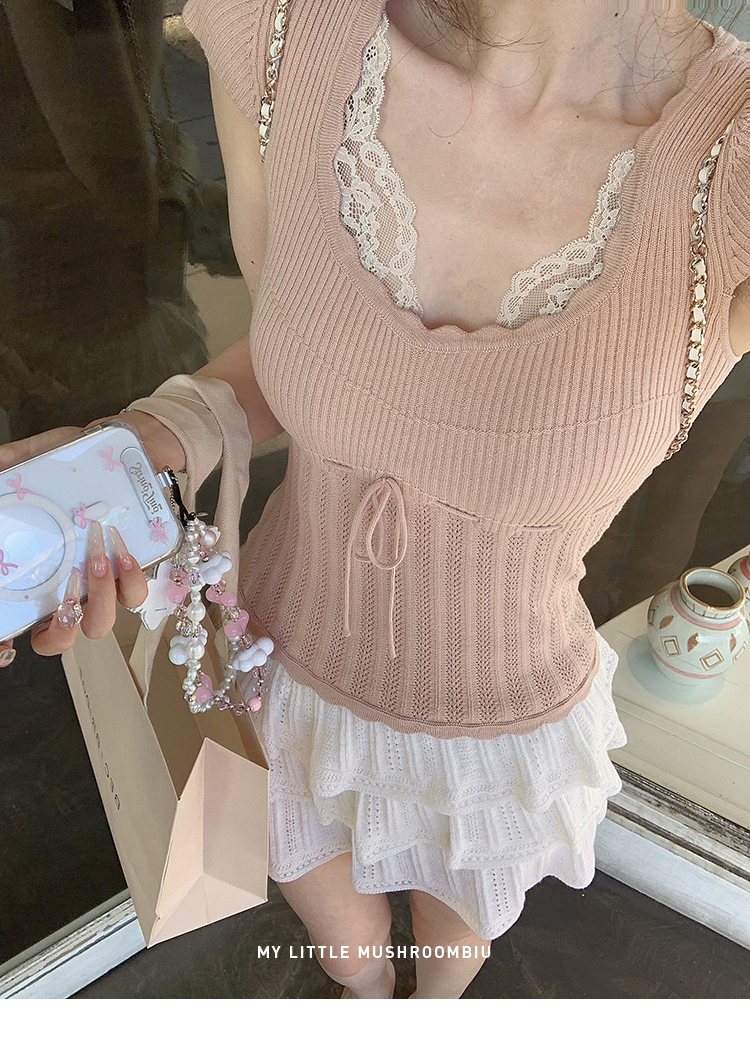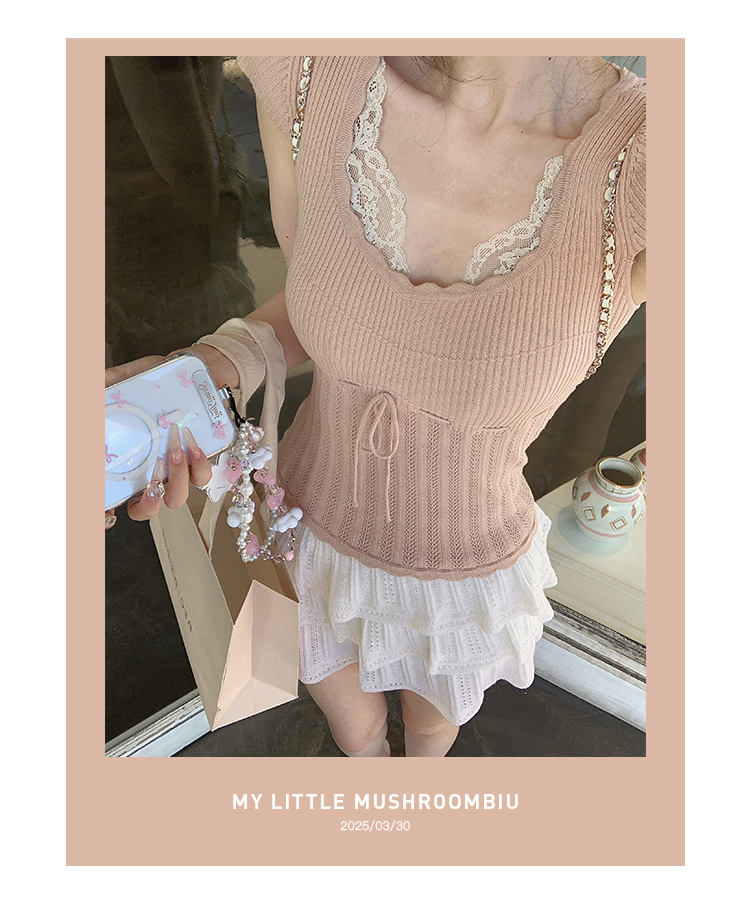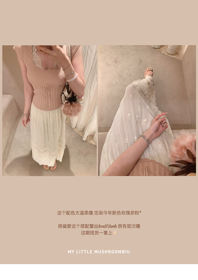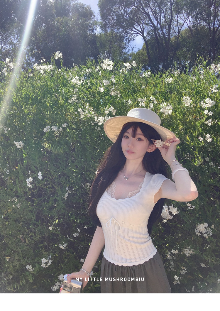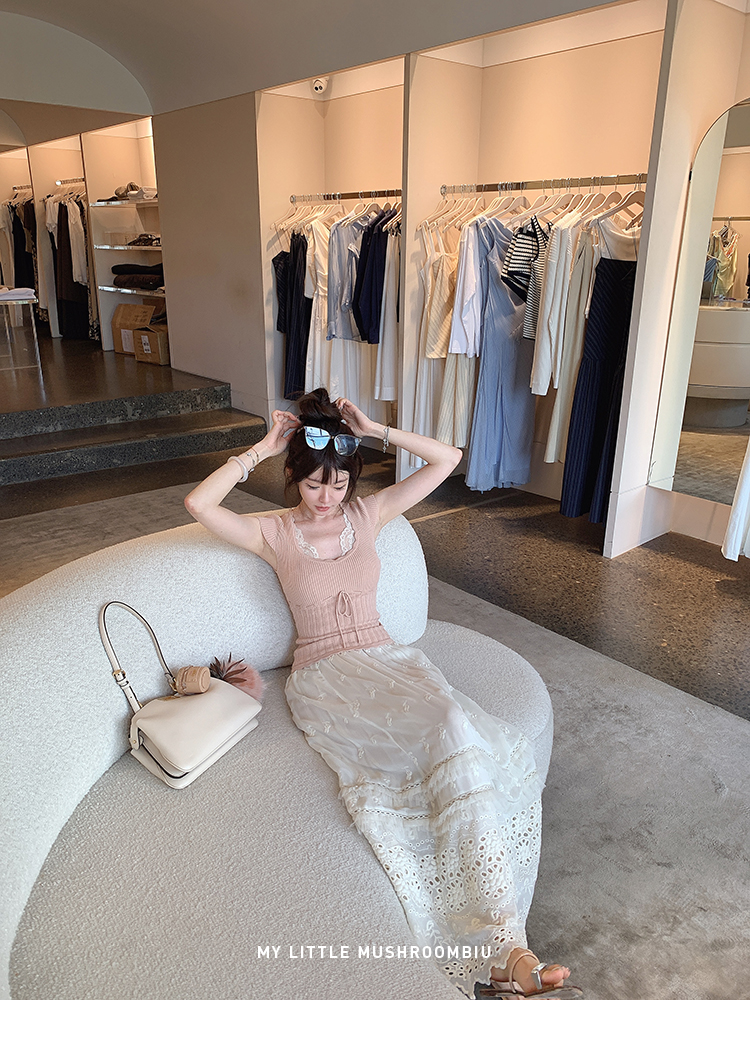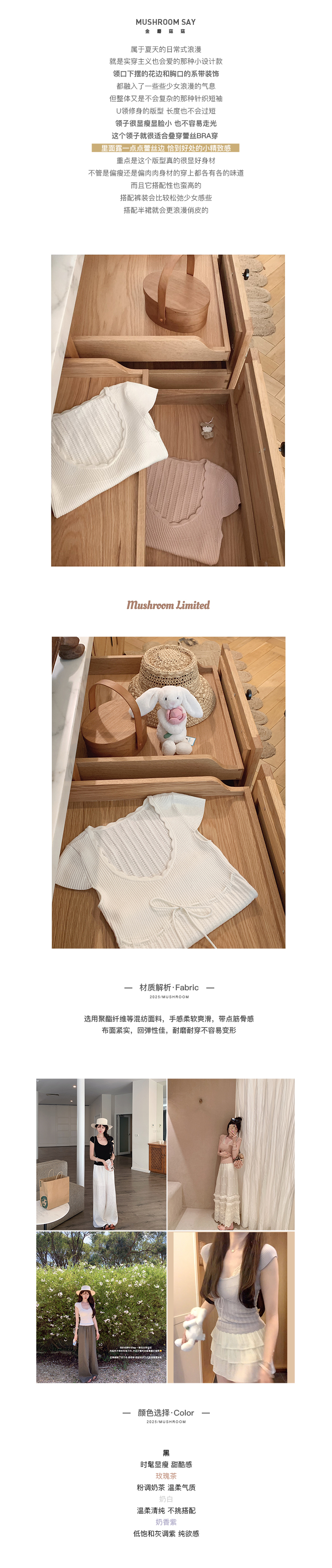 金蘑菇菇 夏日特调 招牌针织top / 细支钩花蕾丝bra