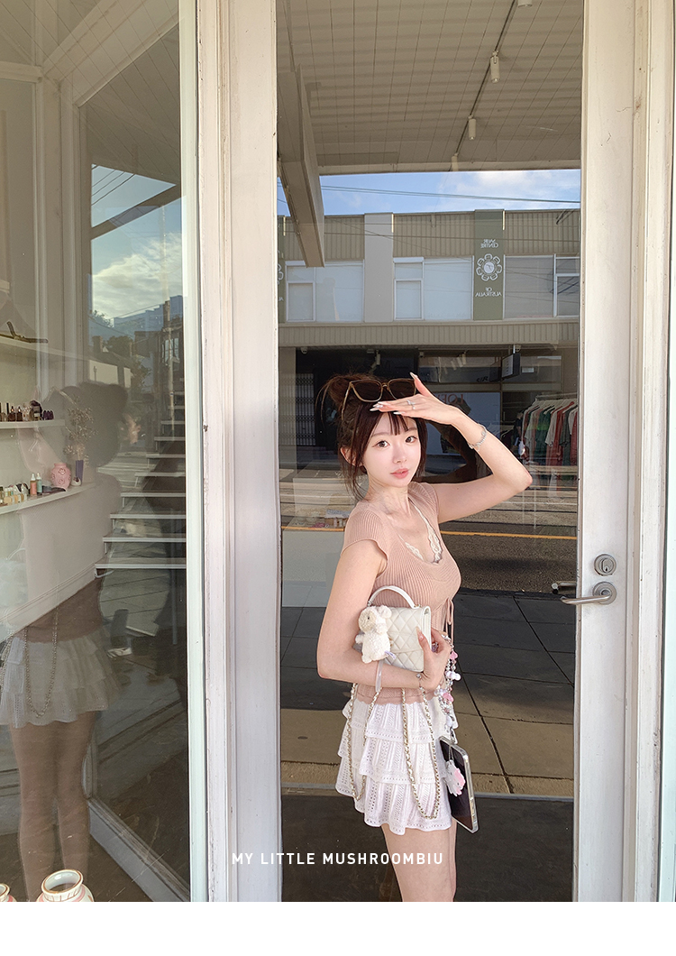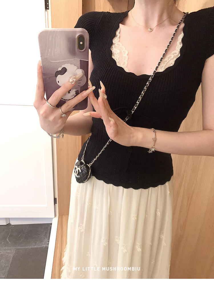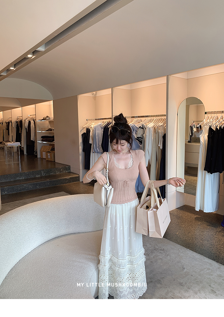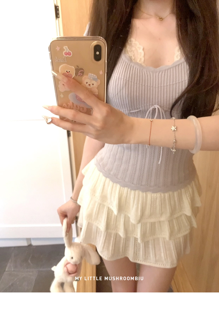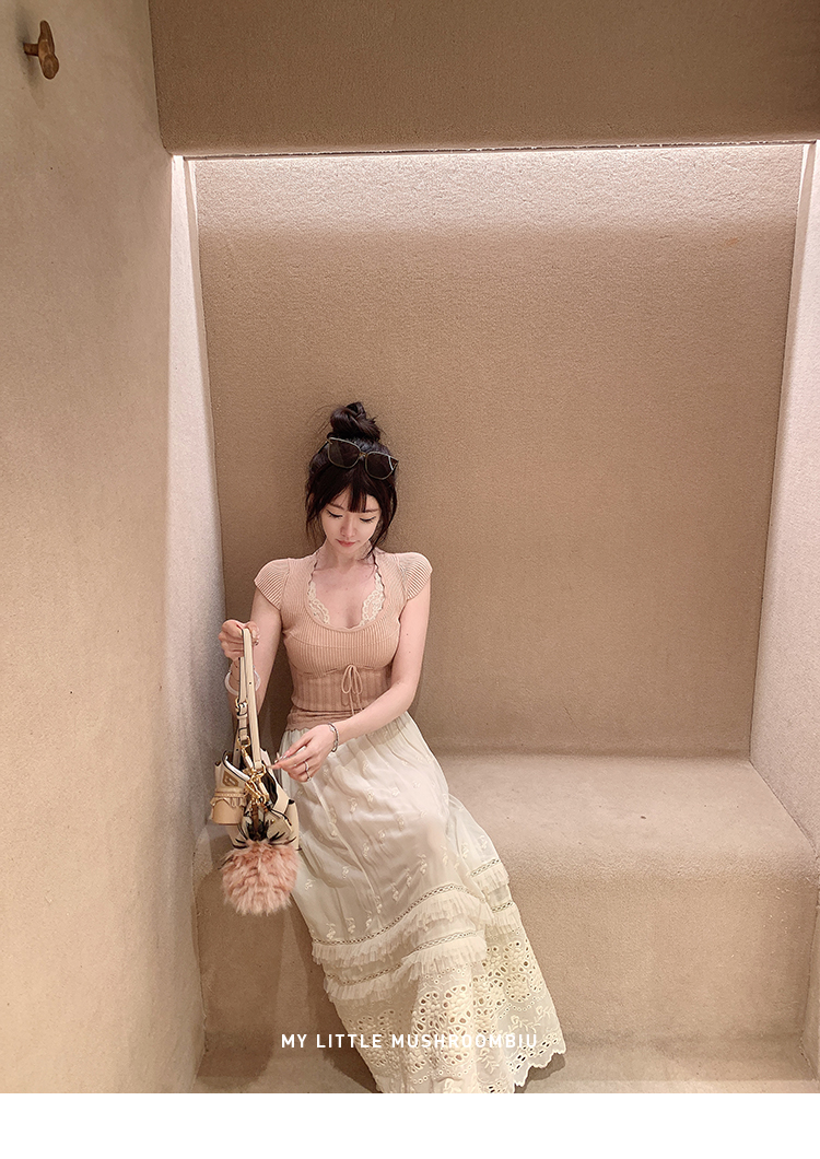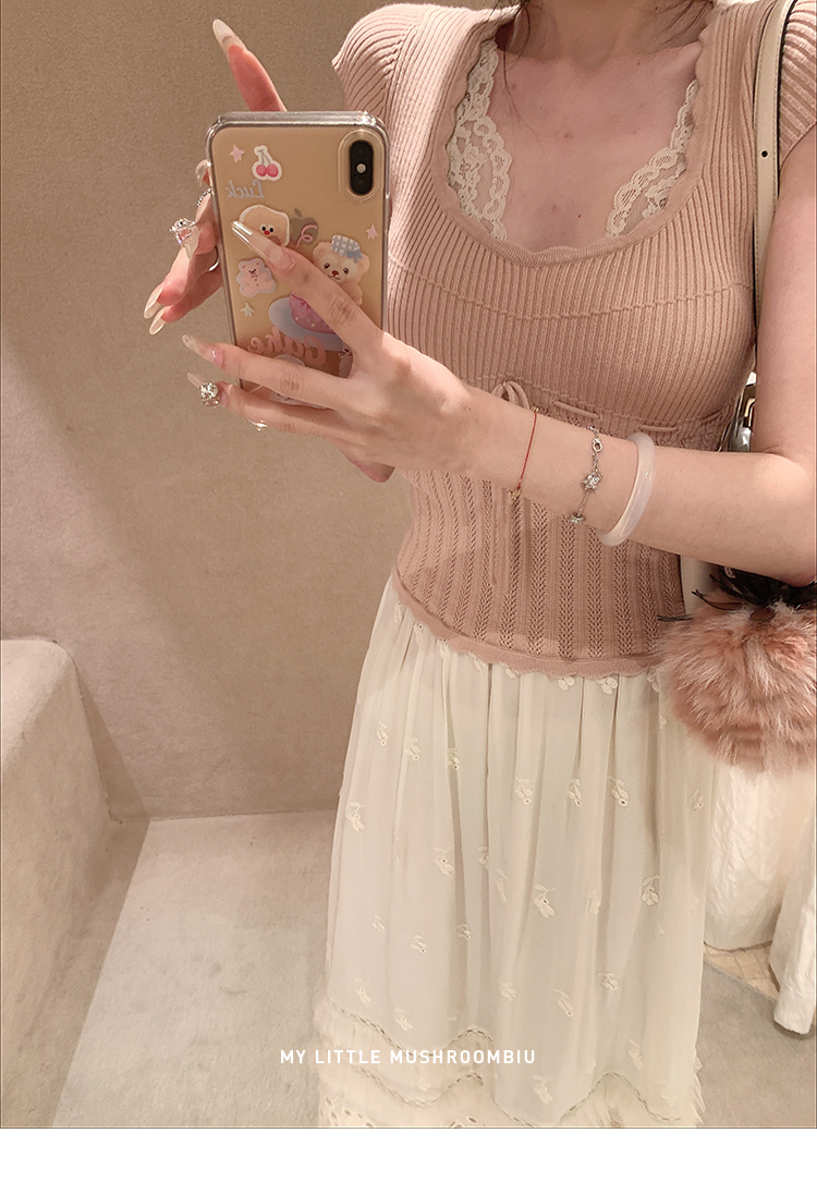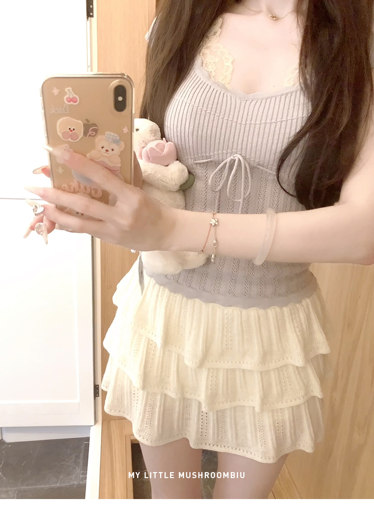 金蘑菇菇 夏日特调 招牌针织top / 细支钩花蕾丝bra