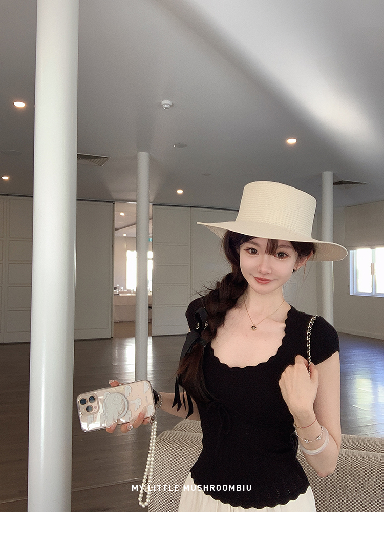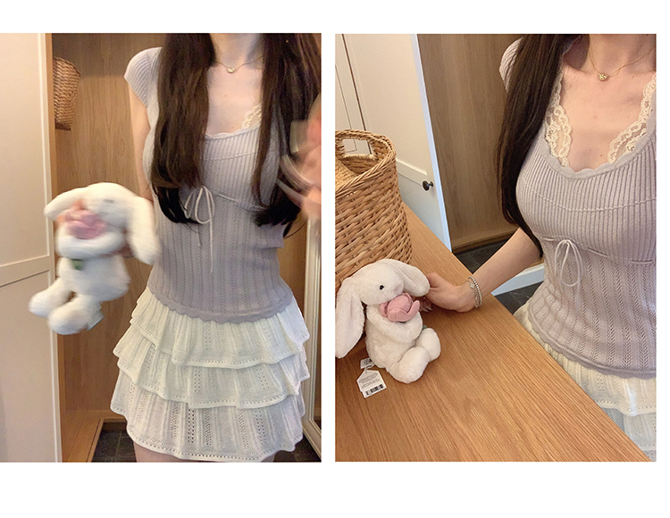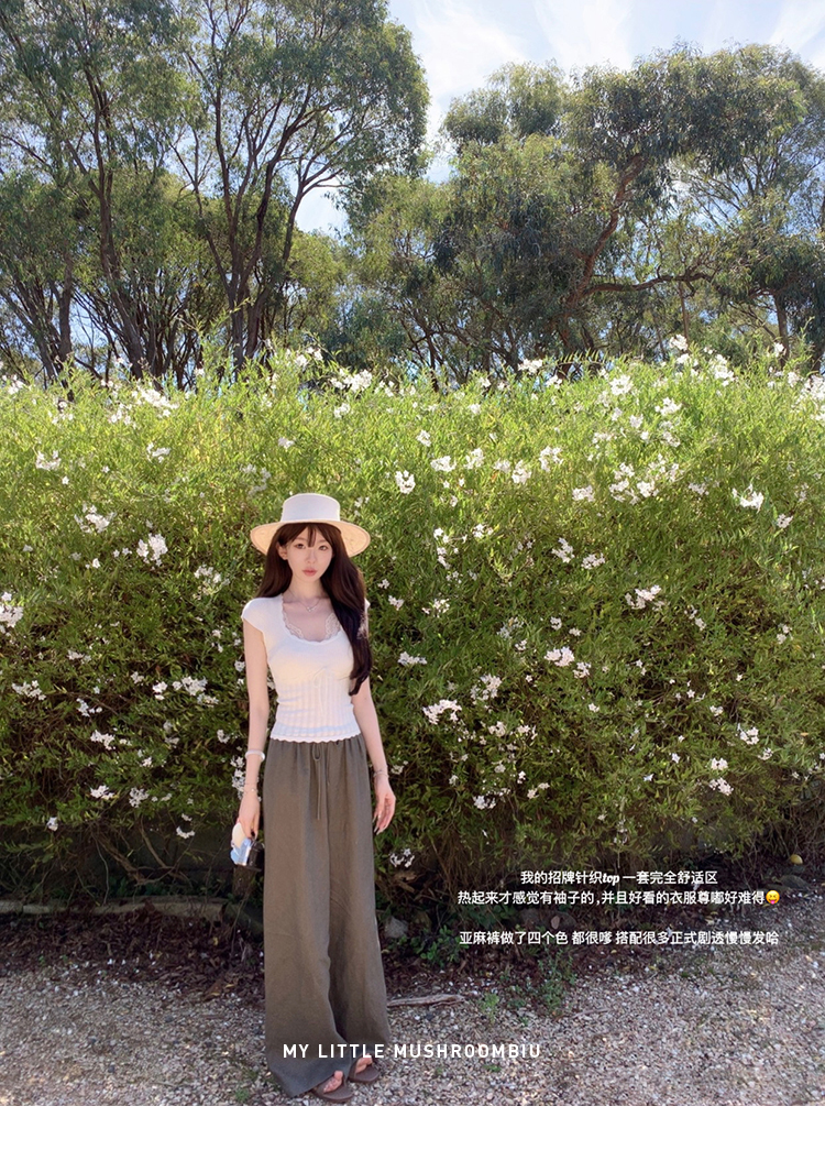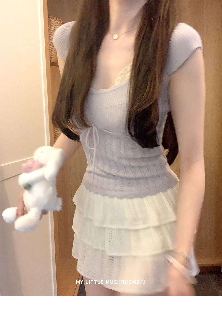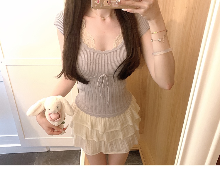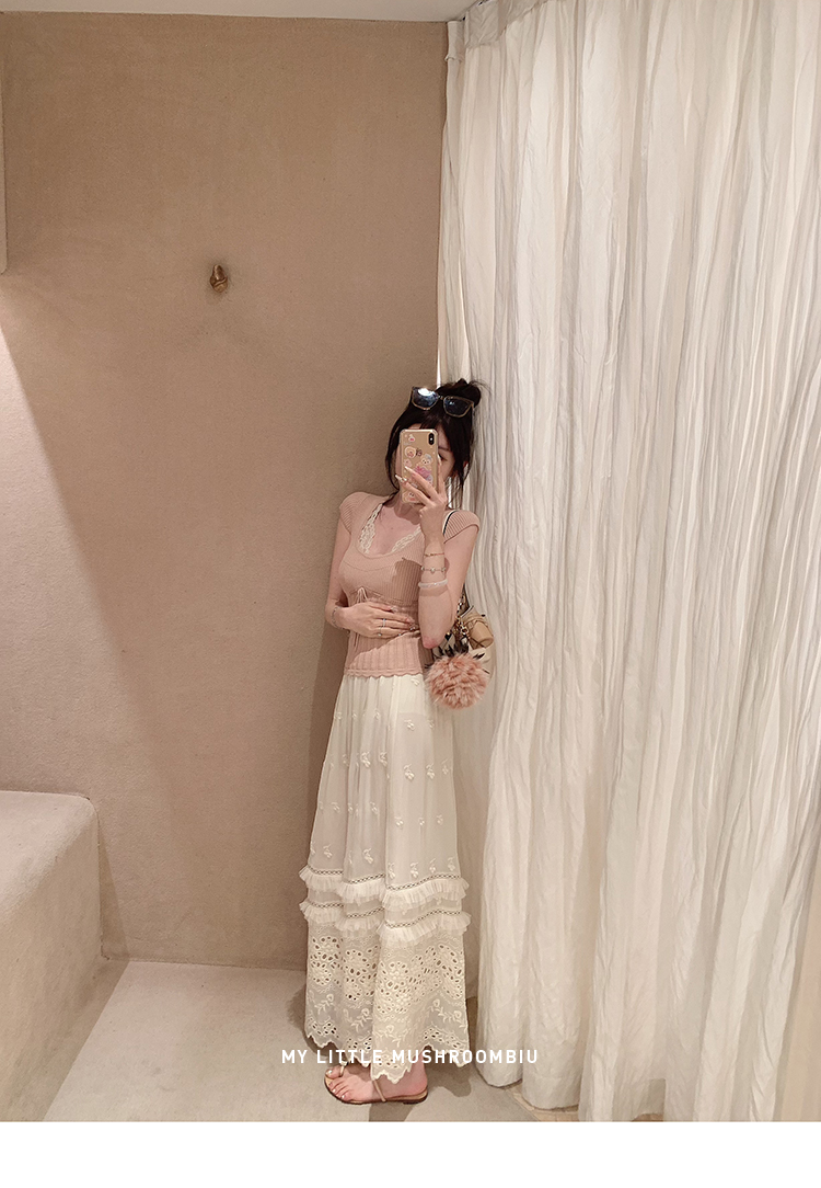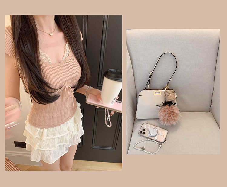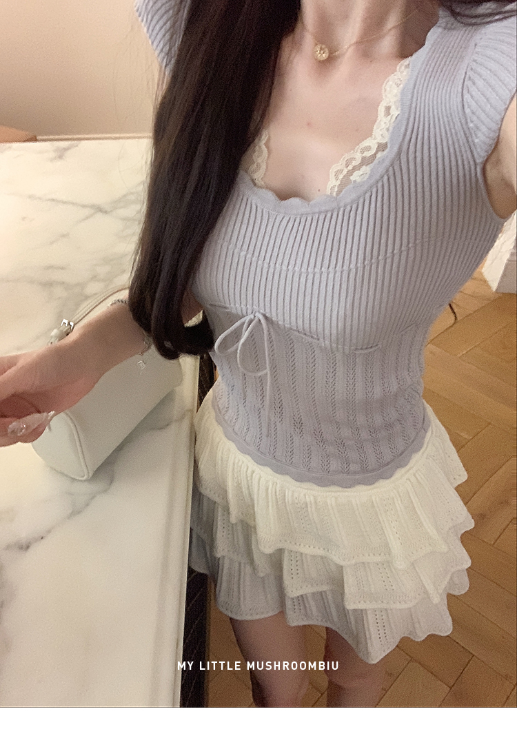 金蘑菇菇 夏日特调 招牌针织top / 细支钩花蕾丝bra