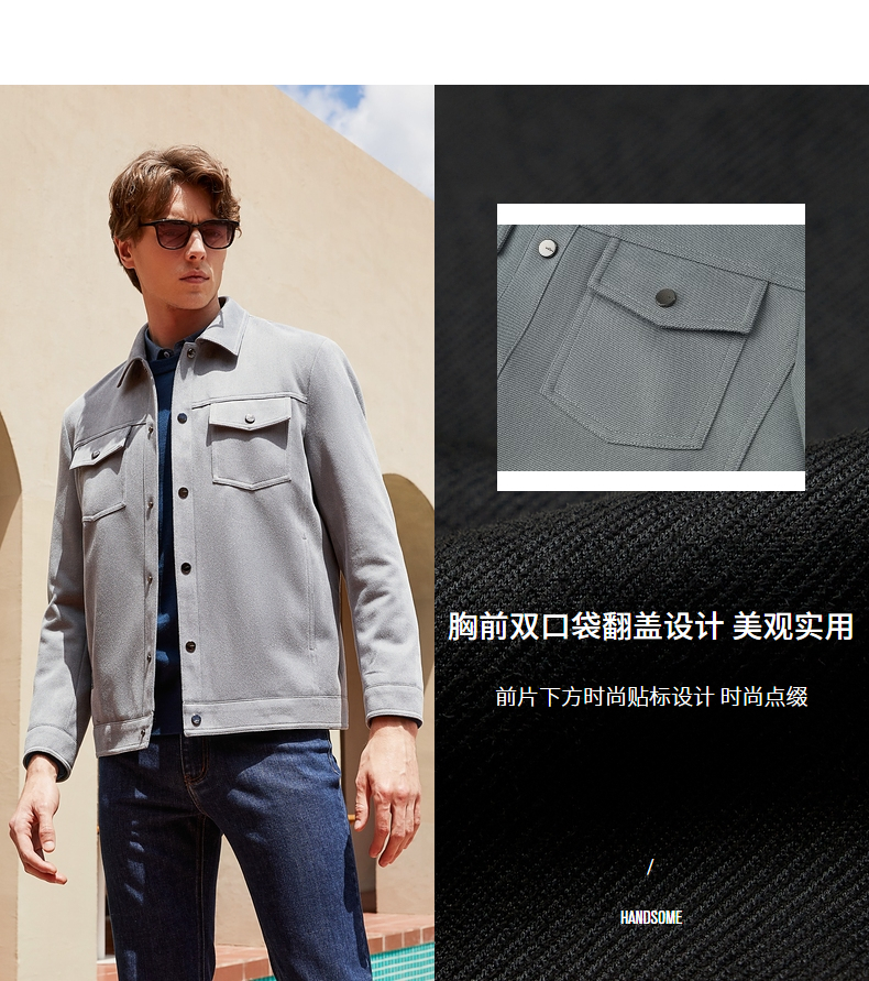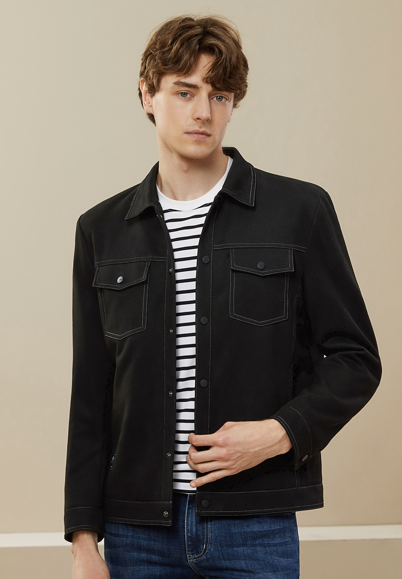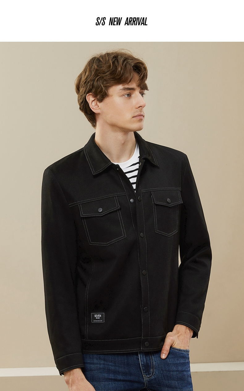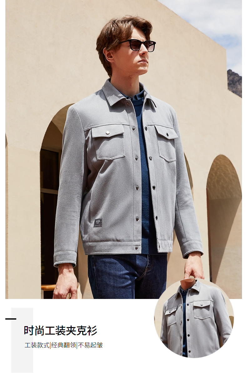 柒牌男装翻领夹克男2024春季新款时尚潮流青年工装风纯色休闲外套 126K70030