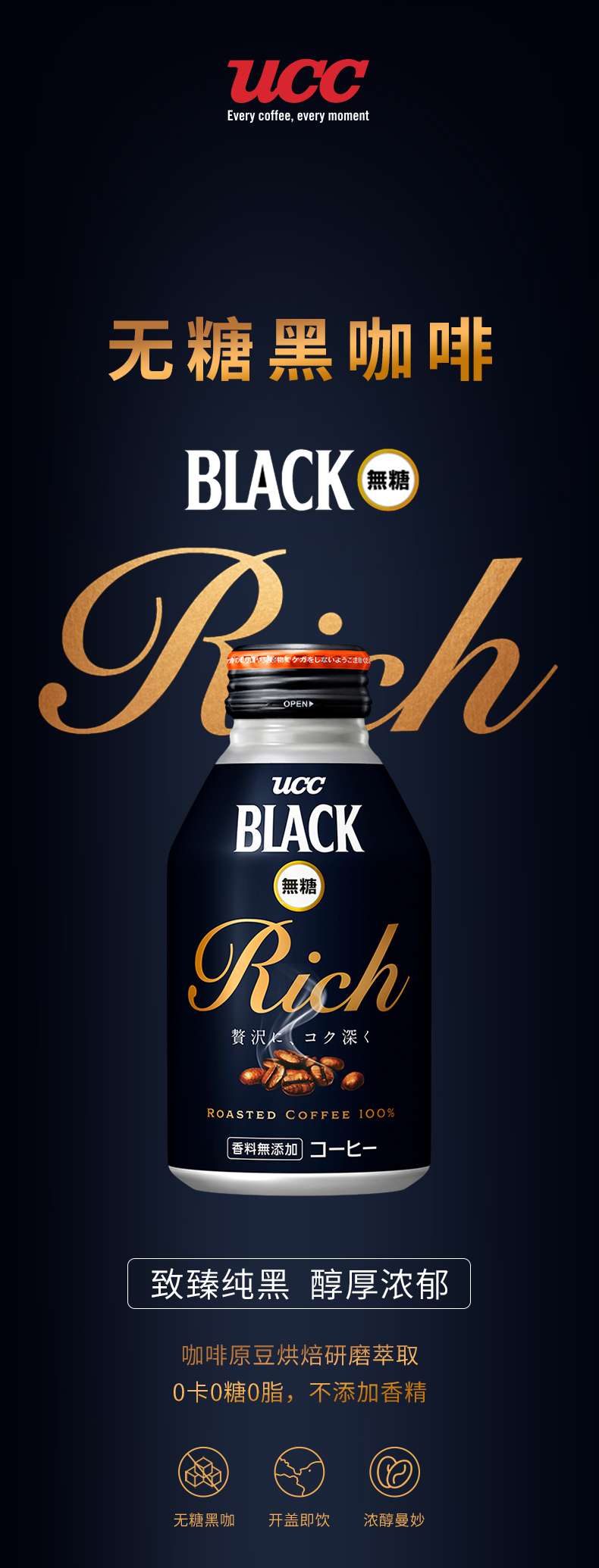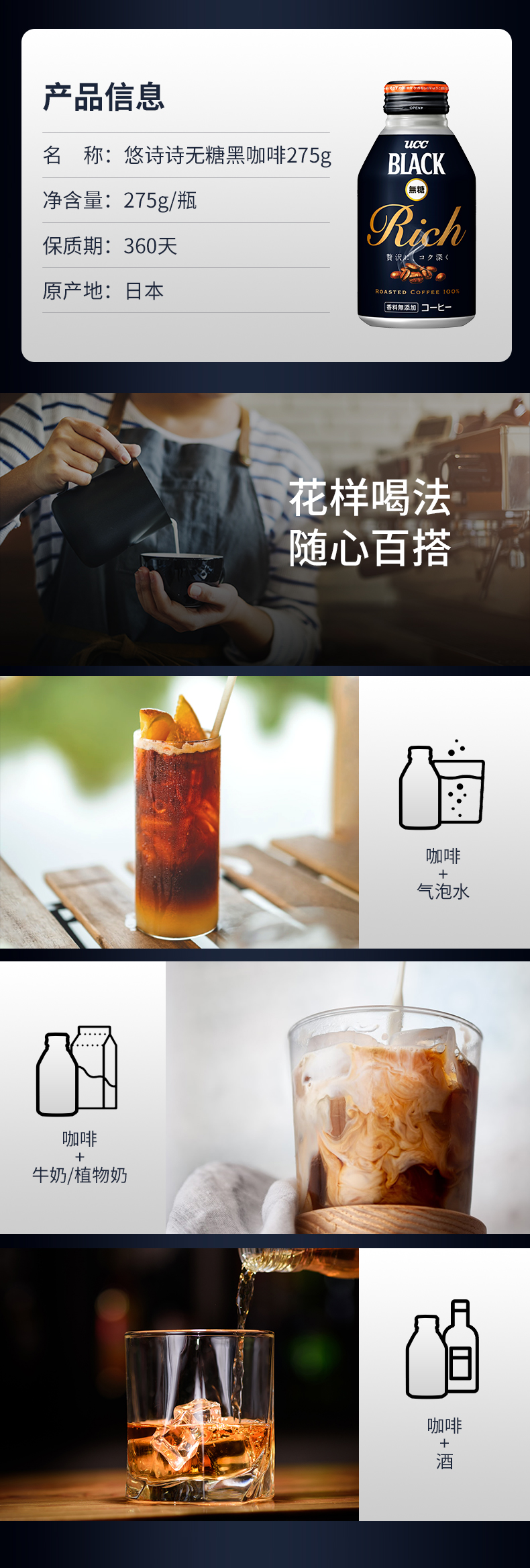 日本UCC黑咖啡饮料275g/023844 口感浓郁咖香萦绕无糖无脂即开即饮