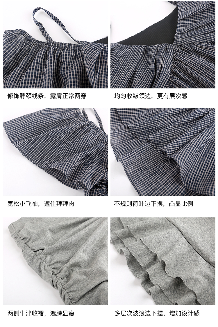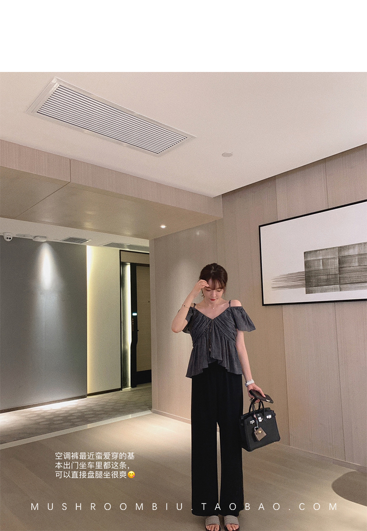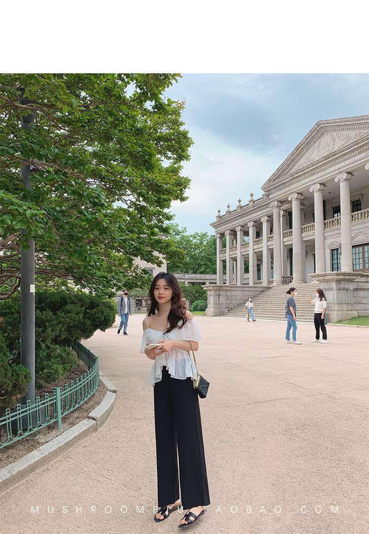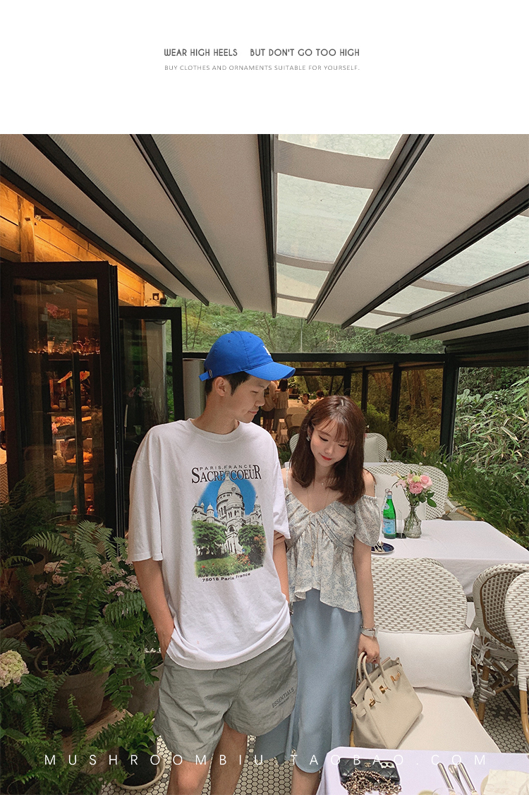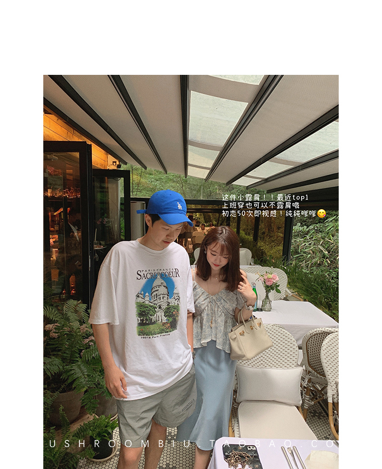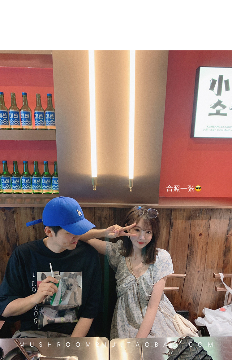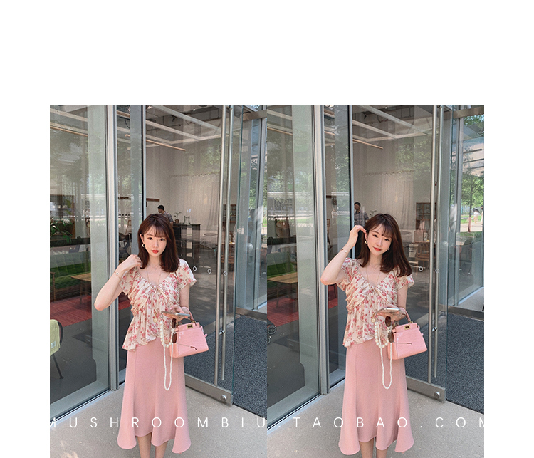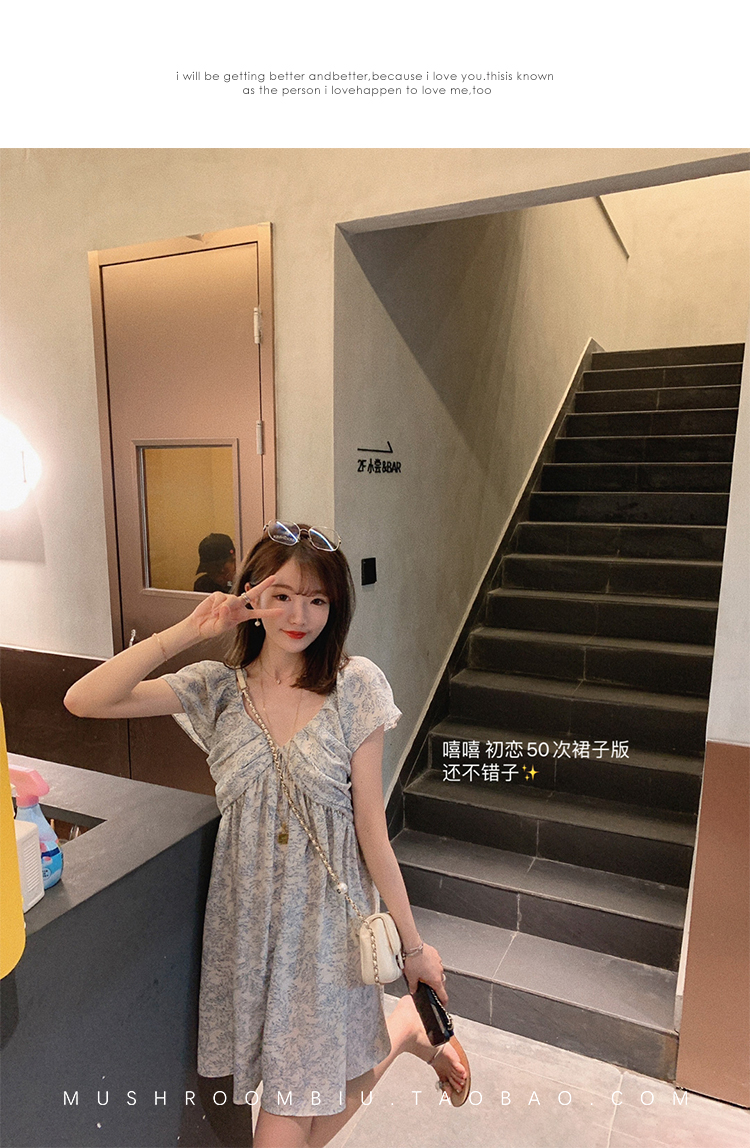 【金蘑菇菇 初恋50次】法式一字肩小心机露肩雪纺碎花上衣