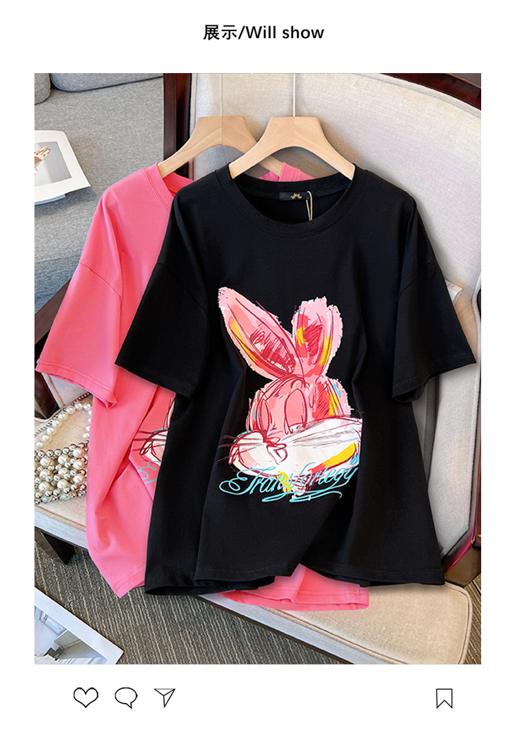 夏季新款【120-300斤加肥加大码T恤】圆领休闲宽松 显瘦款印花卡通短袖