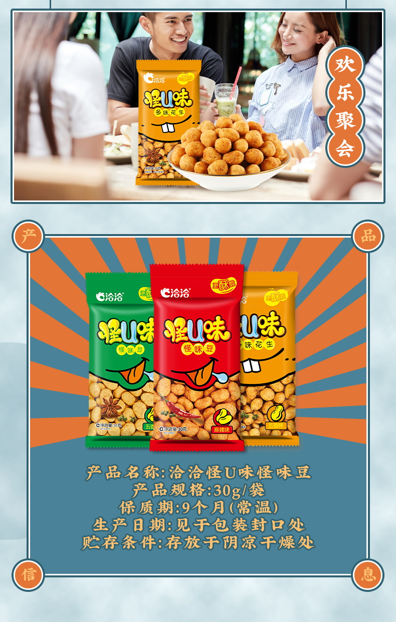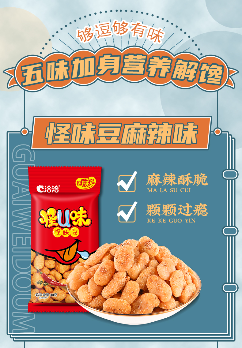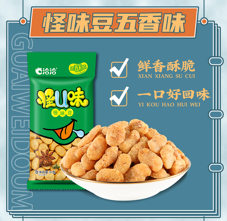 【长期集采】怪U味蚕豆麻辣味/五香味30g、怪U味花生五香味30g