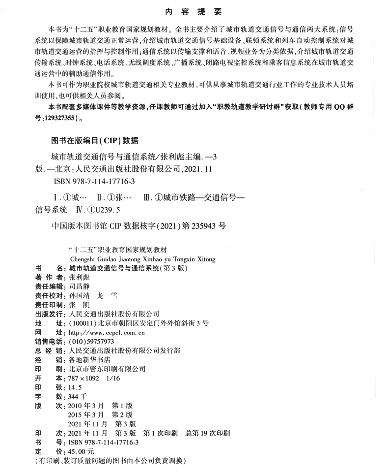 书名:城市轨道交通信号与通信系统(第3版)