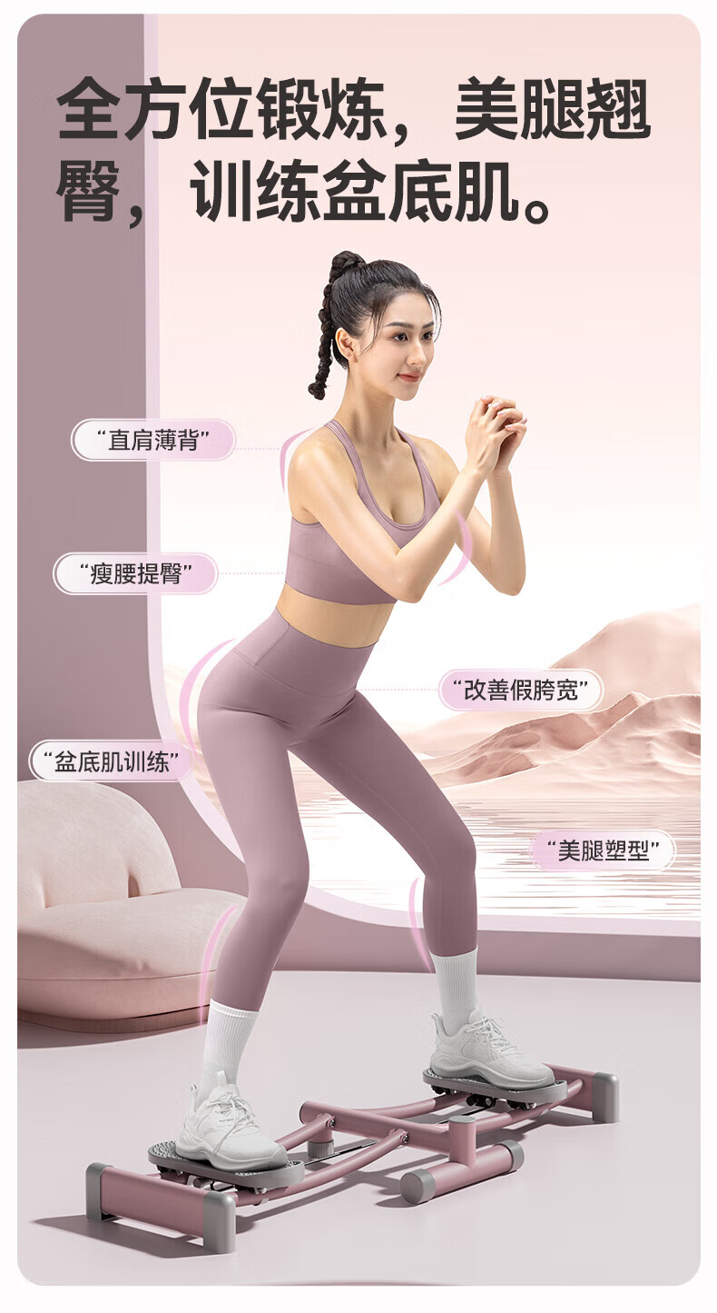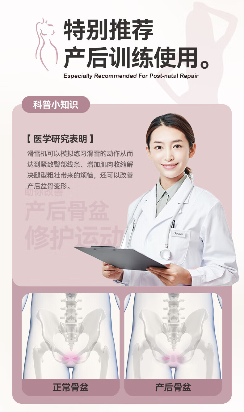 麦瑞克(MERACH)滑雪机盆底肌训练器美腿机 计数+扶手【粉】智能计数/可折叠