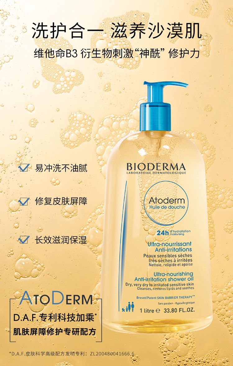 【预售 急单慎拍】Bioderma贝德玛滋润保湿留香嫩肤沐浴油200-1000ml