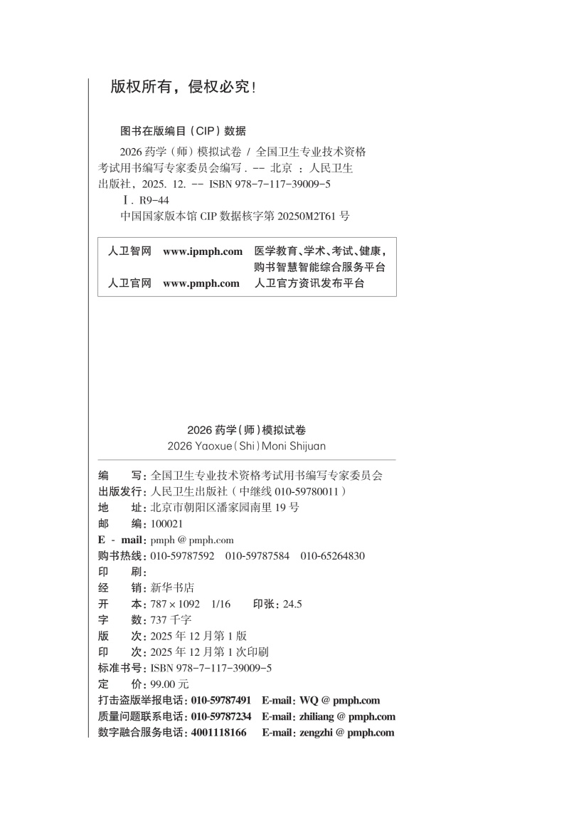 2026药学(师)模拟试卷 全国卫生专业技术资格考试习题集丛书 全国卫生专业技术资格考试用书编写专家委员会编写 人民卫生出版社