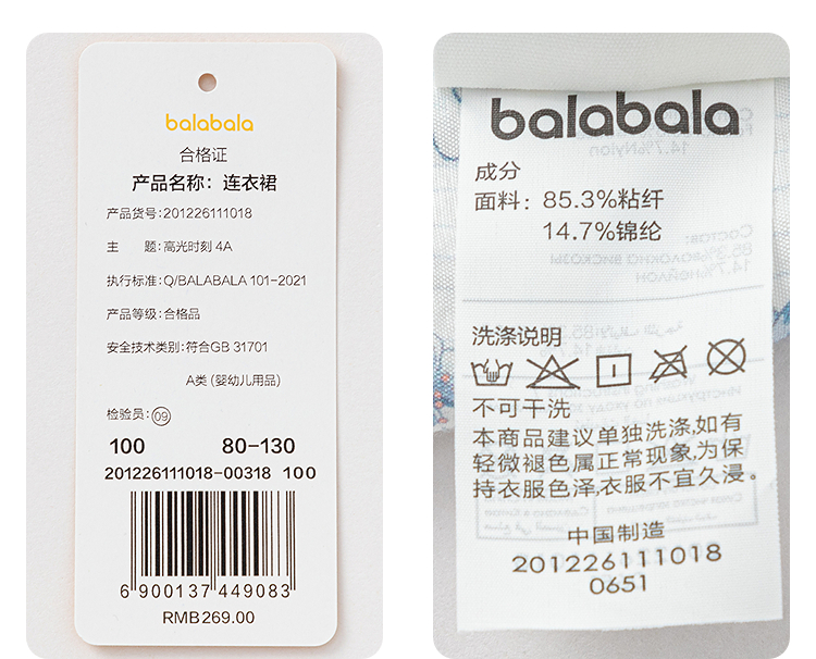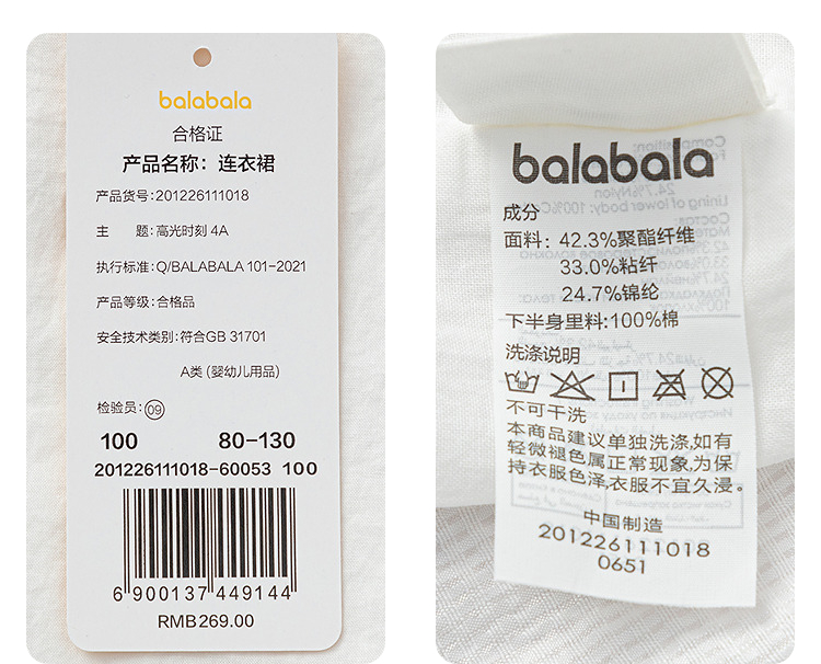 【商场同款】巴拉巴拉儿童连衣裙女童2026新款夏季经典收腰A字裙