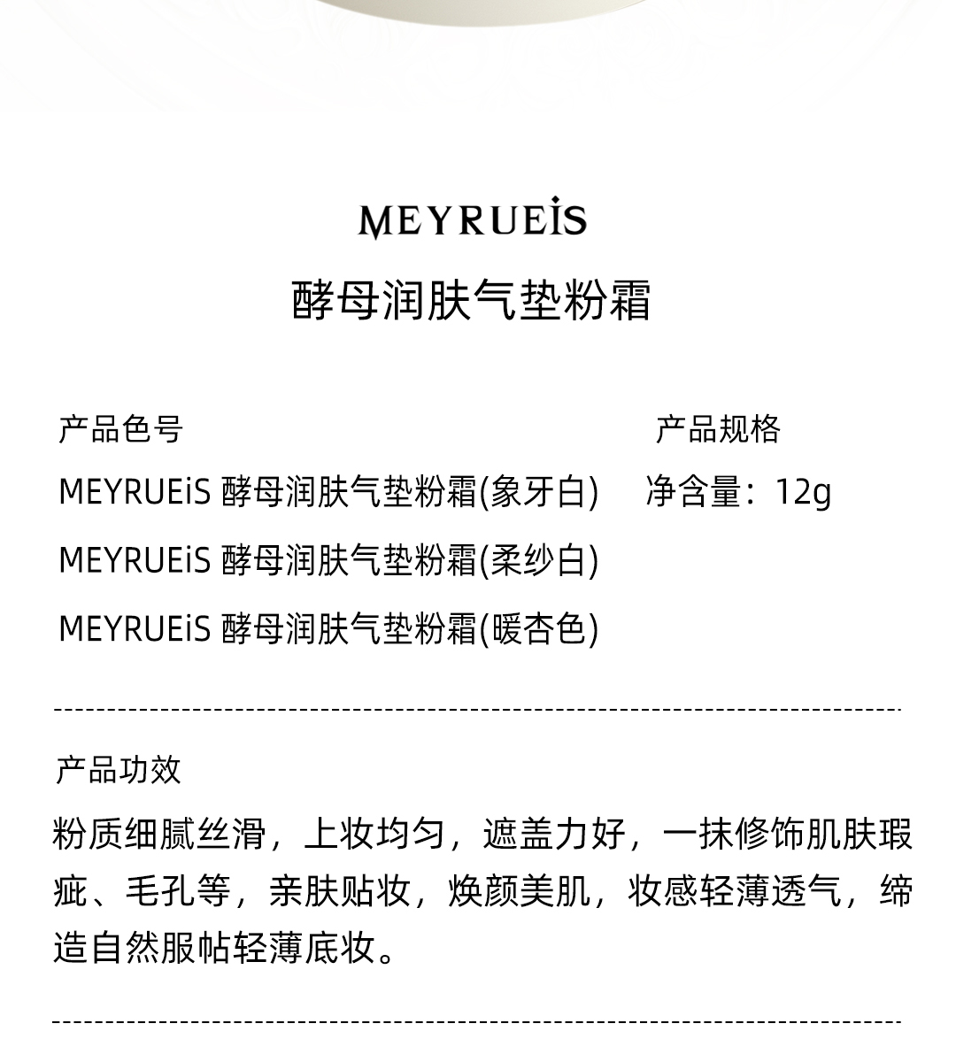 MEYRUEiS酵母润肤气垫粉霜 滋润细腻无瑕定妆不吃粉底妆便携气垫 商品缩略图0 MEYRUEiS酵母润肤气垫粉霜 滋润细腻无瑕定妆不吃粉底妆便携气垫 商品缩略图1 MEYRUEiS酵母润肤气垫粉霜 滋润细腻无瑕定妆不吃粉底妆便携气垫 商品缩略图2 MEYRUEiS酵母润肤气垫粉霜 滋润细腻无瑕定妆不吃粉底妆便携气垫 商品缩略图3