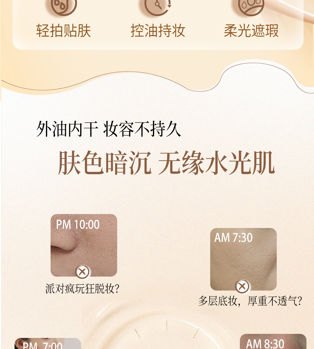 MEYRUEiS酵母润肤气垫粉霜 滋润细腻无瑕定妆不吃粉底妆便携气垫 商品图3