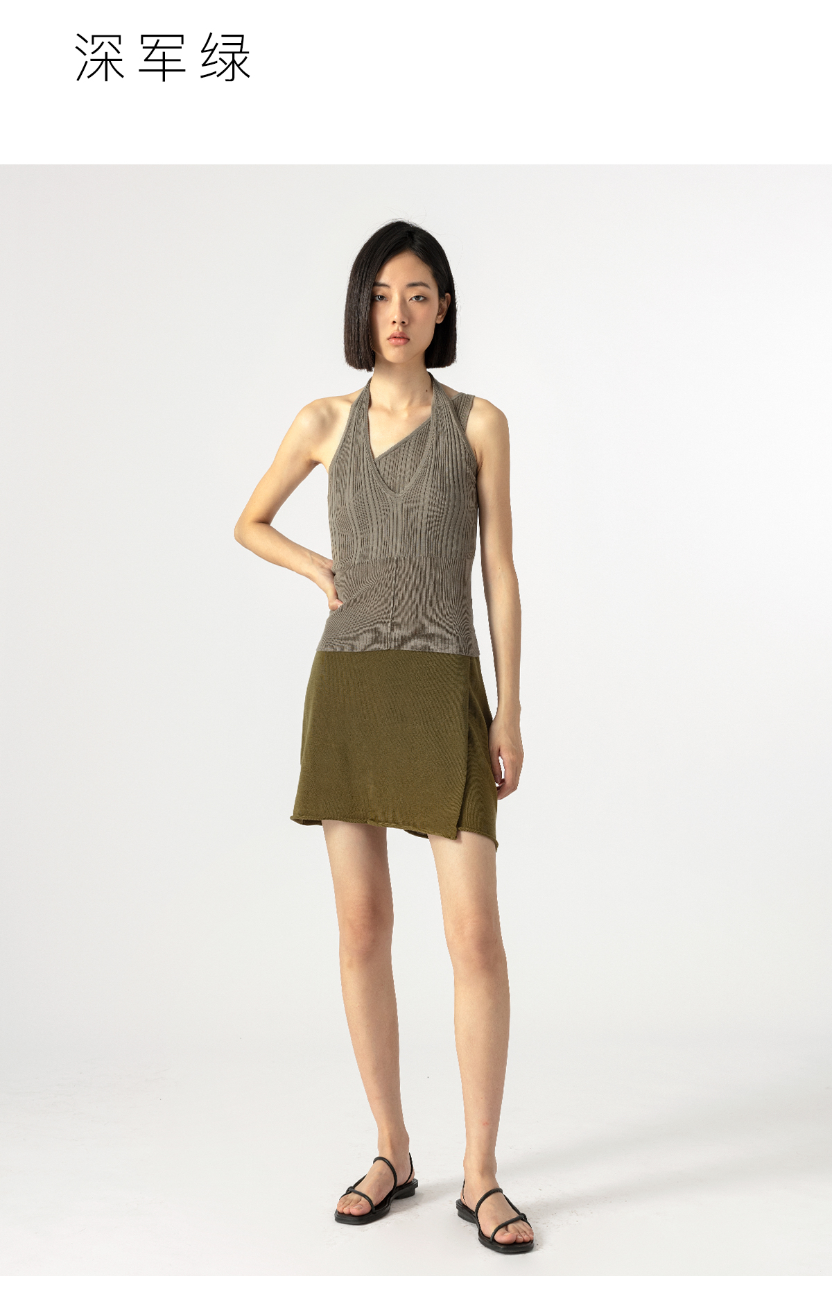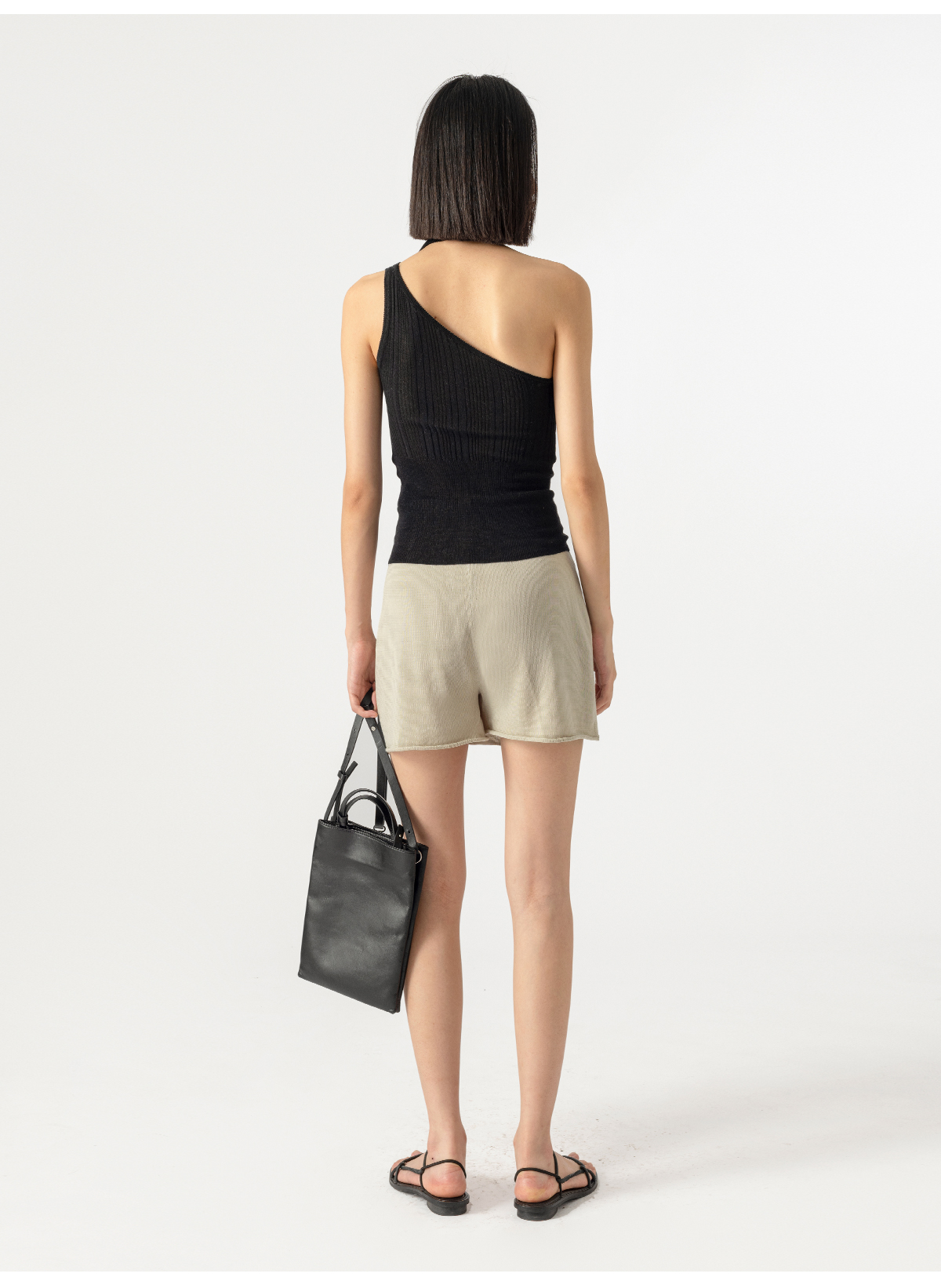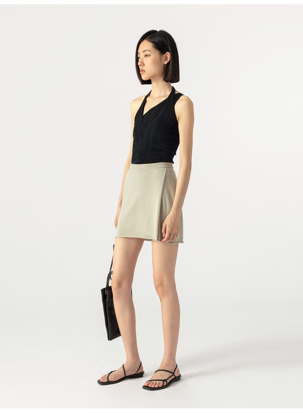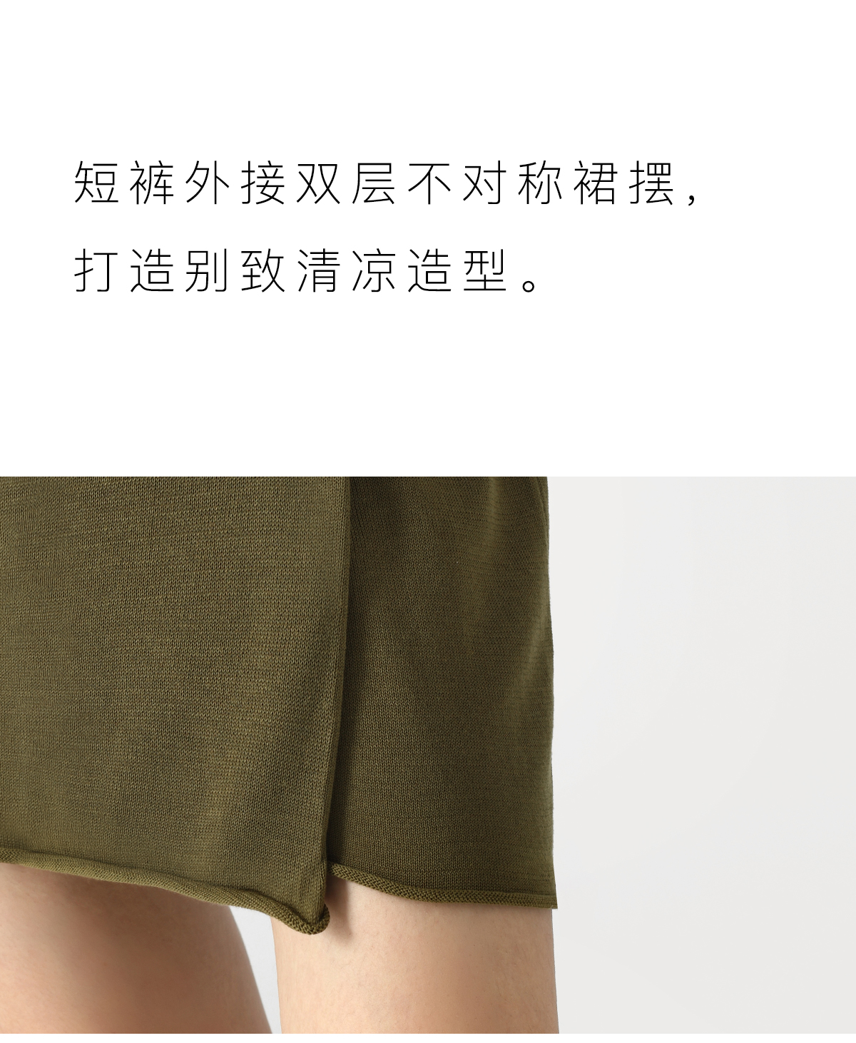 322工房别致造型蚕丝针织裙裤2023夏女士休闲短裤不对称裙裤B073