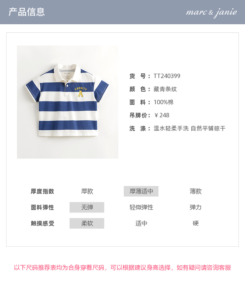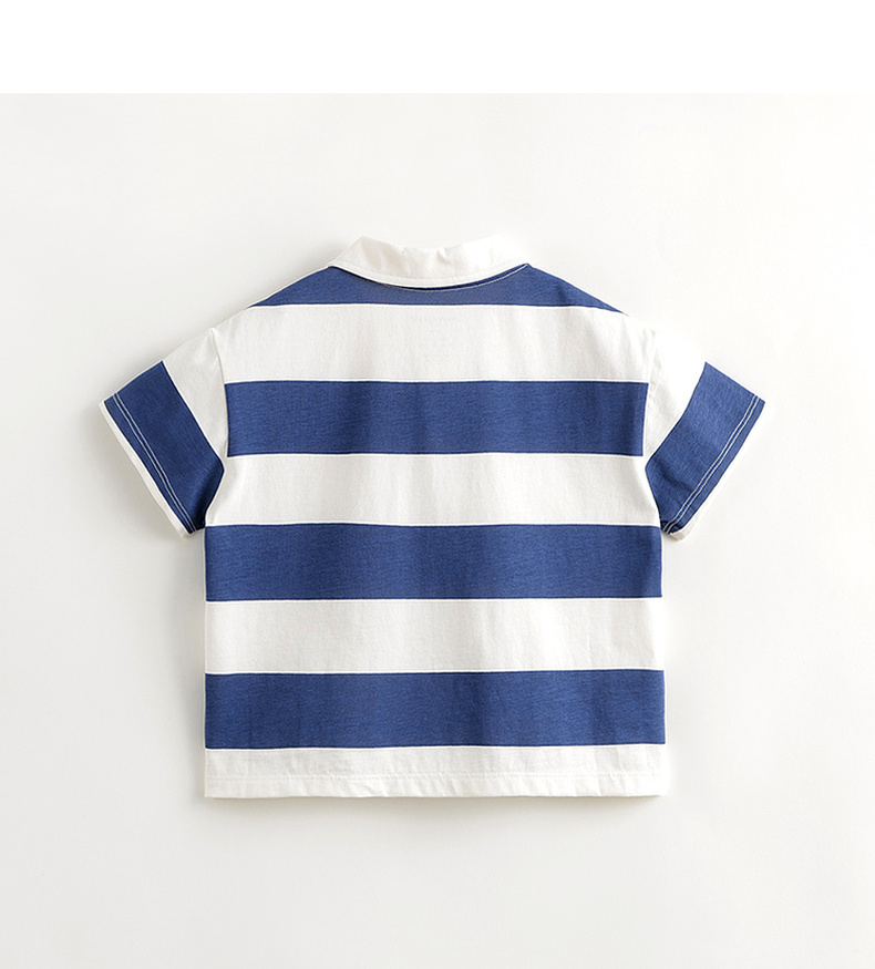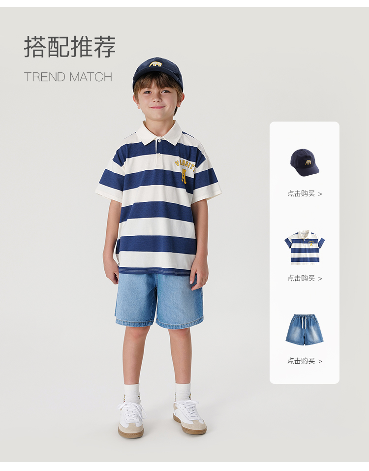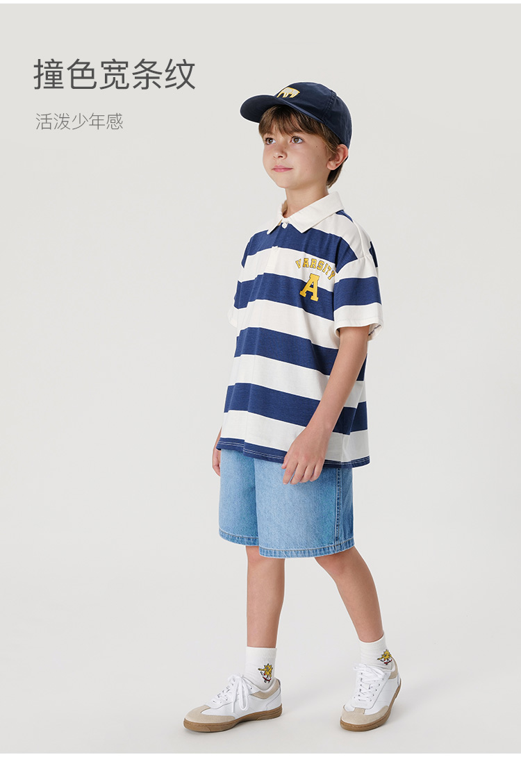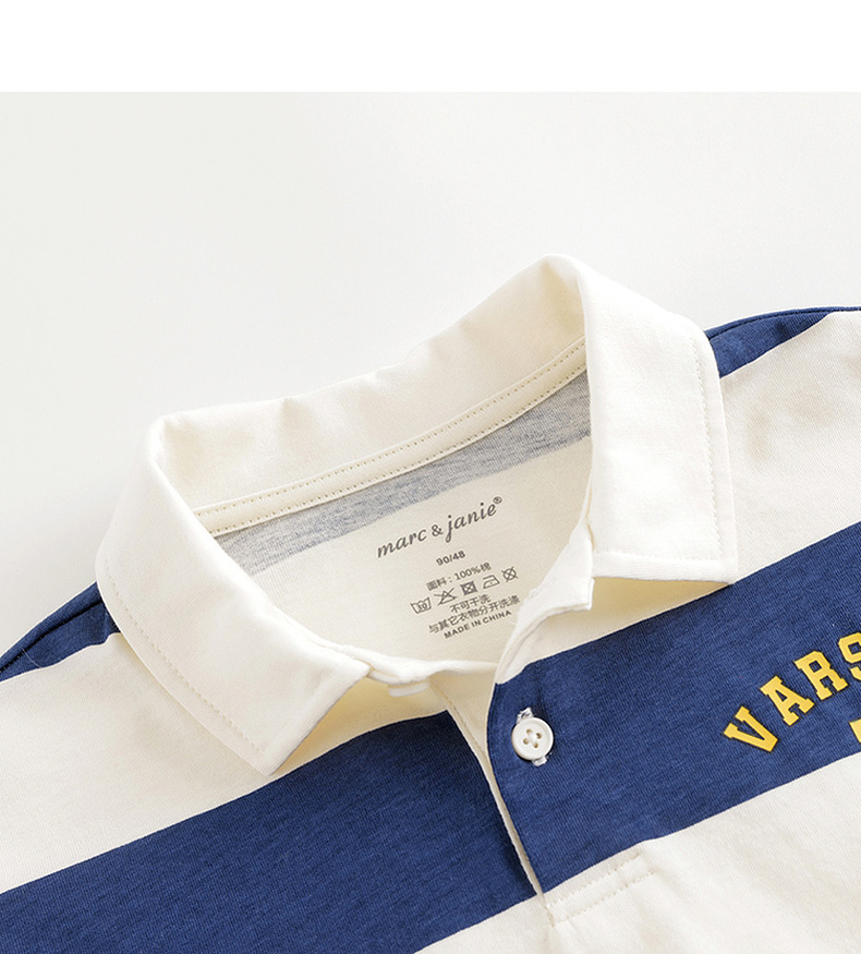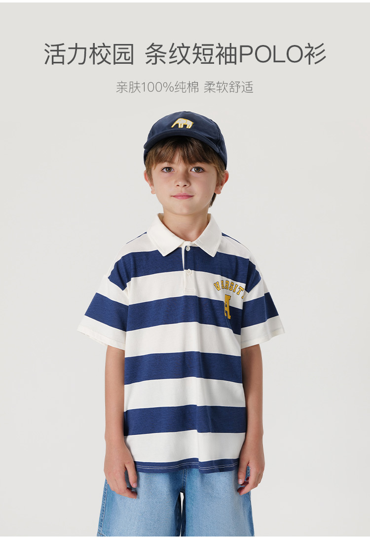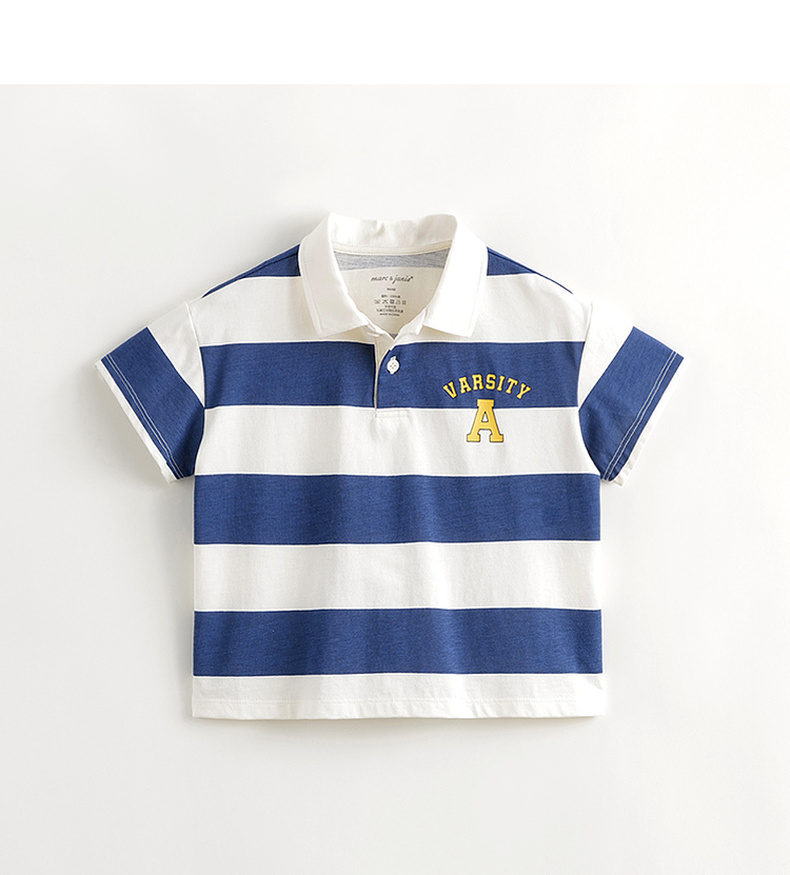 马克珍妮男童休闲学院条纹短袖polo衫儿童纯棉上衣夏装新款240399