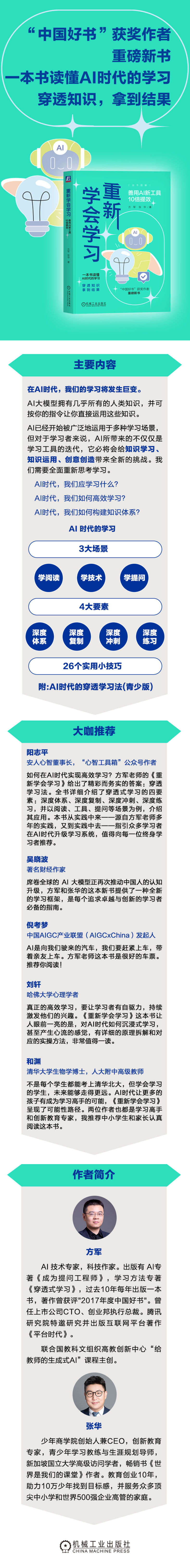 在AI时代,学习正持续发生着巨大变化。对于学习者来说,AI不仅会带来学习工具的迭代,更会给学习思维、知识整理、创意创造、教育教学带来全新的挑战。本书紧跟技术前沿,旨在成为“AI辅助学习”的重要著作。作者认为,学习的目的在于“穿透知识,拿到结果”。结合互联网和AI的新技术工具,本书以图解形式提供技术变革背景下的学习方法和策略,以帮助读者在一个领域内快速建立知识体系、10倍提升学习效果。