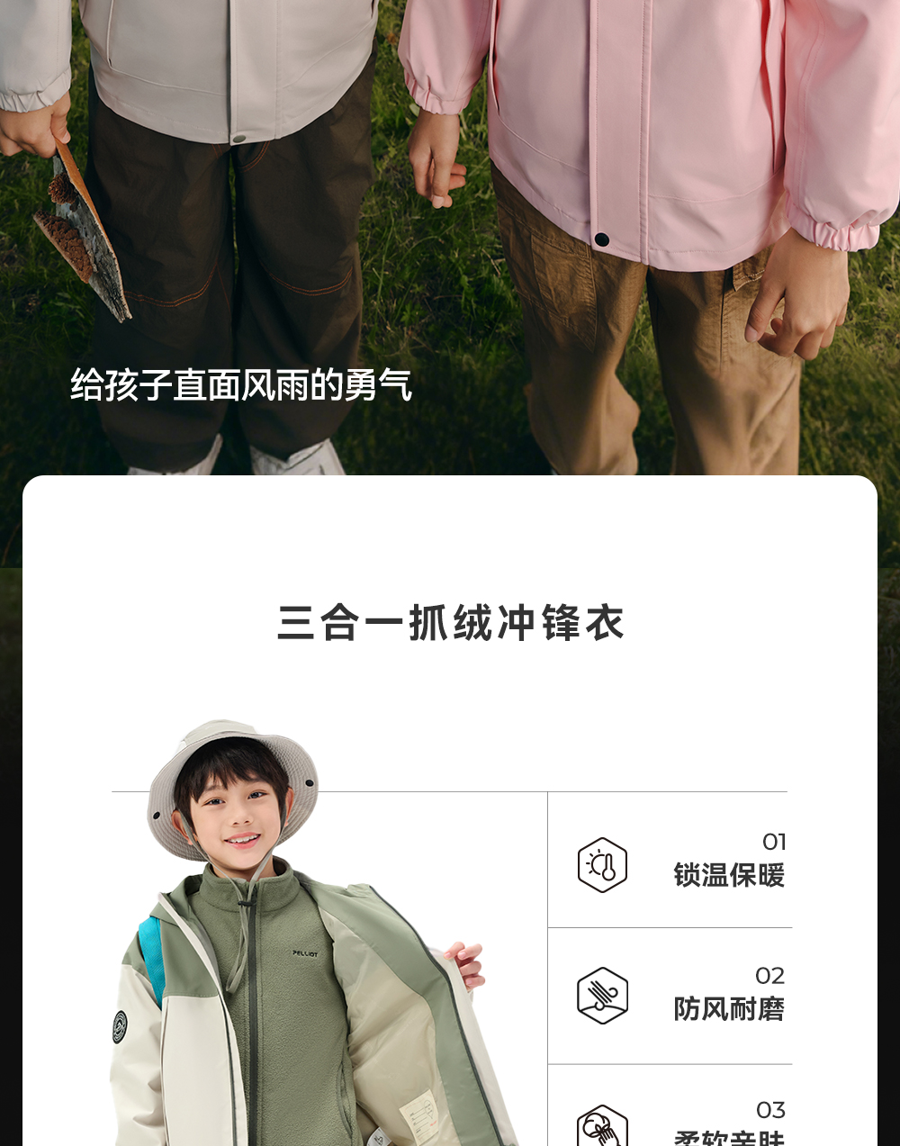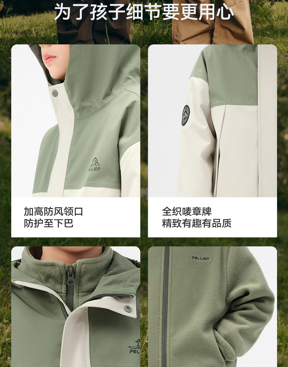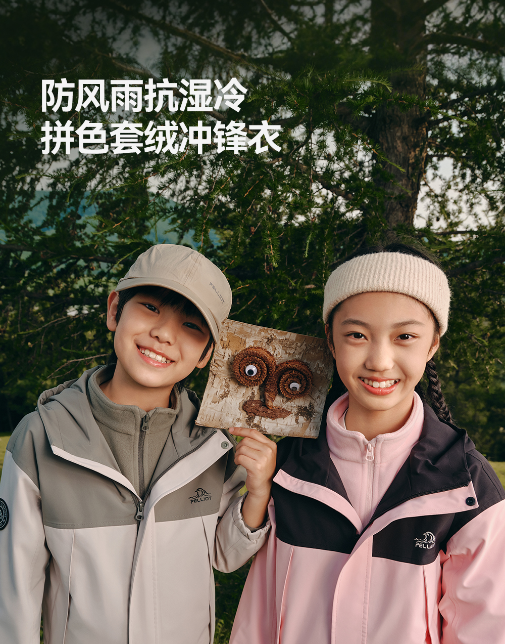 伯希和户外儿童冲锋衣新款两件套男童女童防风防水耐磨登山服外套