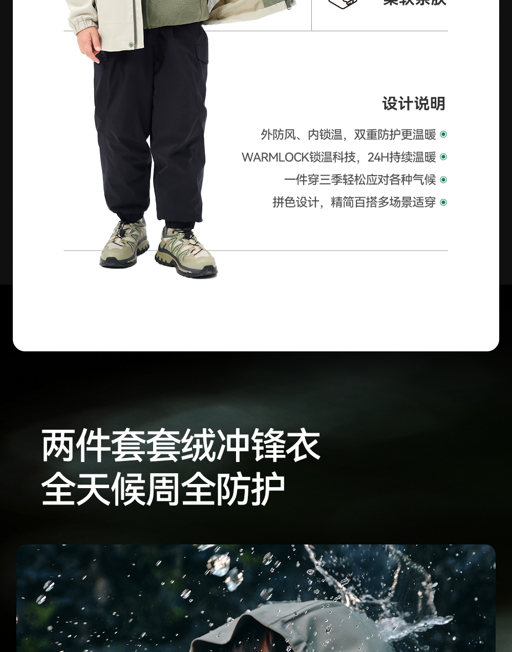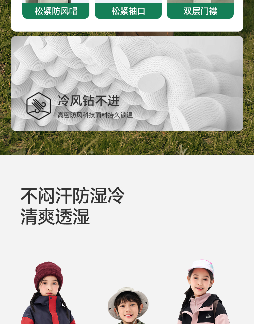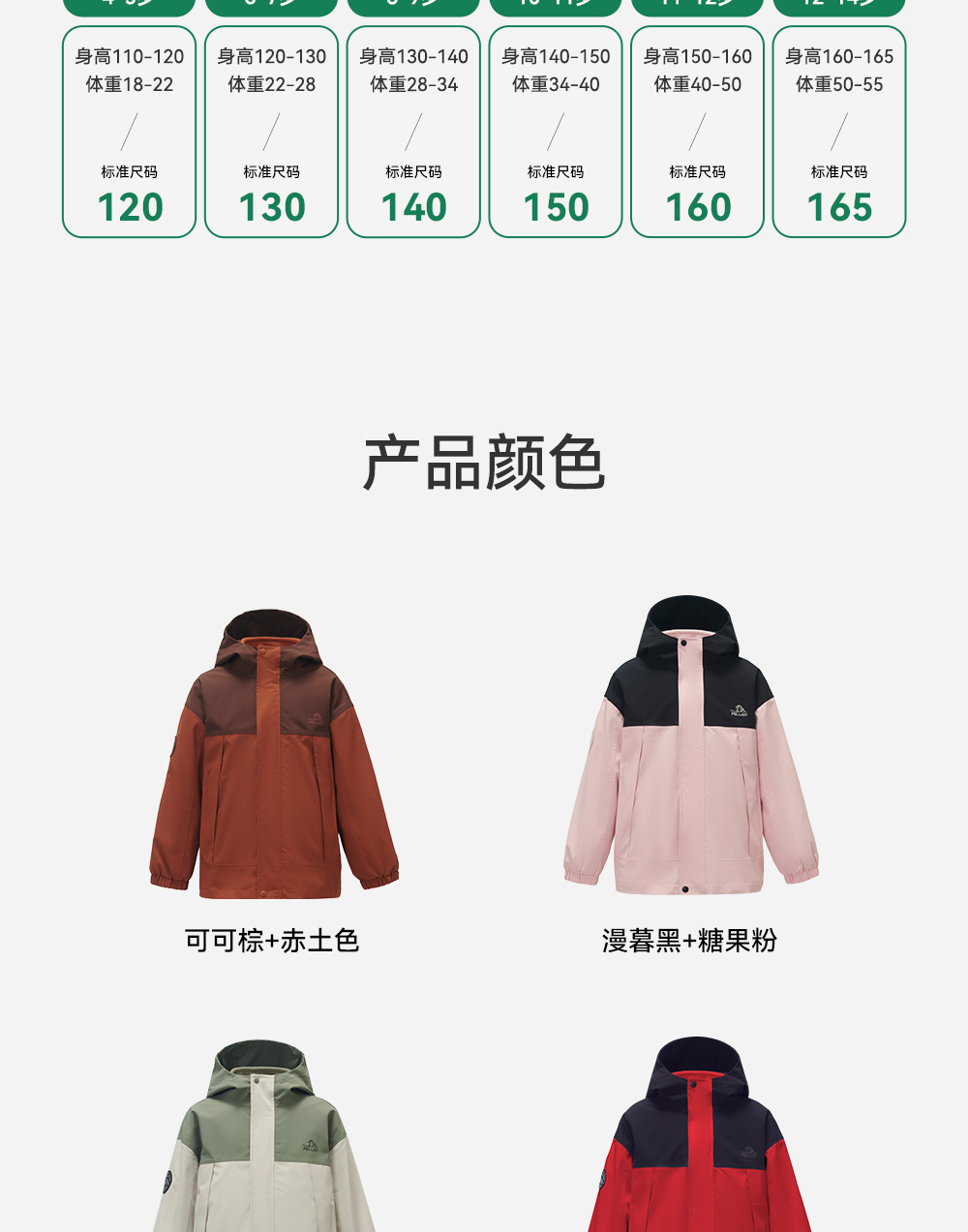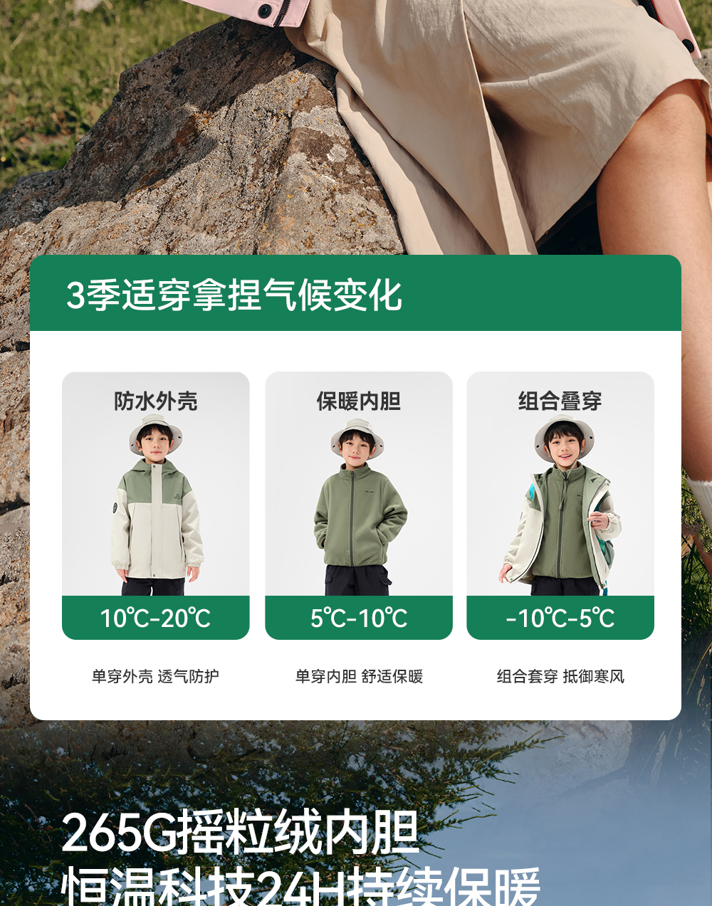 伯希和户外儿童冲锋衣新款两件套男童女童防风防水耐磨登山服外套