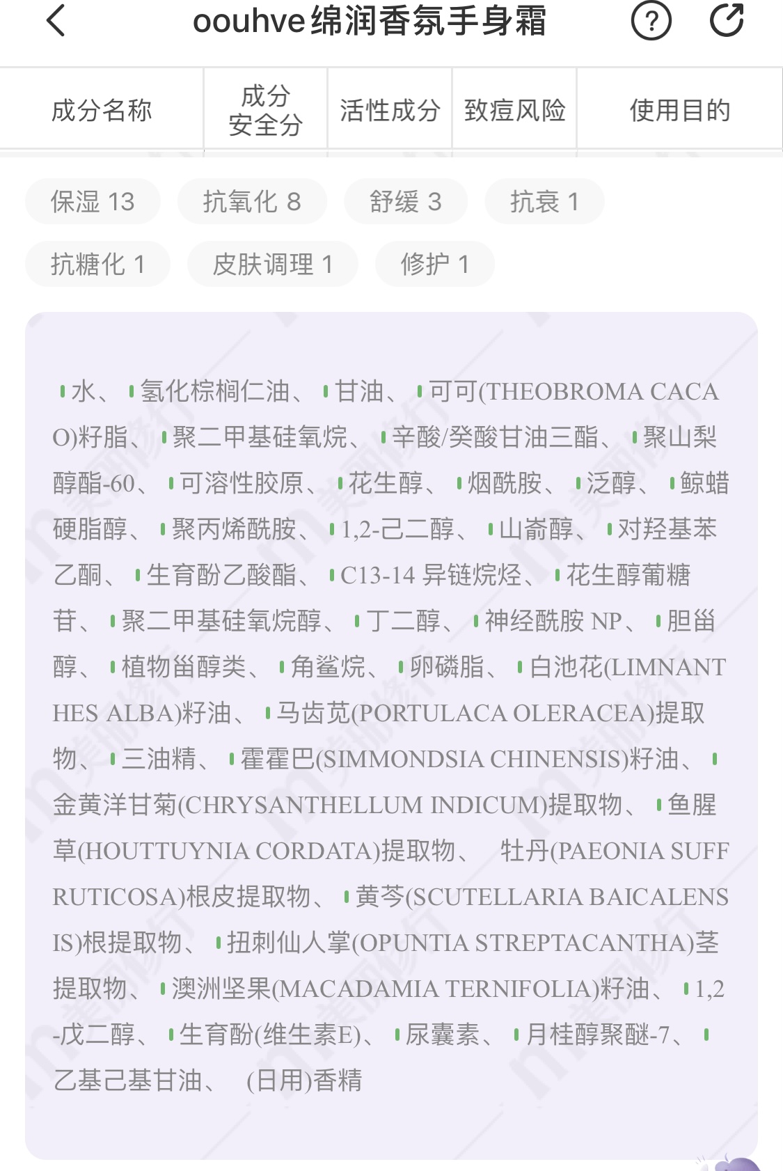 香气:檀香+薰衣草(特调的进口香料) 质地:根据绵润护手霜的