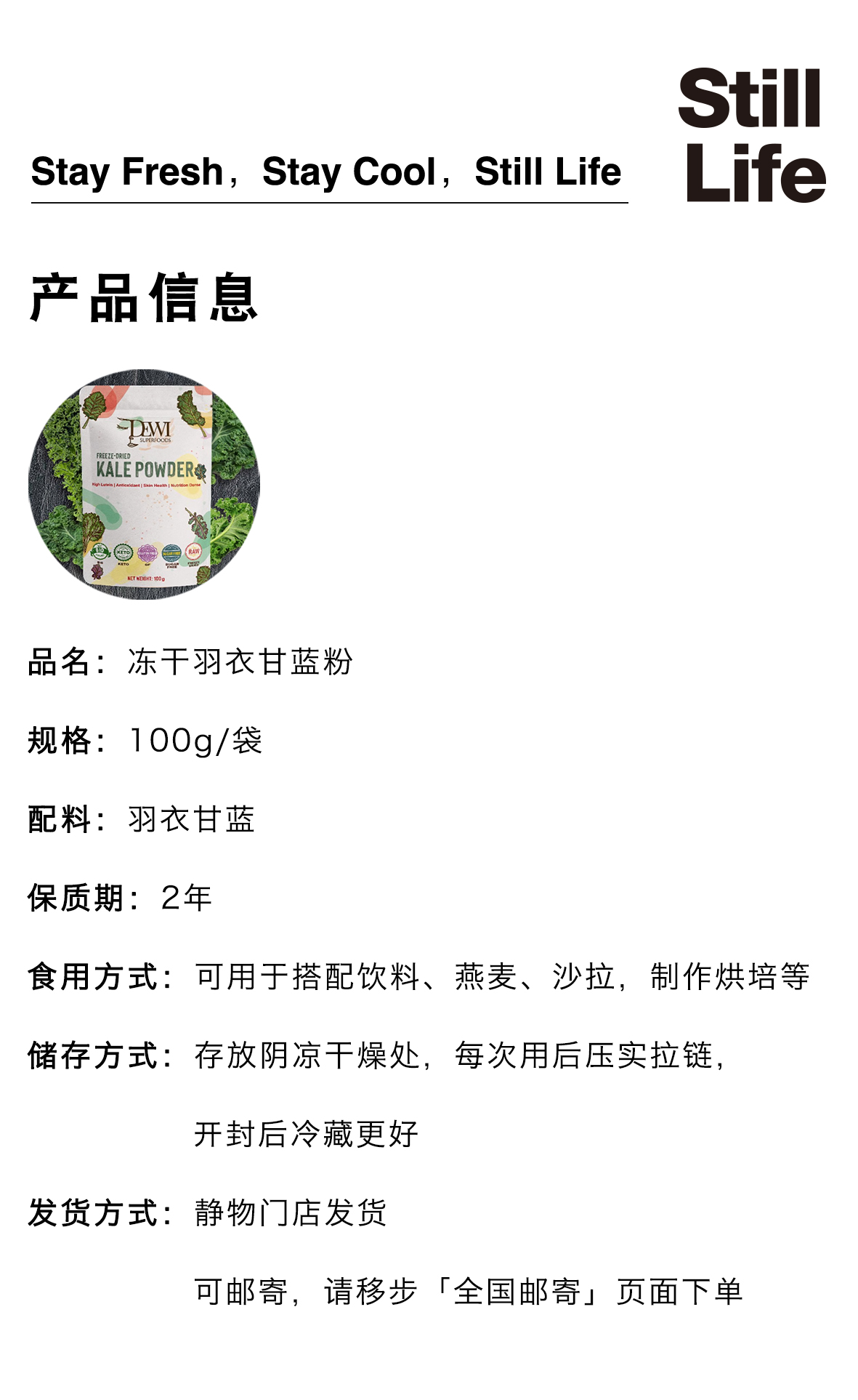有机冻干羽衣甘蓝粉100g