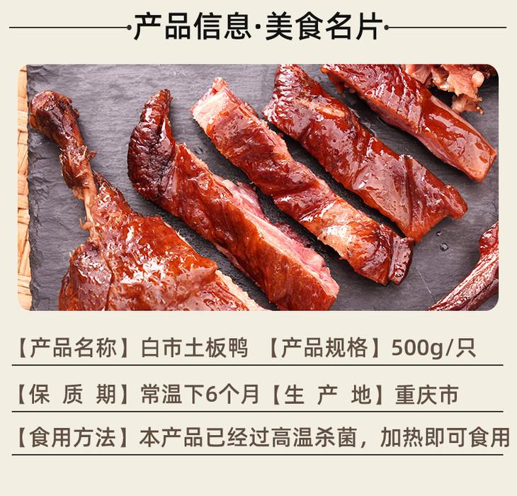 白市土板鸭500g玉炳五香味麻辣酱烟熏即食板鸭.