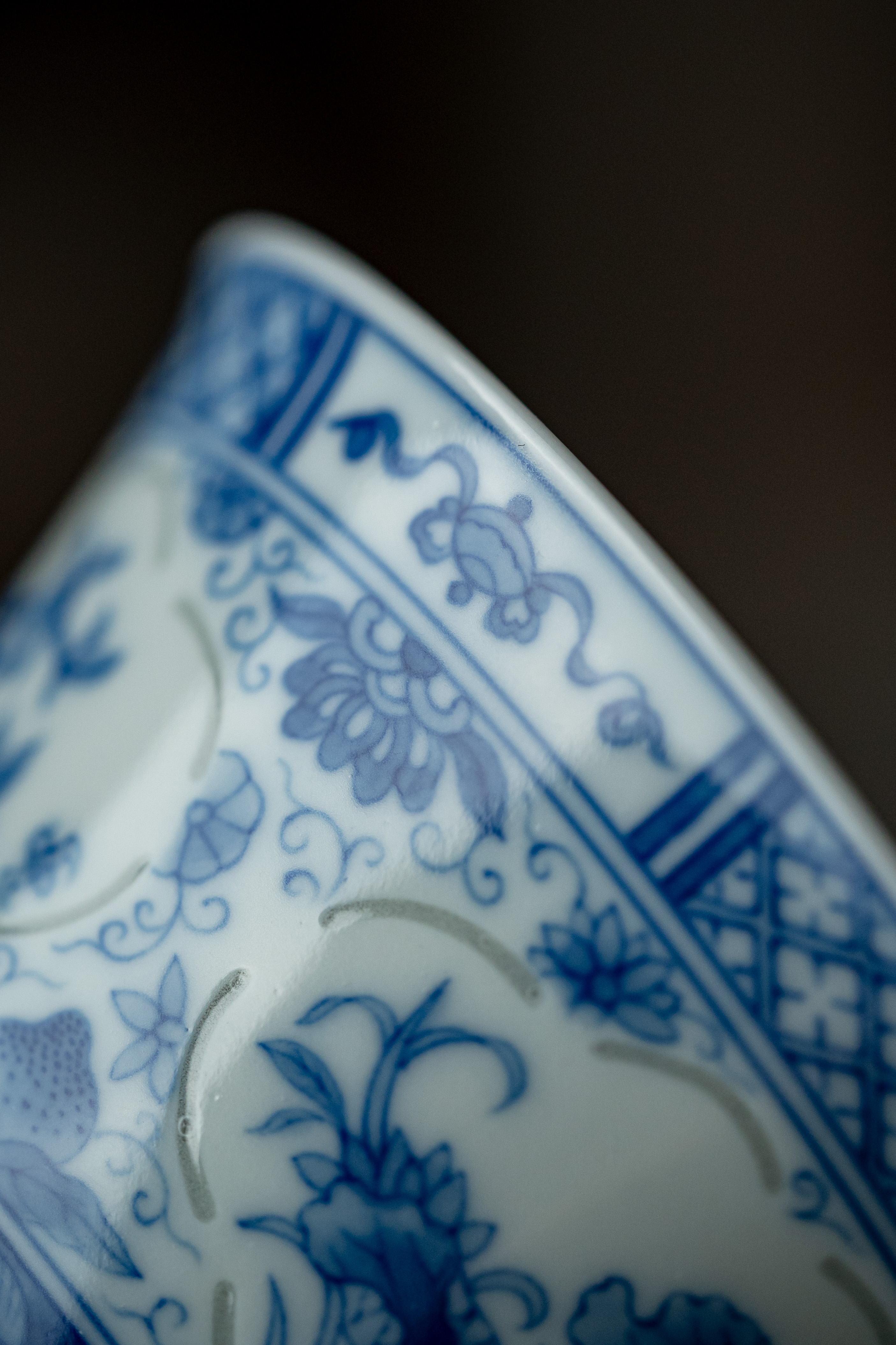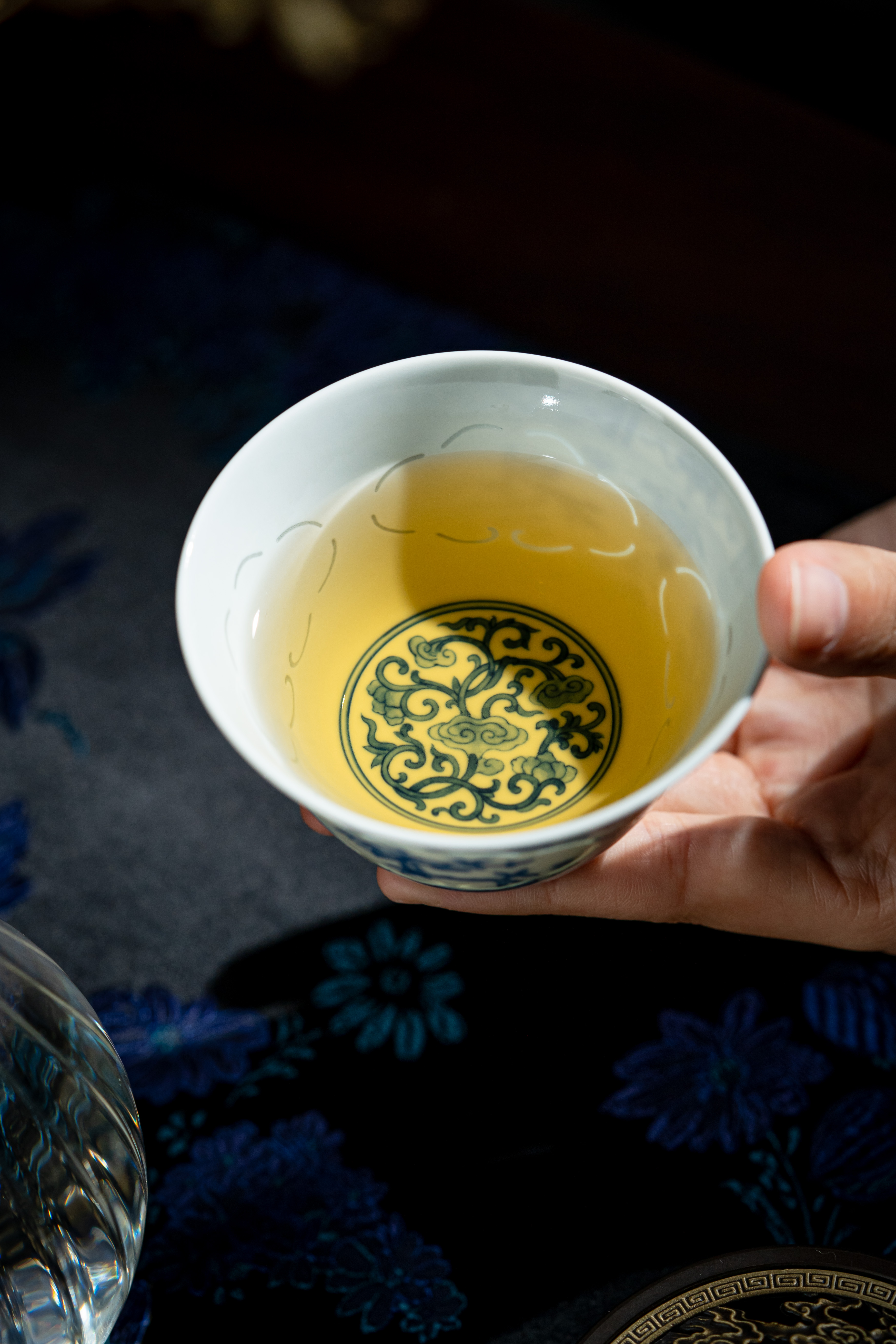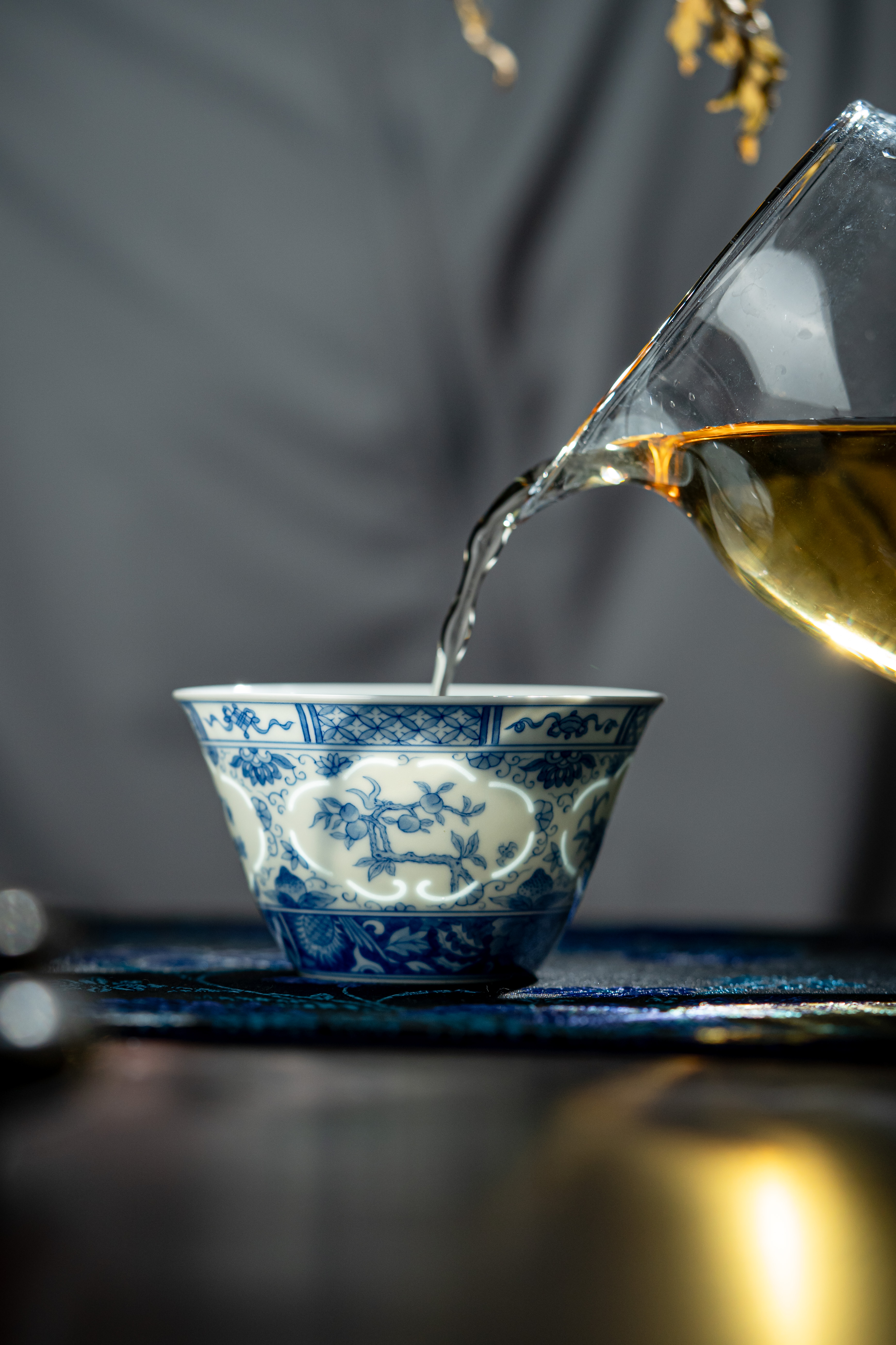 富玉窑 景德镇全手工青花玲珑四季花卉手作茶器品茗杯主人杯