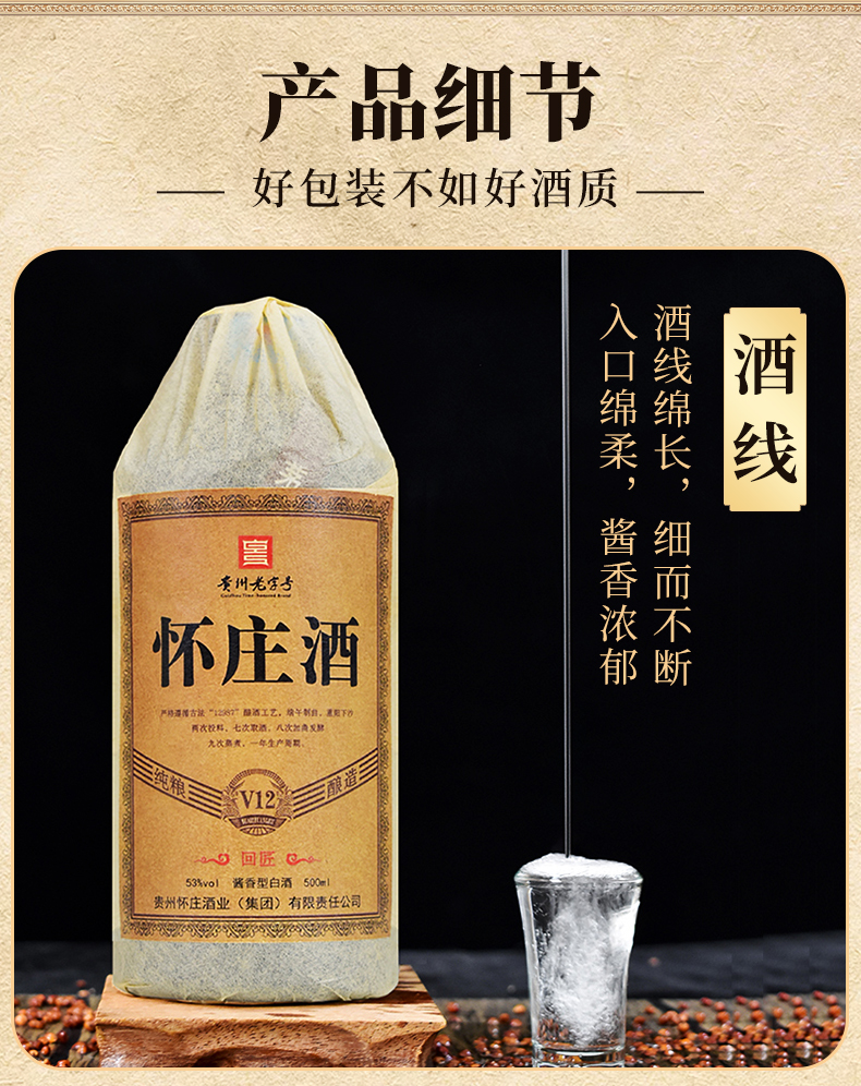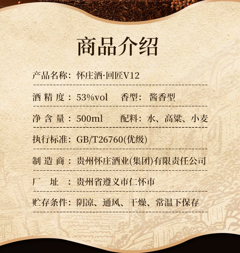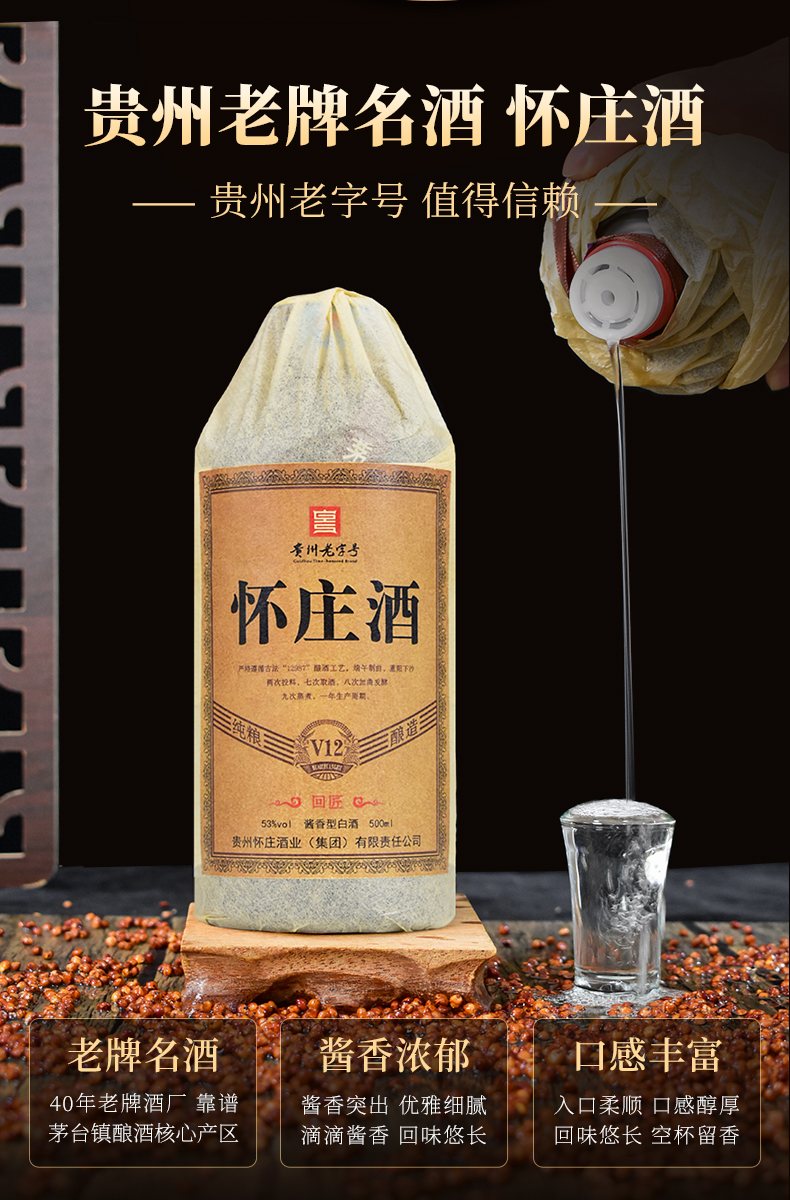 怀庄酒 回匠V12 酱香型白酒 53度500ml*6瓶装