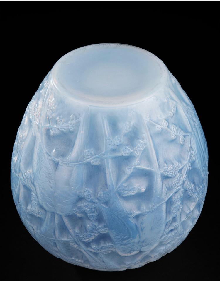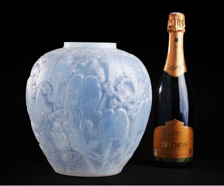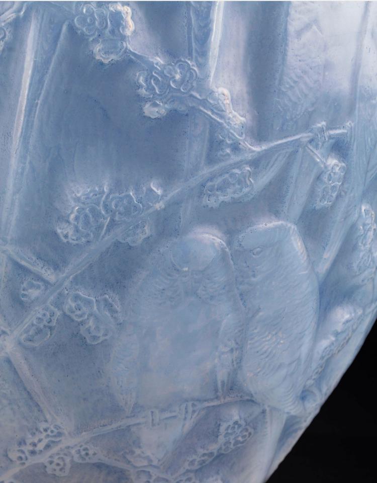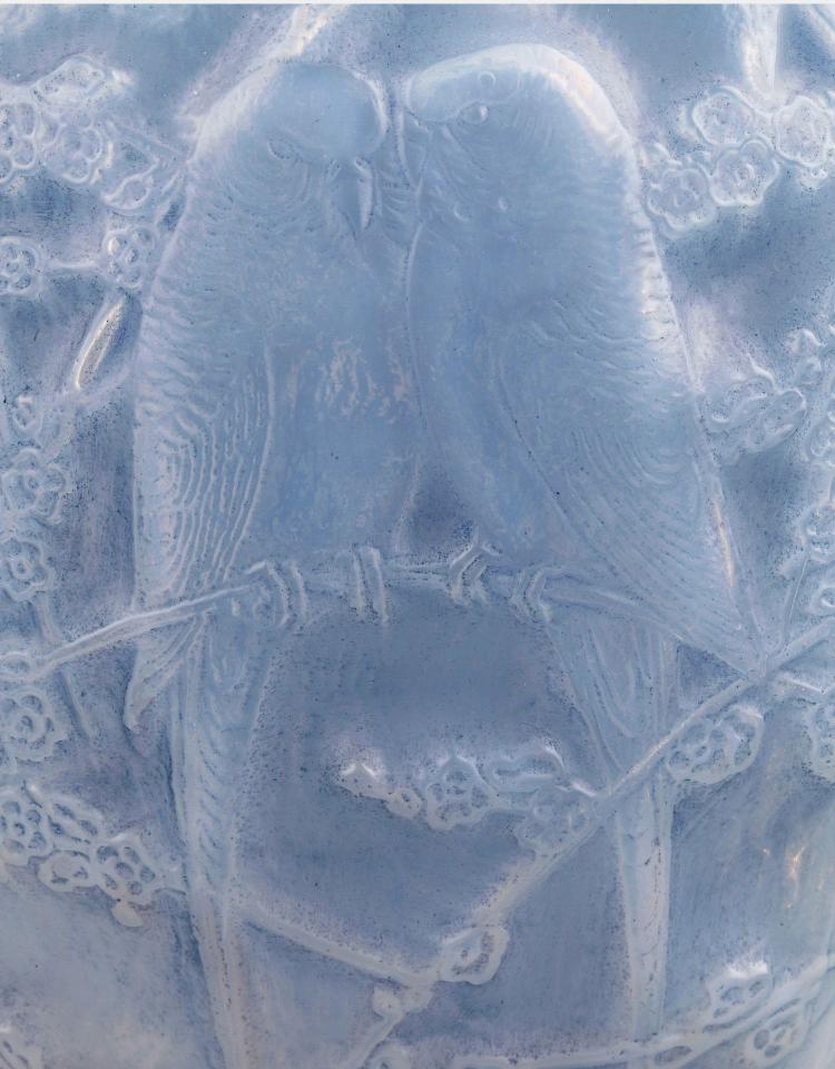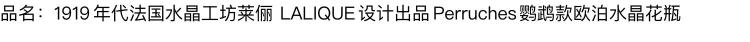 独角鹿西洋古董法国水晶工坊莱俪LALIQUE鹦鹉款欧泊水晶花瓶摆件
