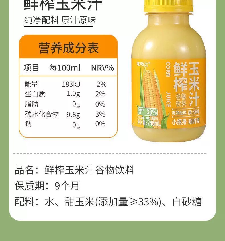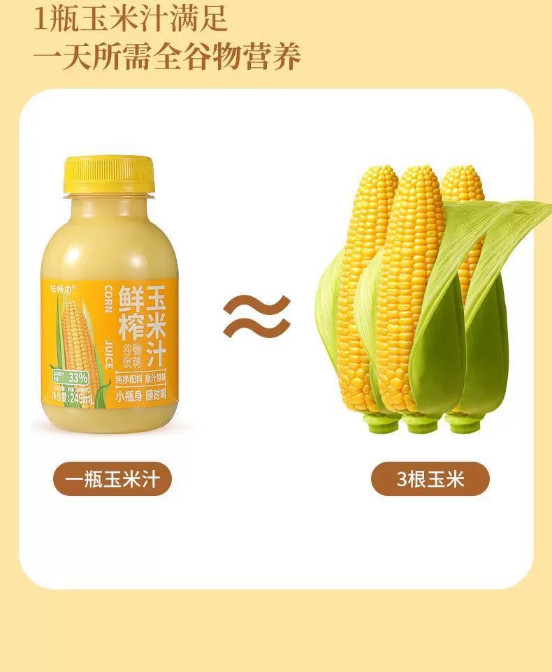 【社区团购】【尝鲜】小瓶装鲜榨玉米汁245G*10瓶