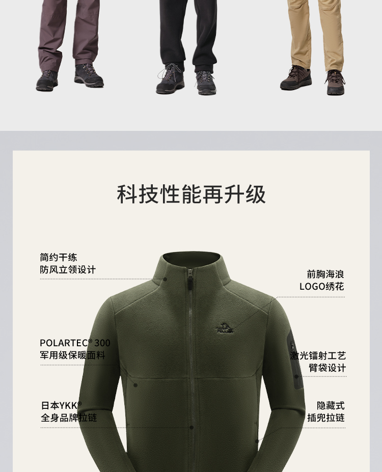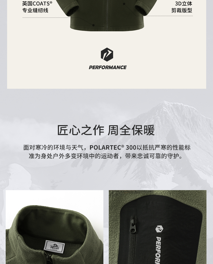 【P系列】伯希和Polartec300抓绒衣男款摇粒绒运动外套冲锋衣内胆