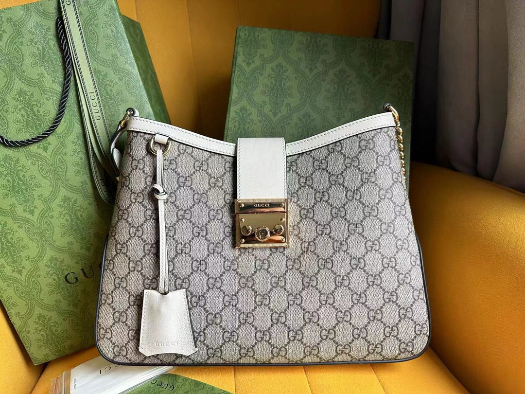 夏季特惠💰1050 原单古驰【原厂皮】米色和乌木色GG 女士挎包 Supreme帆布795113