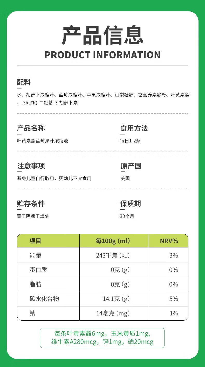 英珞维卓萃叶黄素脂蓝莓果汁浓缩液
