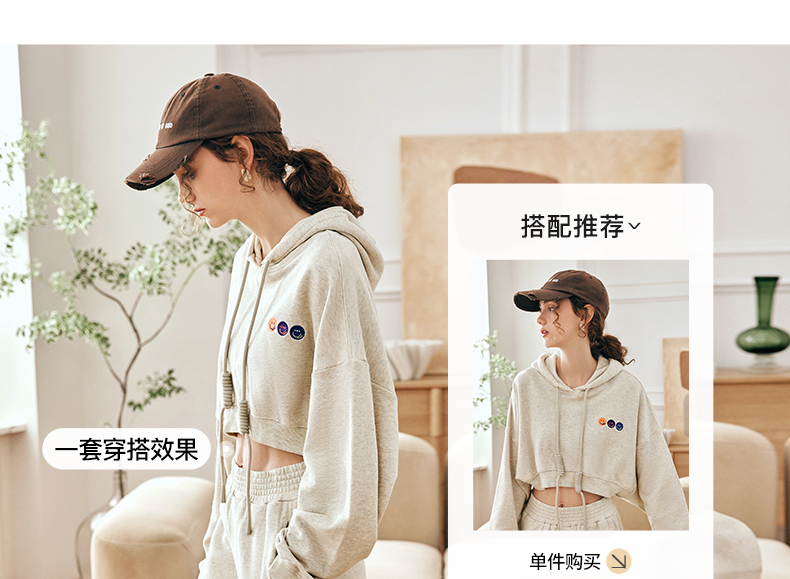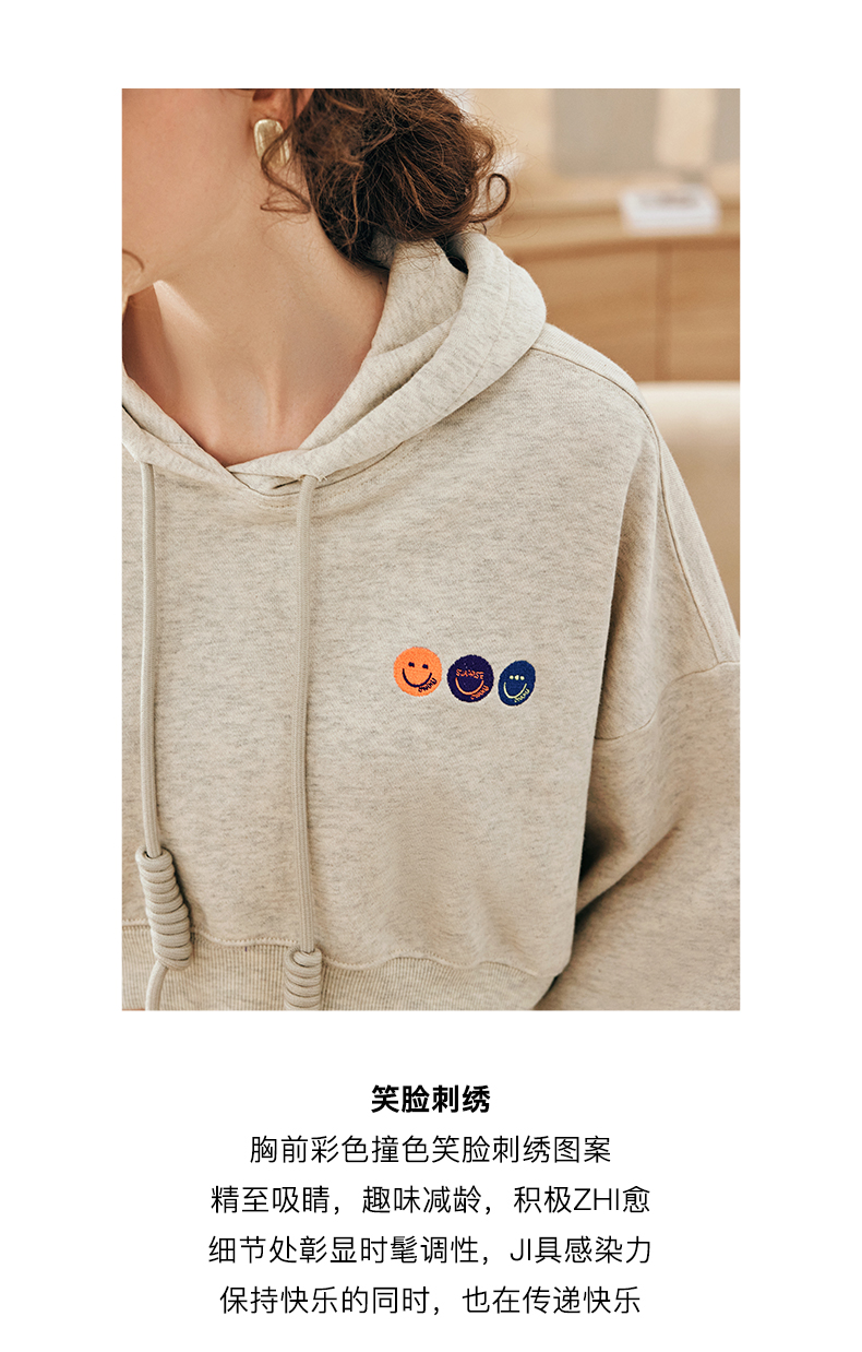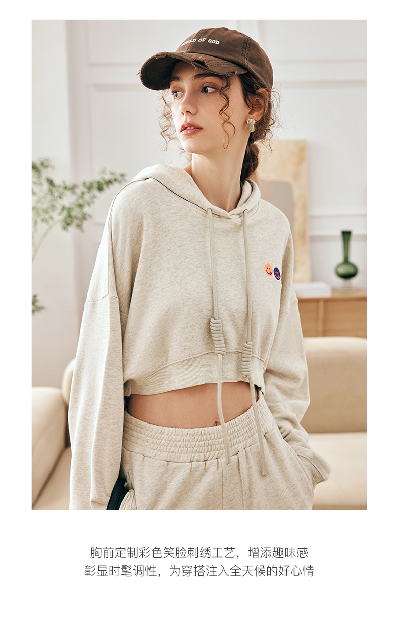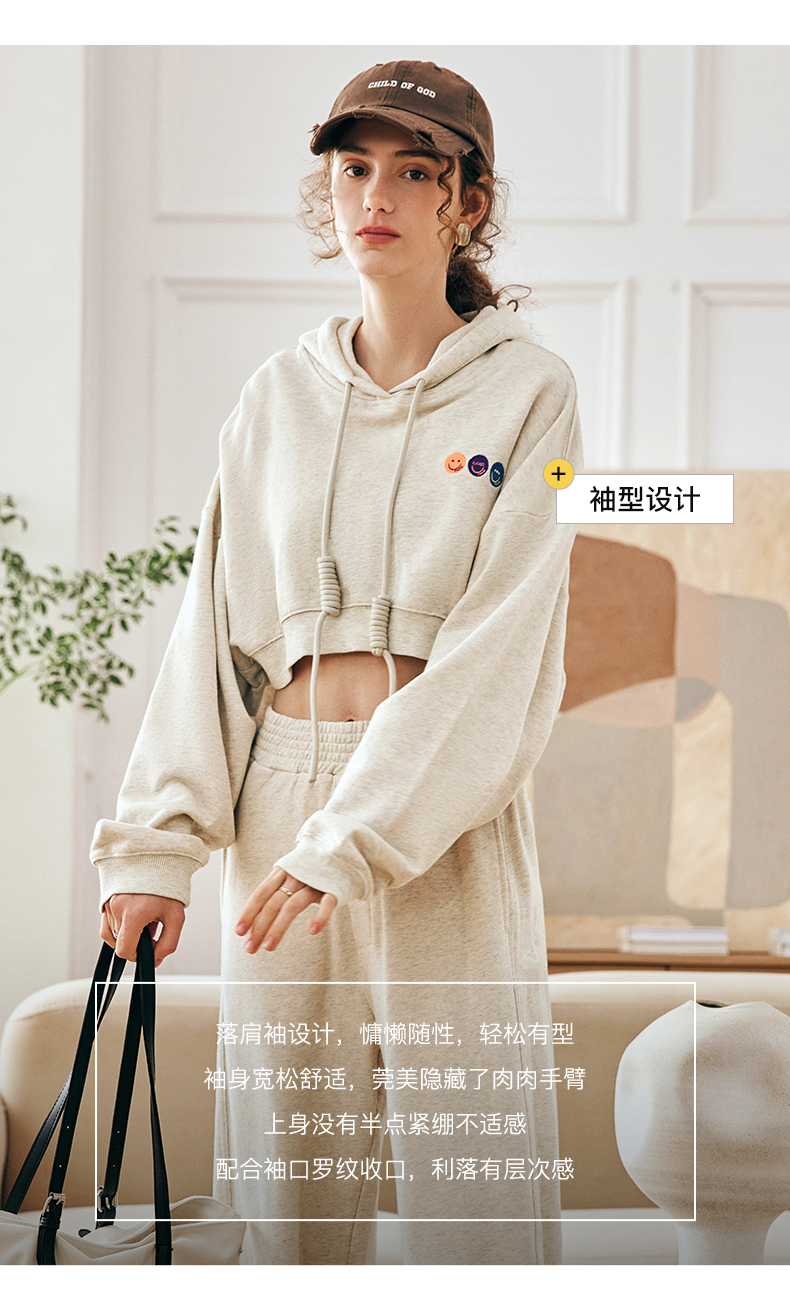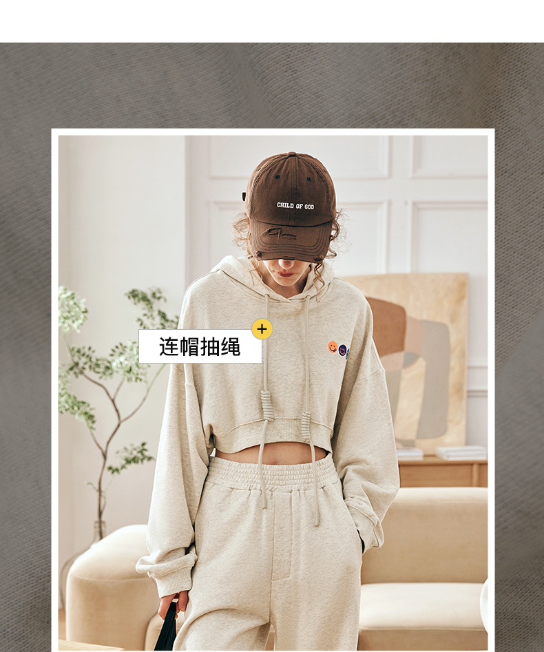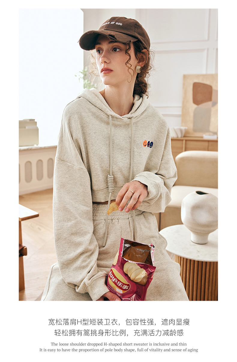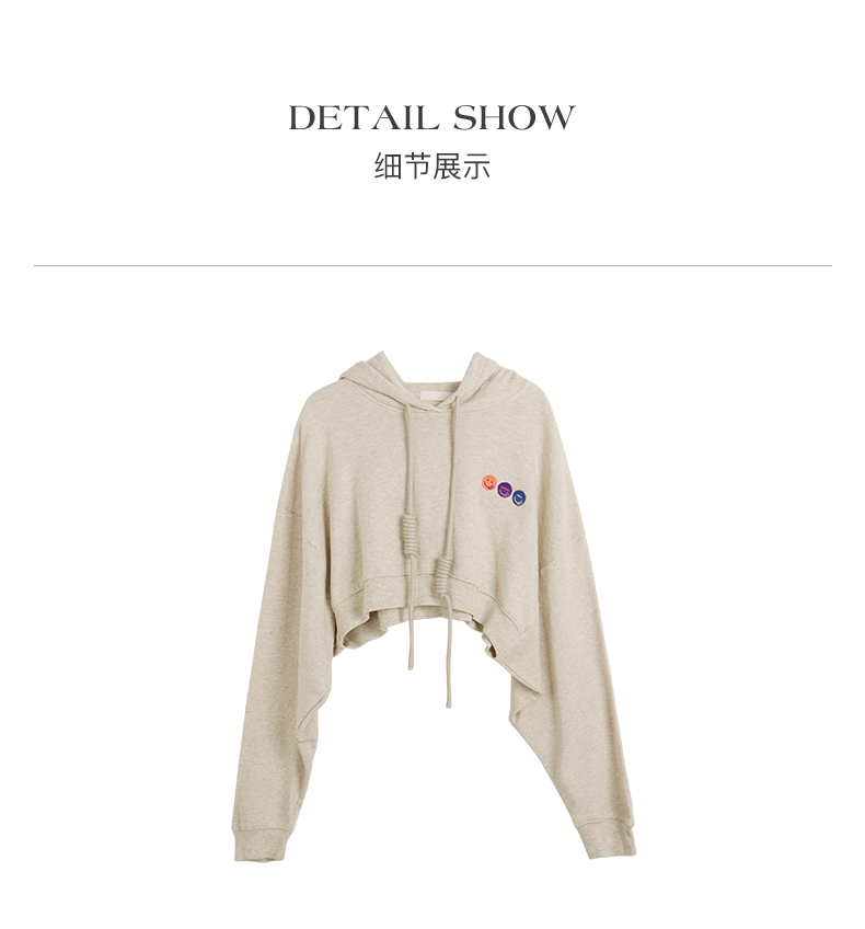 OLrain欧芮儿法式连帽卫衣女春季2023年新款宽松慵懒刺绣短款上衣