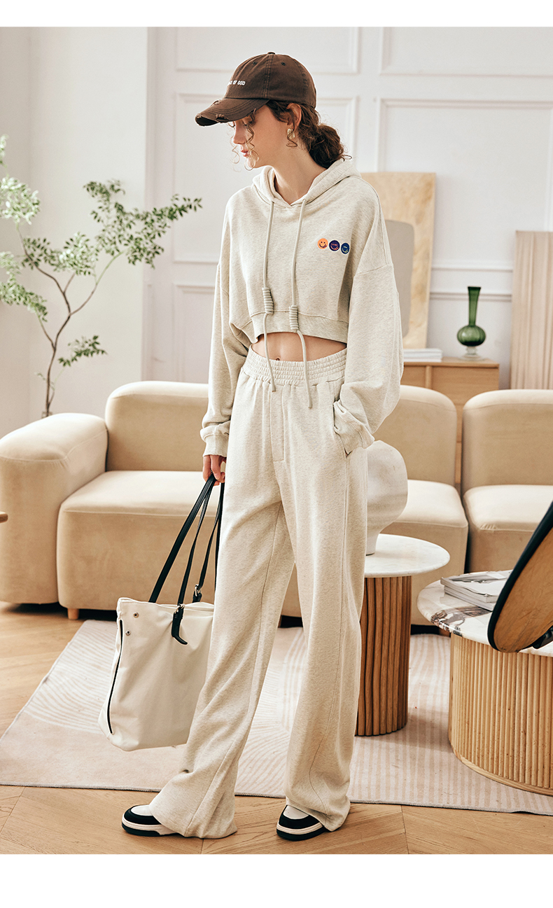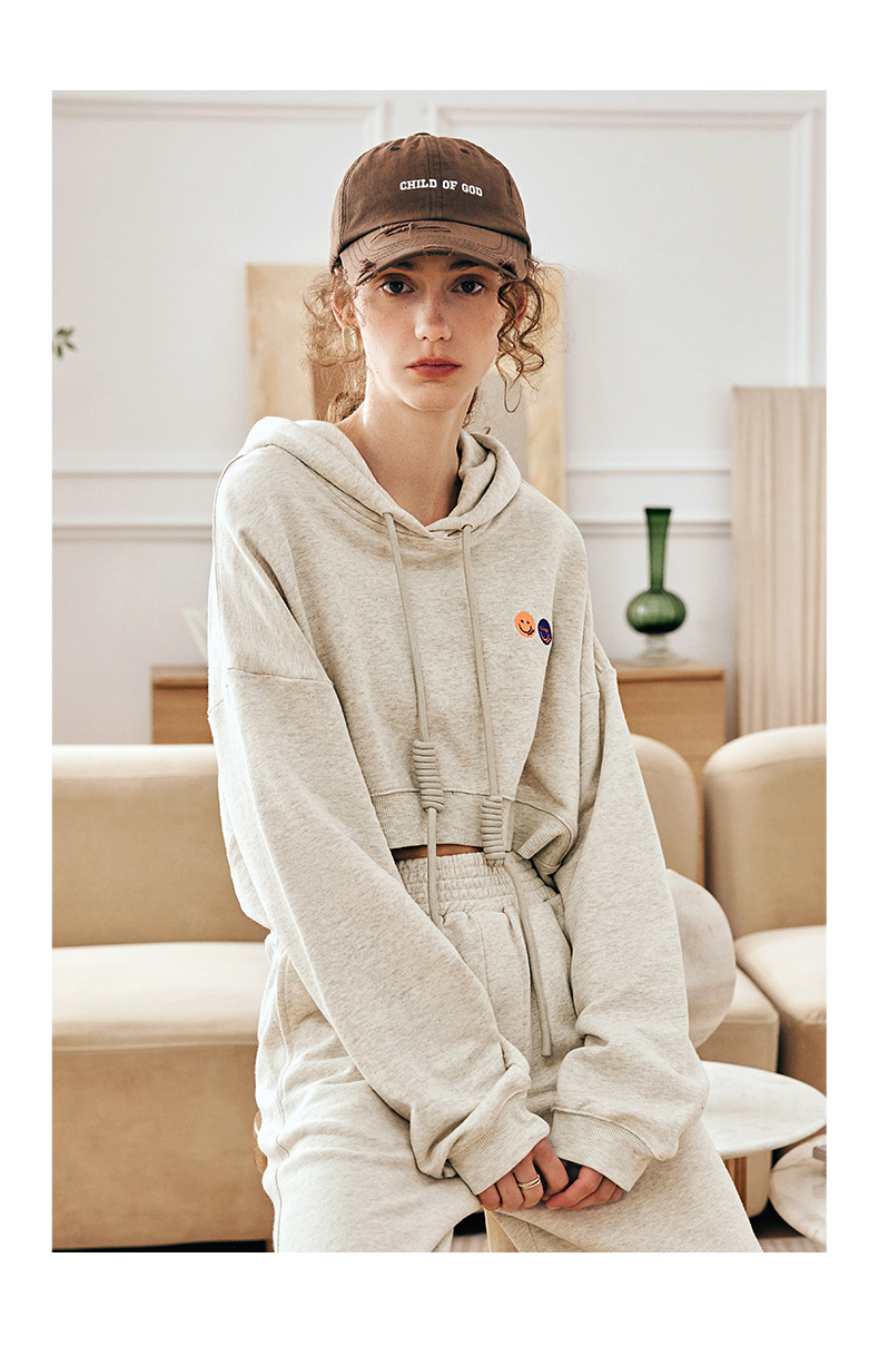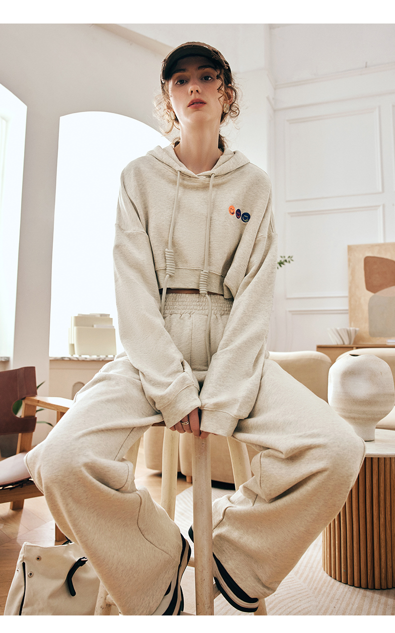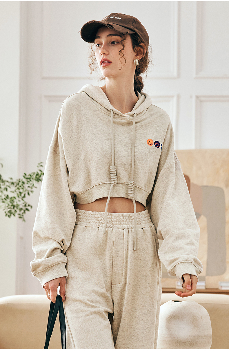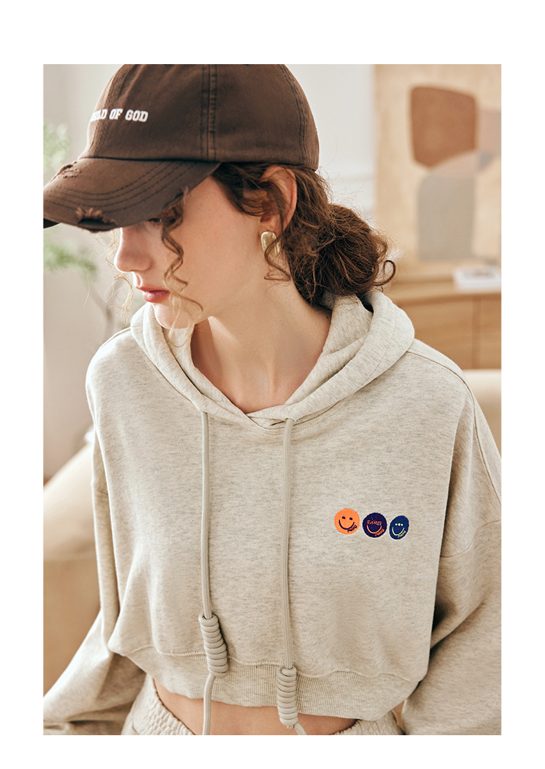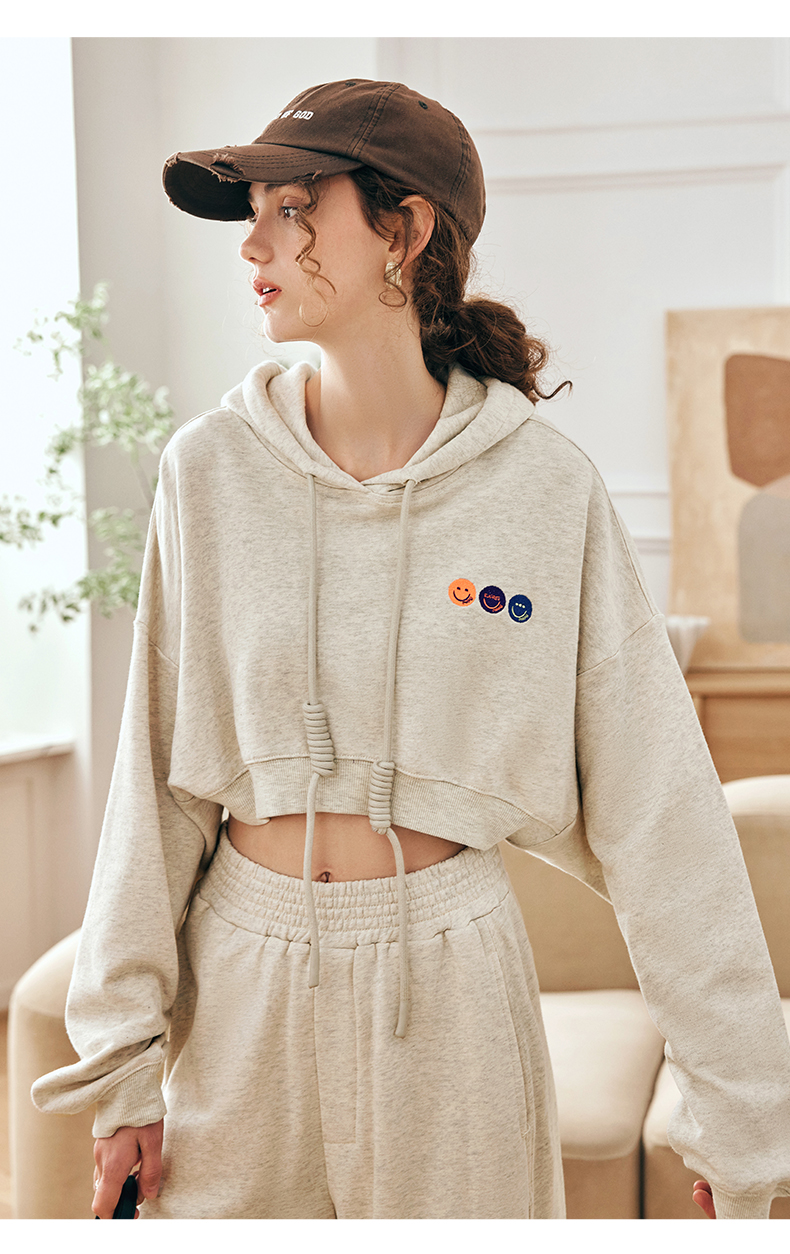 OLrain欧芮儿法式连帽卫衣女春季2023年新款宽松慵懒刺绣短款上衣