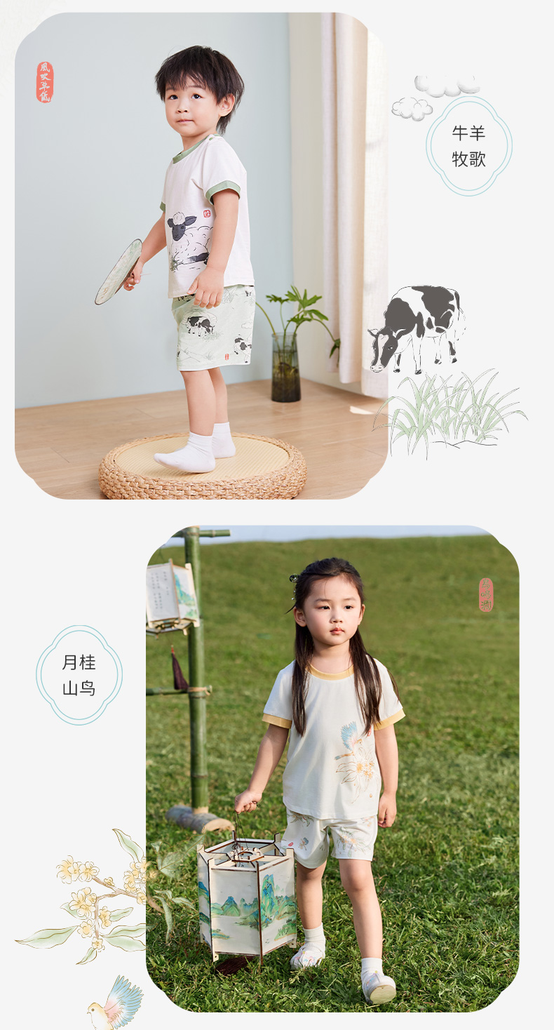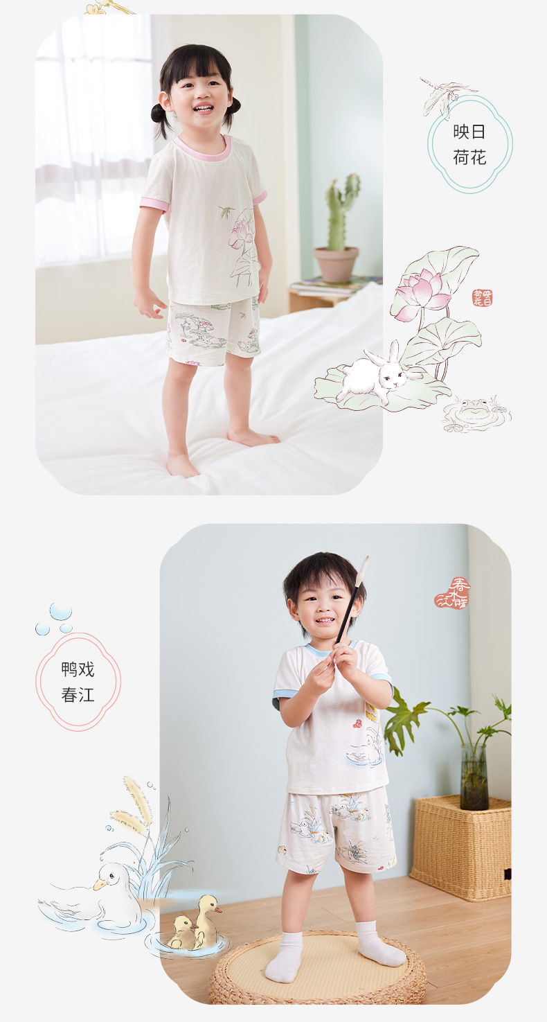 i-baby/英伦宝贝 恒温抑菌针织短袖短裤睡衣家居服套装