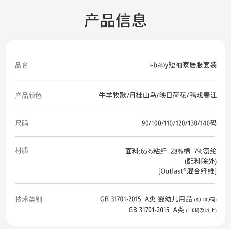 【QHXJ】【大童110-130码】i-baby婴儿薄款连体服&分体套装 outlast恒温睡衣 内衣 透气宝宝夏装空调房儿童套装家居服 婴幼童连体睡衣&分体套装