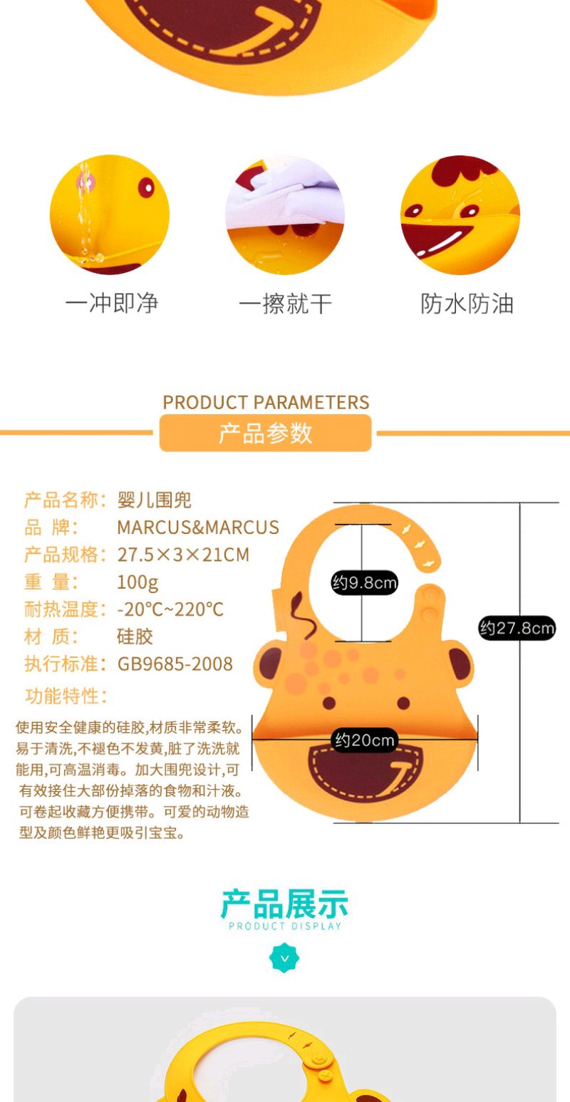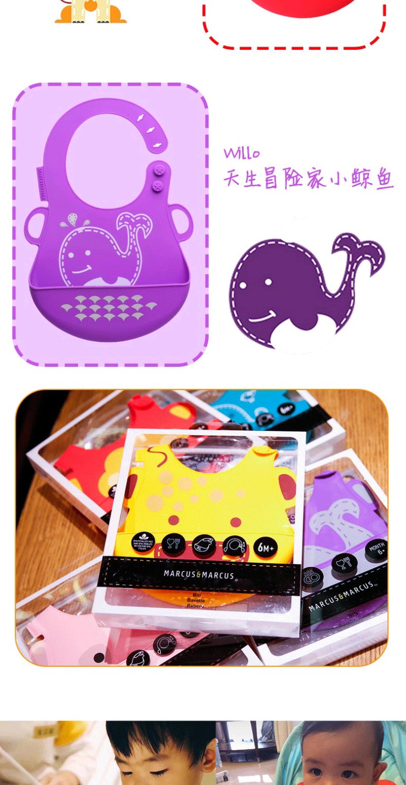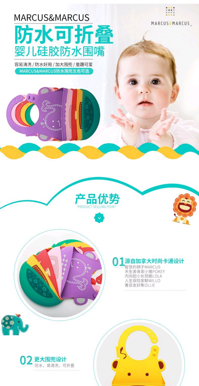 (超值)加拿大Marcus 宝宝硅胶围兜 婴儿围嘴 儿童口水兜
