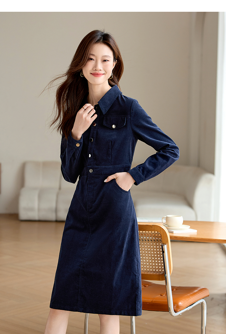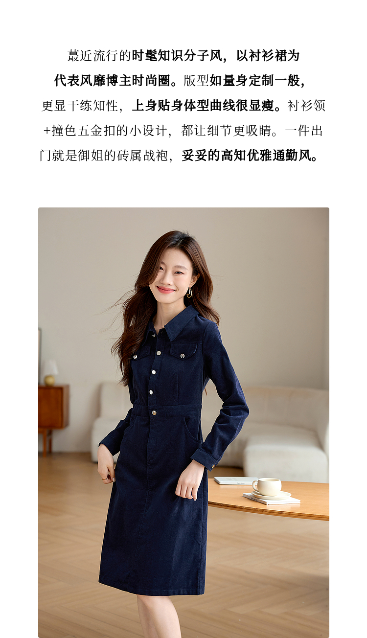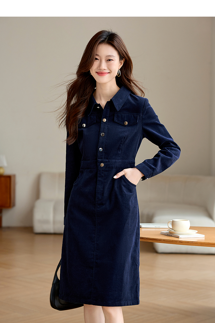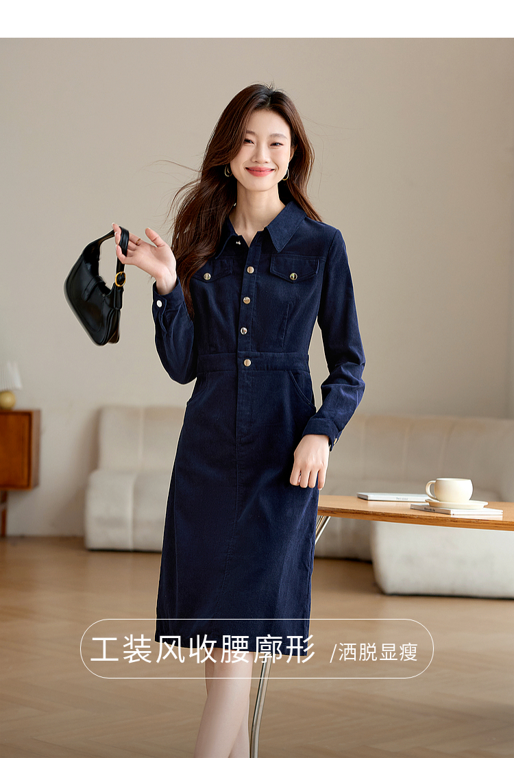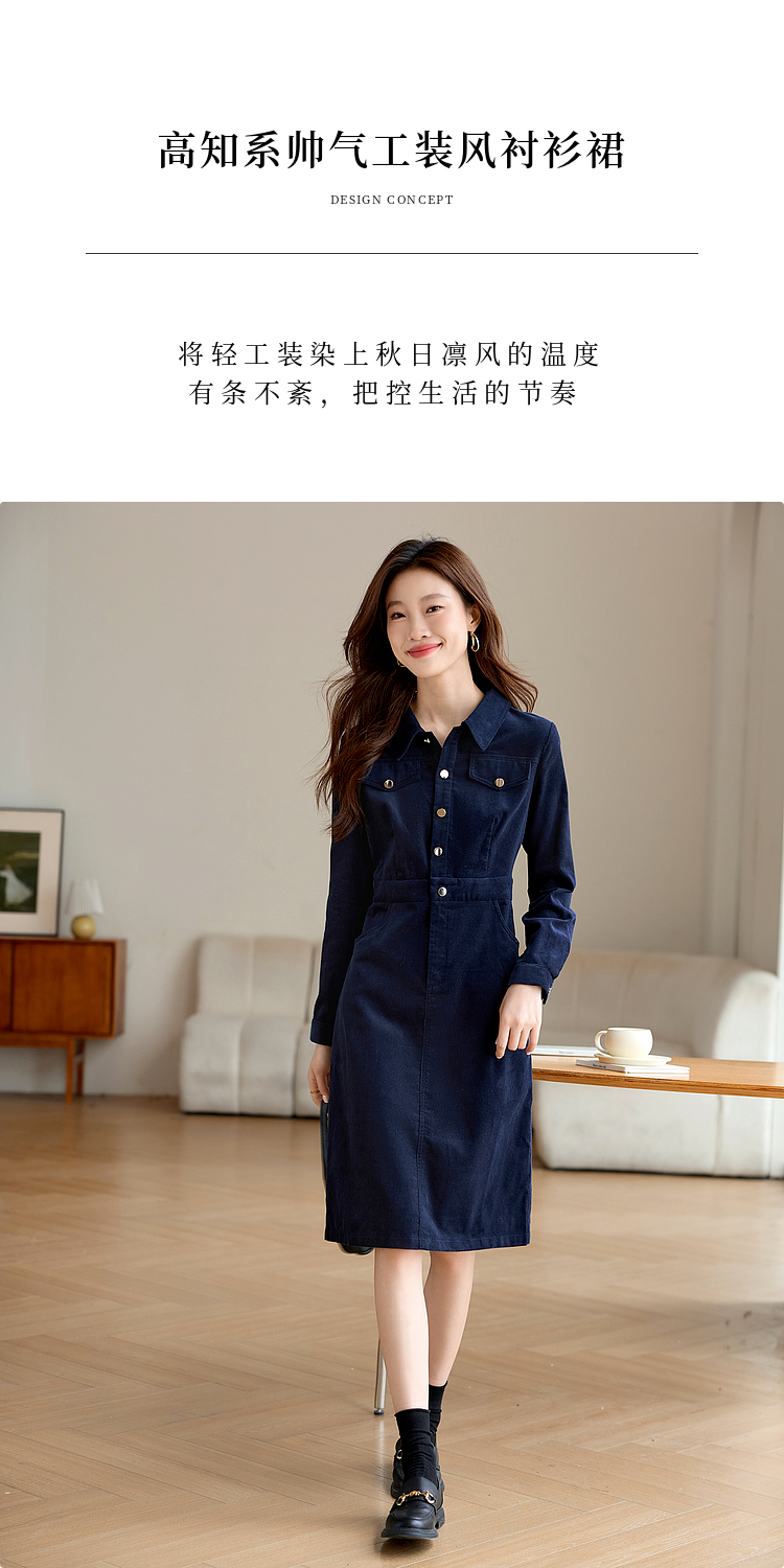 【专属特价】熙世界工装风灯芯绒连衣裙秋冬通勤高级感加厚衬衫裙子2025新款
