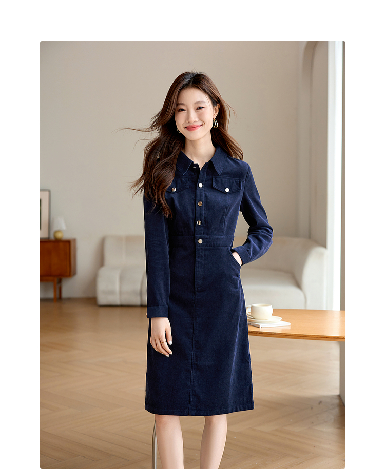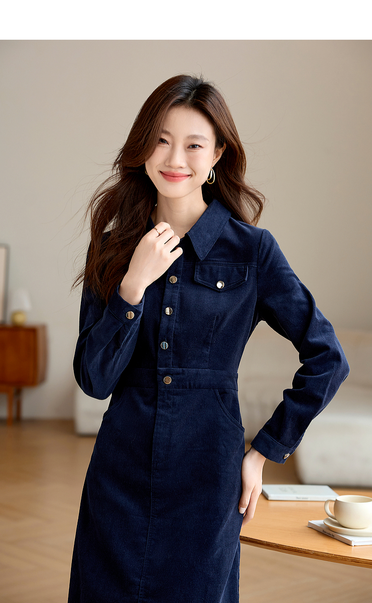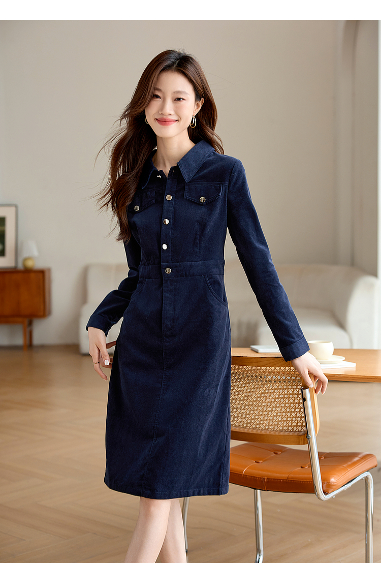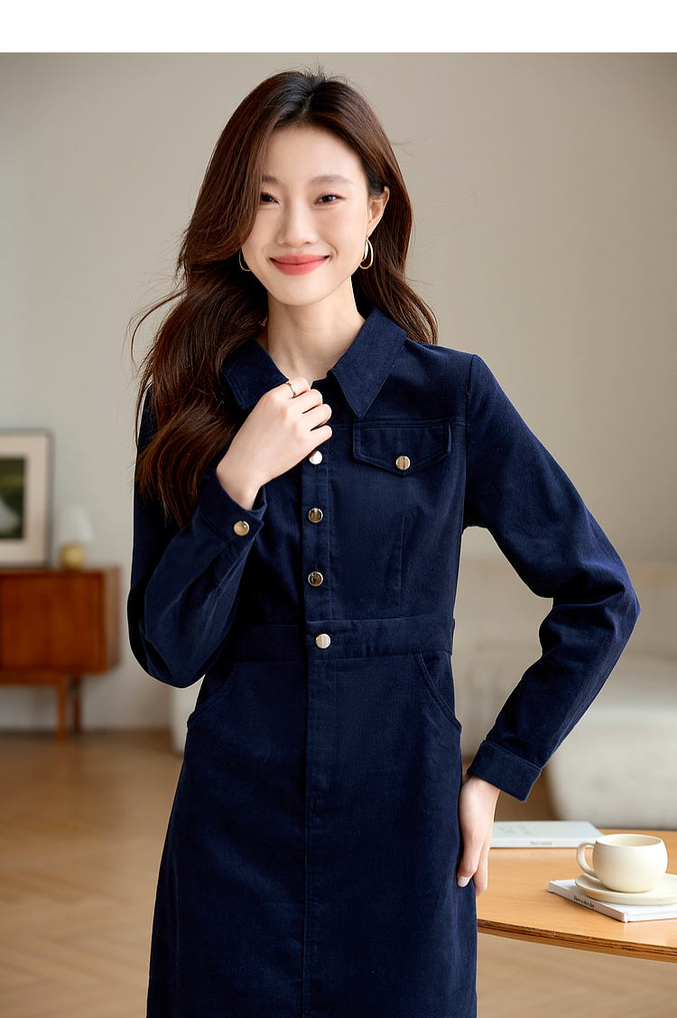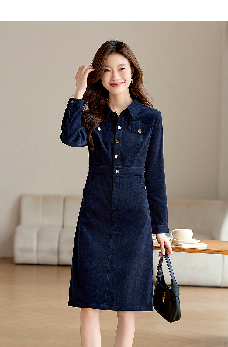 【专属特价】熙世界工装风灯芯绒连衣裙秋冬通勤高级感加厚衬衫裙子2025新款