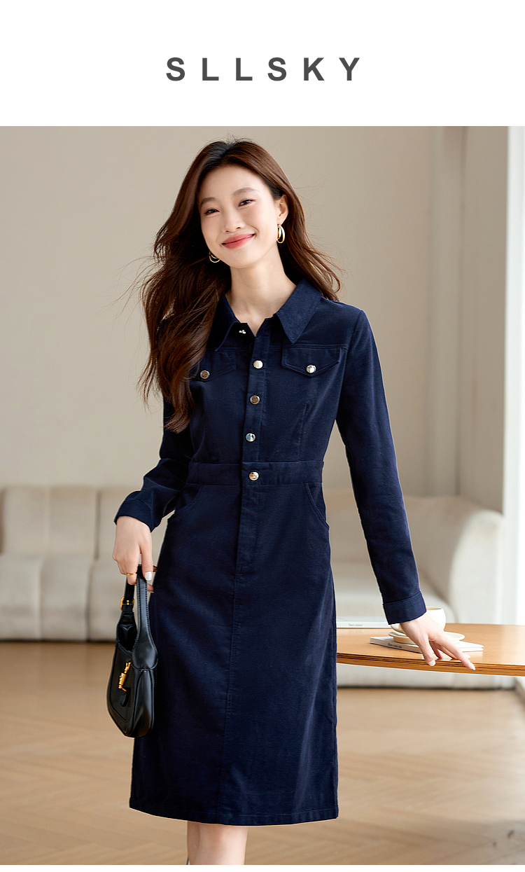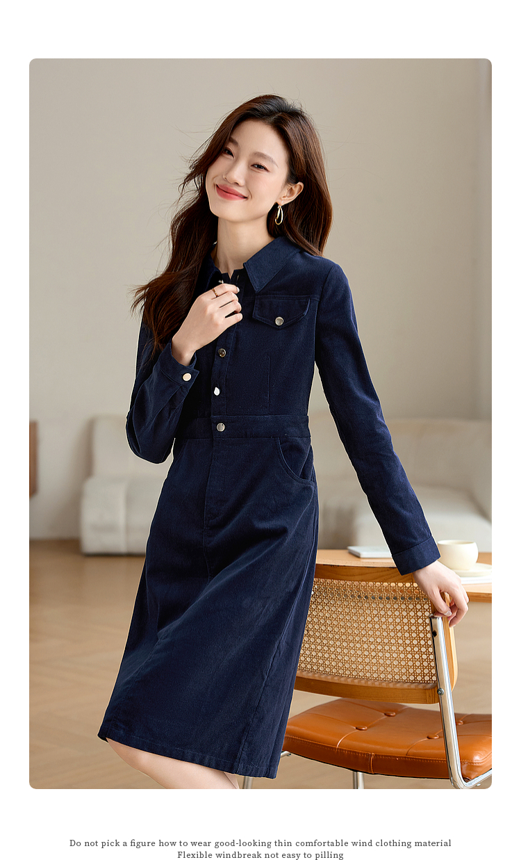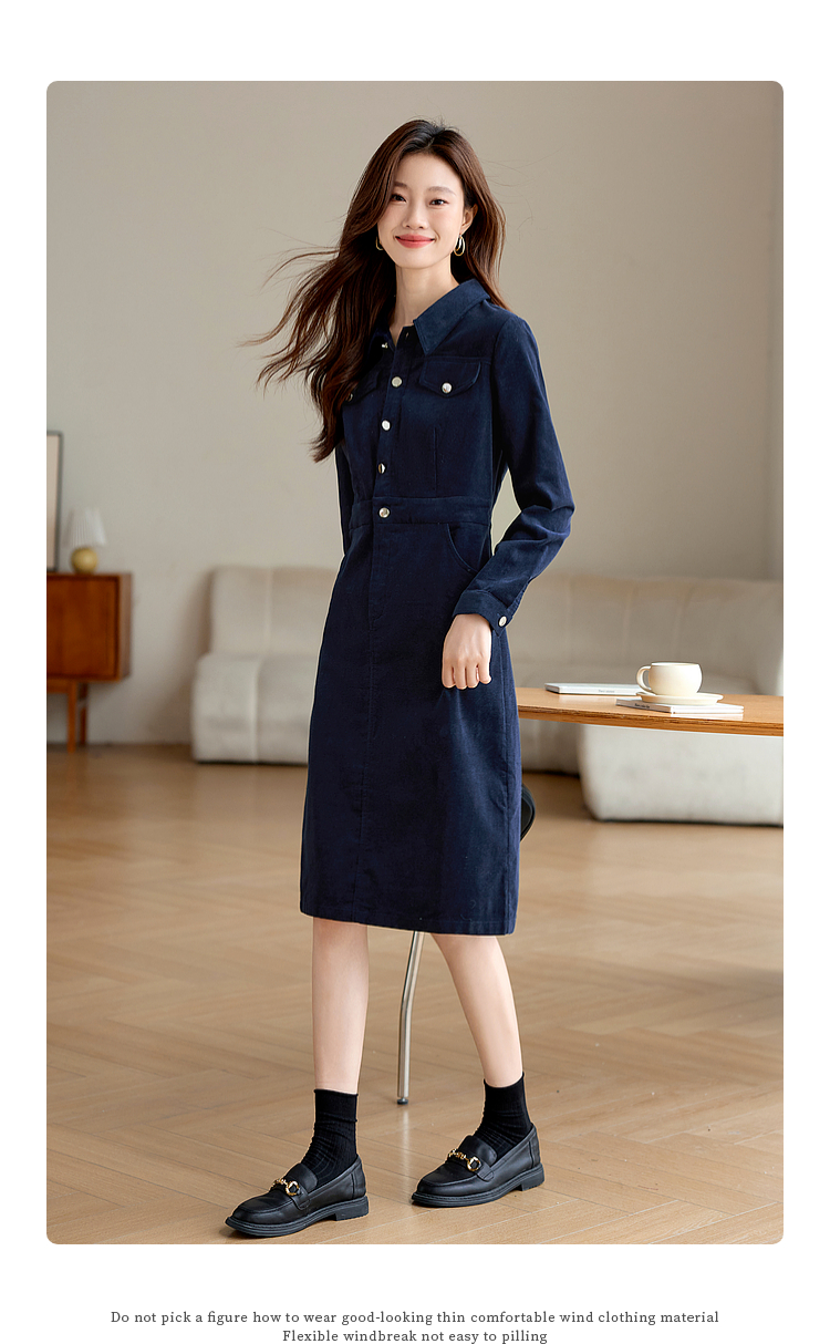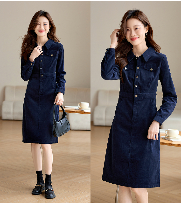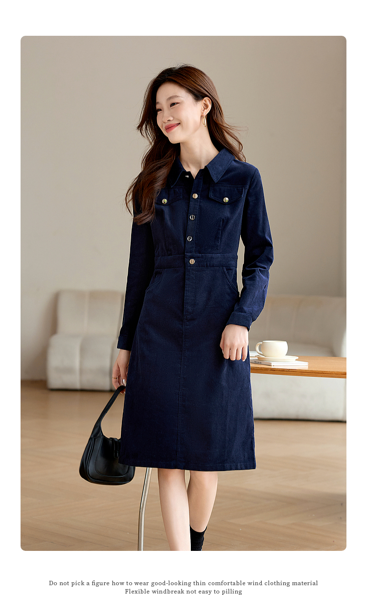 【专属特价】熙世界工装风灯芯绒连衣裙秋冬通勤高级感加厚衬衫裙子2025新款