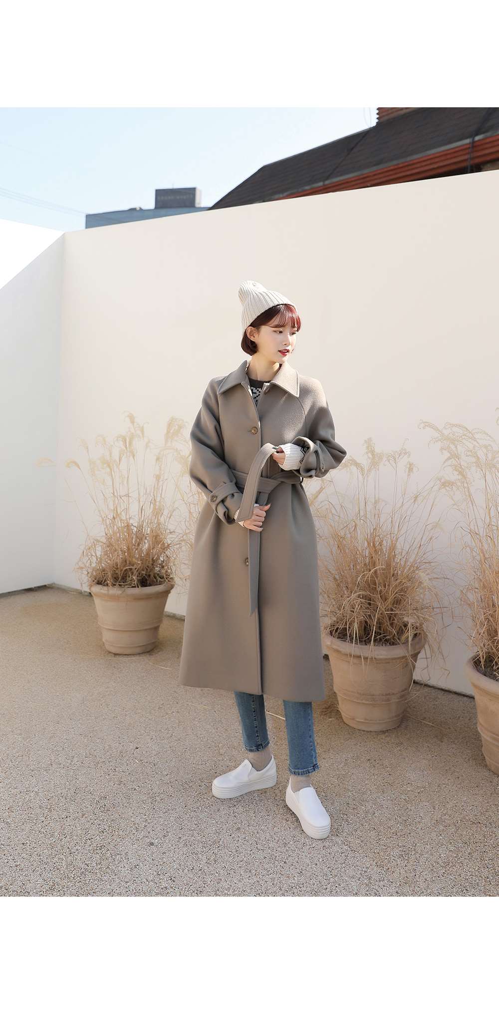 PLAYSPOP 腰带套装羊毛混纺单纽扣腰带长外套JPY带授权招加盟代理
